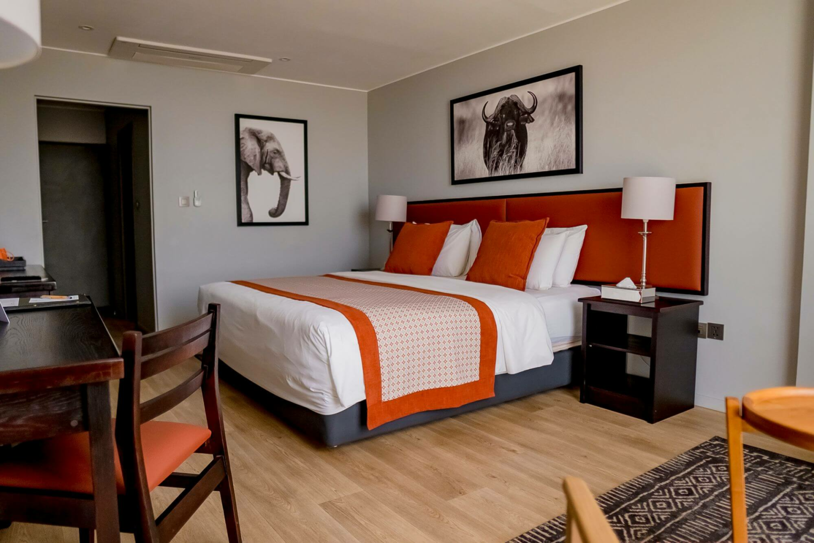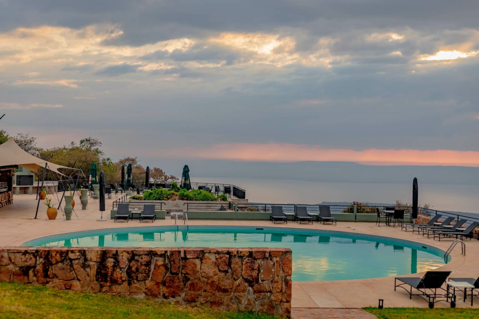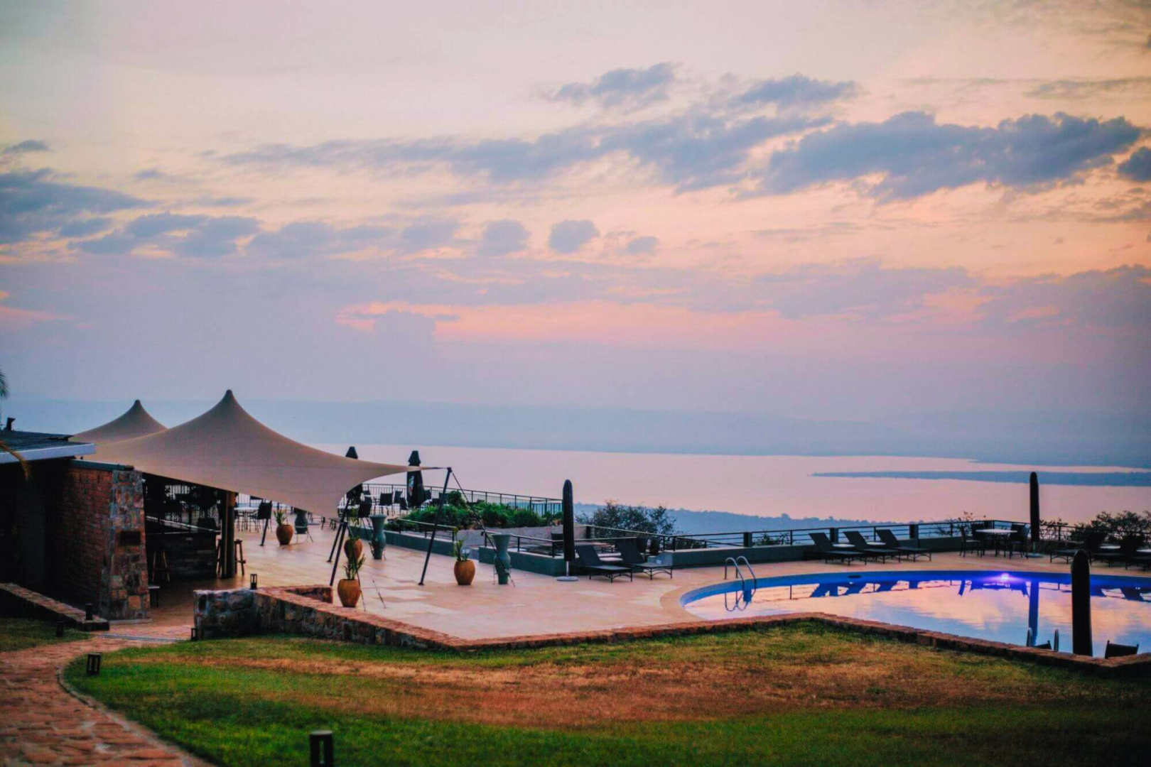 Die Akagera Game Lodge liegt in der Nähe des Haupttors zum Akagera-Gebiet im Osten Ruandas und ist eine mittelgroße, veraltete und stark kommerziell ausgerichtete Lodge, die uns nicht gefallen hat. Das Herz der Lodge ist ein sehr großes, modernes Gebäude mit Rezeption, Lounge und Restaurant. Die Einrichtung ist etwas altmodisch und erinnert stark an die charakterlosen Serena- und Sopa-Lodges, die in den benachbarten Ländern Kenia und Tansania verstreut sind. Es gibt jedoch einen schönen Poolbereich mit Blick auf den Akagera-Nationalpark. Die Unterbringung erfolgt in 72 Zimmern, die sich auf die über das gesamte Gelände verteilten Steinhäuser verteilen. Die Einrichtung der Zimmer ist erwartungsgemäß unspektakulär: einfache Möbel, die an ein Motelzimmer erinnern, ein altmodischer Fernseher und ein gefliestes Bad mit Badewanne. Ehrlich gesagt, mit so viel bessere Möglichkeiten in der Nähe können wir nicht an einem einzigen Grund denken, warum man jemals hier untergebracht werden möchte.