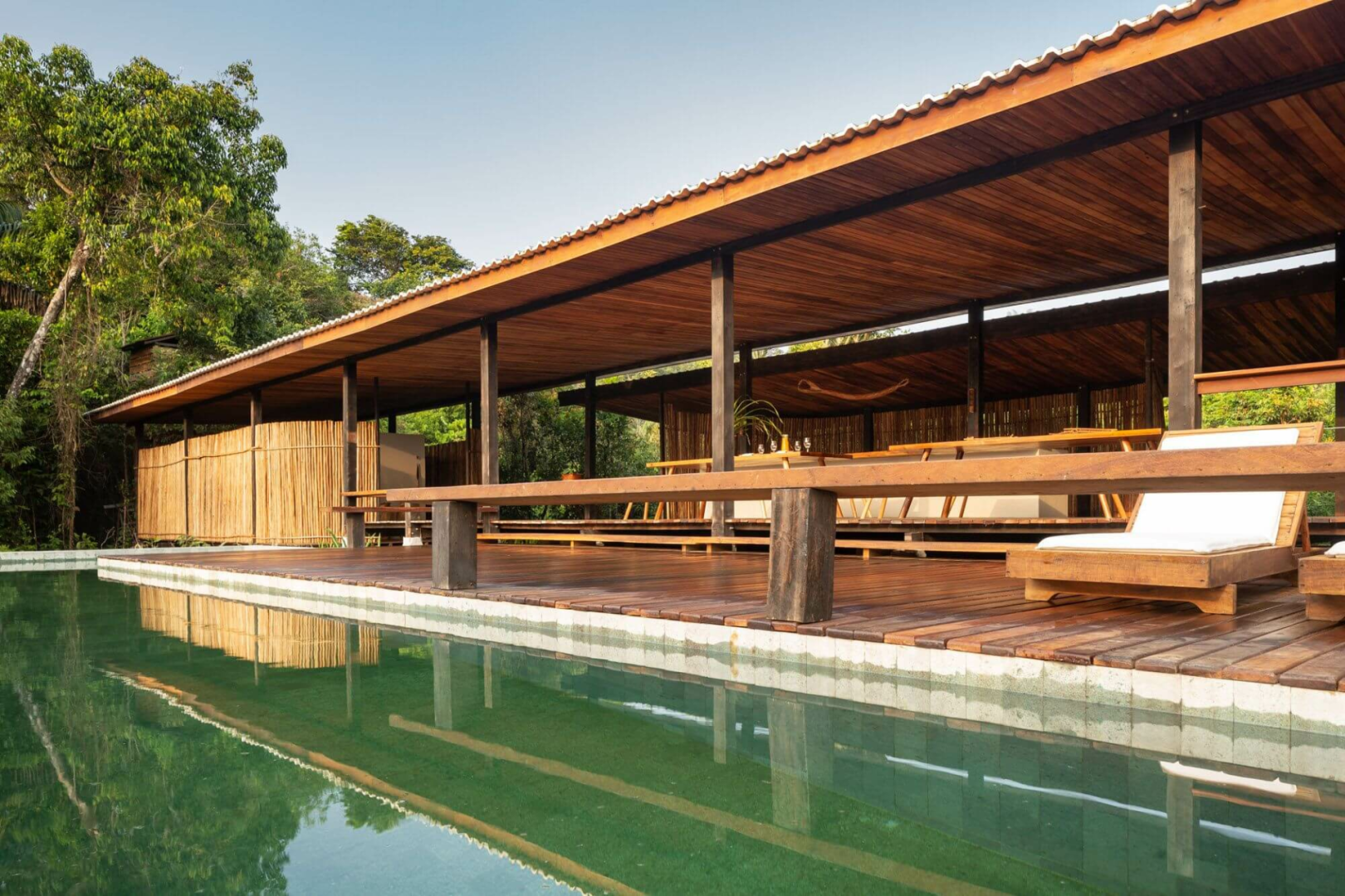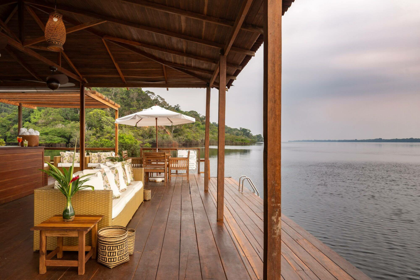 Gebaut wurde Anavilhanas Jungle Lodge im Einklang mit der Natur. Die öffentlichen Bereiche zeichnen sich durch ein zeitgenössisches Design aus natürlichen Materialien aus. Es gibt ein kleines schwimmendes Deck mit Bad für Baden im Fluss. Die Anlage hat auch einen Infinity Pool mit Blick auf den Rio Negro. Während eures Aufenthalts im Amazonasgebiet werdet ihr hier garantiert einige glückliche Stunden verbringen, und Säfte aus verschiedenen exotischen Amazonasfrüchten wie Cupuacu, Bacaba und Acai schlürfen.