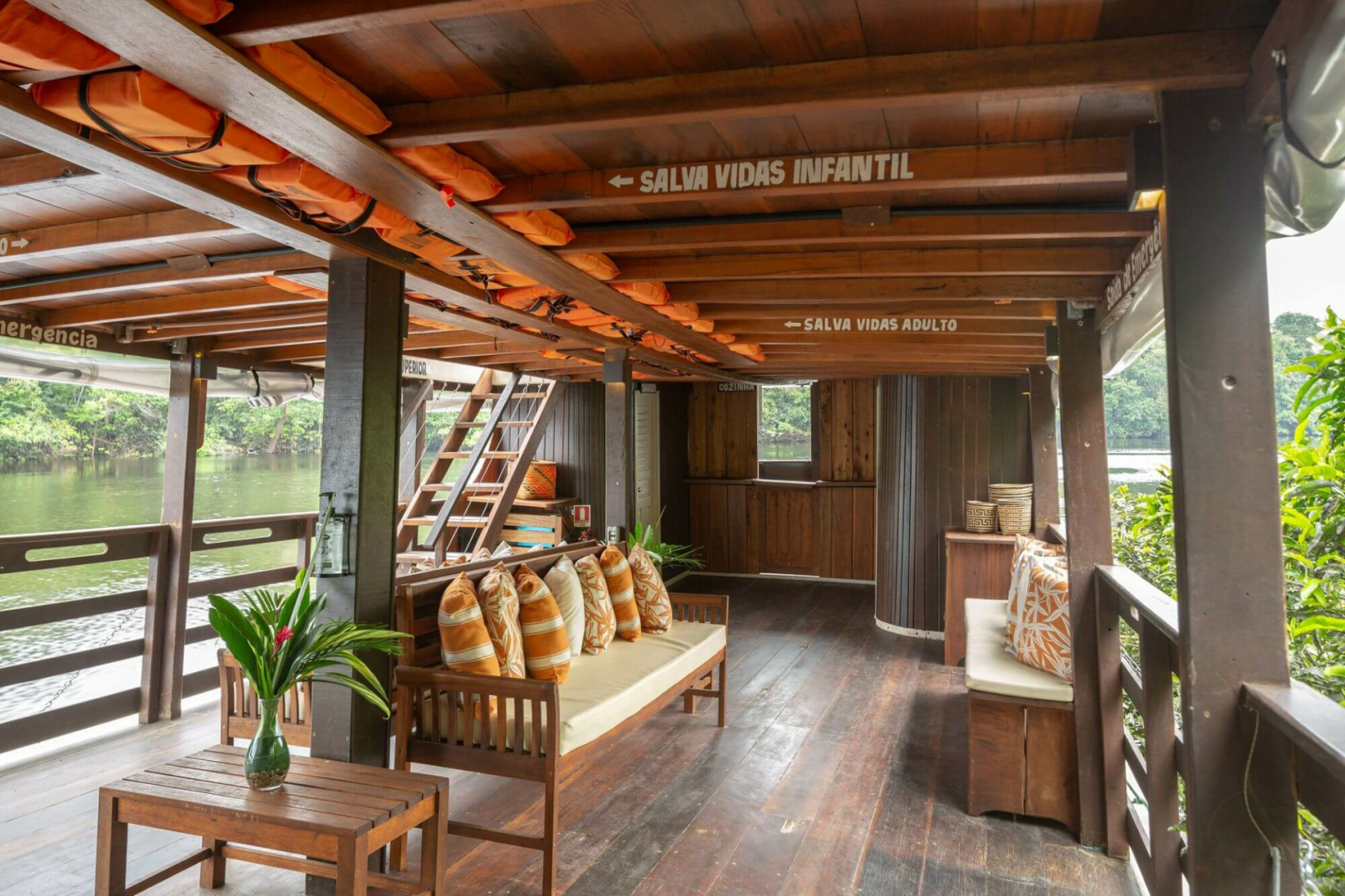 Anavilhanas Jungle Lodge verfügt über schön gestaltete Empfangs-/Barbereiche, eine Bibliothek mit bequemen Sesseln und Spieltischen sowie ein herrliches Restaurant, wo richtig fantastisches Essen serviert wird.