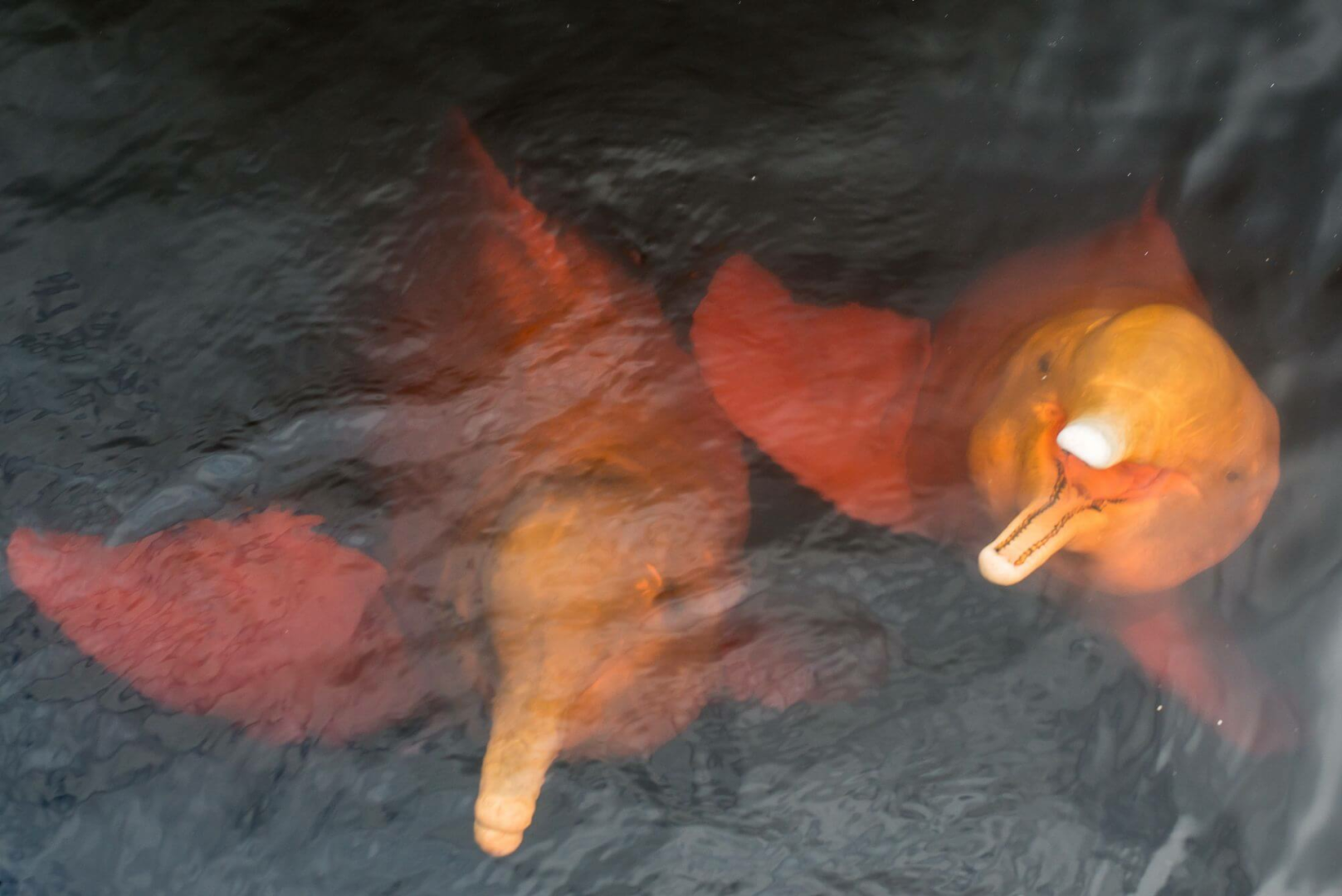 Andere Ausflüge führen zu einer Stelle, an der Flussdelfine gefüttert werden. Eine der einheimischen Familien hat vor vielen Jahren damit begonnen, die Delfine zu füttern, und so kehren einige der Tiere jeden Tag an diesen Ort zurück, um einen kleinen Snack zu sich zu nehmen. Die Fütterungsstelle ist ein idealer Ort, um diese sonst scheue Tiere zu beobachten, die sonst in den dunklen Gewässern des Rio Negro sonst nur schwer auszumachen sind.