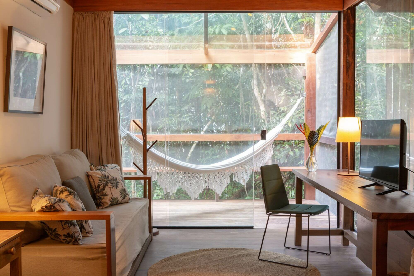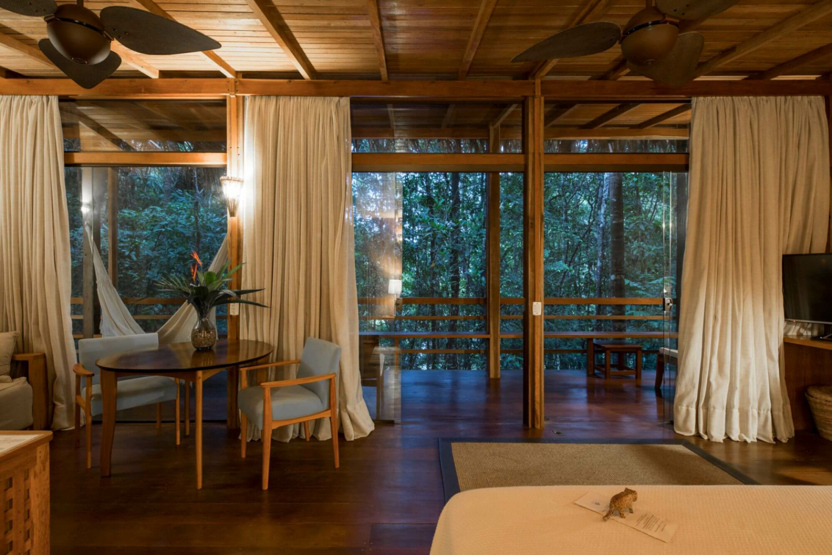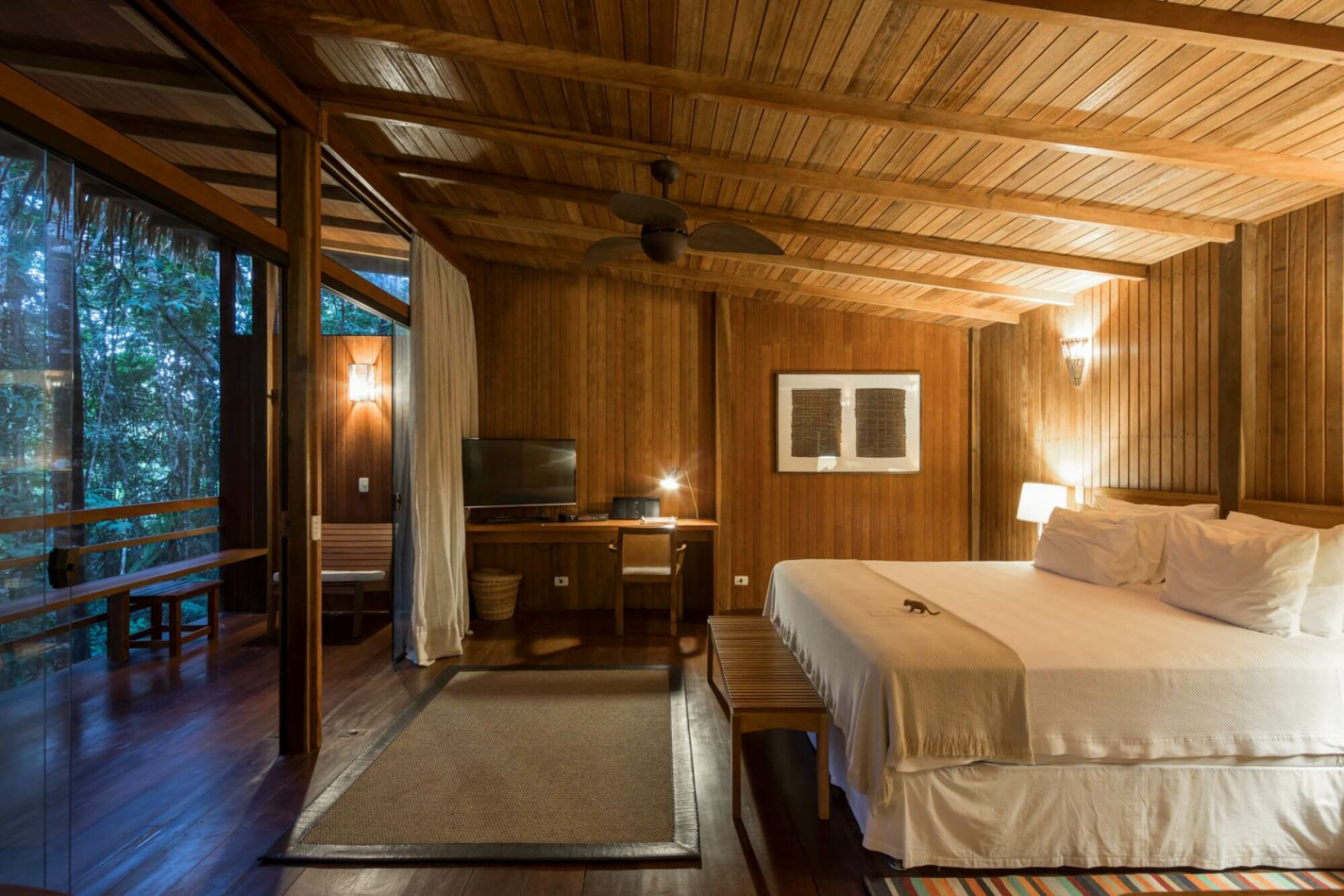 Die großen Panoramabungalows sind besonders zu empfehlen, wenn man sich diese leisten kann. Sie sind über 700 Quadratmeter groß und haben eine 30 Fuß lange Glaswand mit Blick auf den Amazonas-Regenwald.