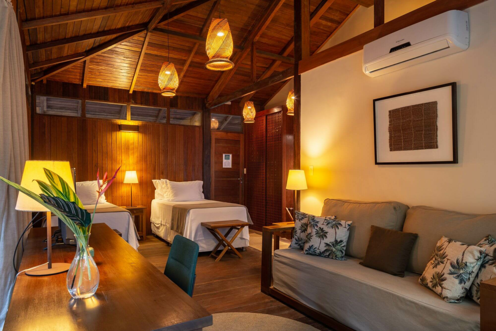 Anavilhanas Jungle Lodge verfügt über 16 Standard Cottages, 4 Superior Bungalows und 2 Panoramabungalows. Alle Zimmer sind mit einer Klimaanlage, einem 32-Zoll-LCD-Fernseher, einer Minibar, einem privaten Safe, einem Haartrockner und einer heißen Dusche ausgestattet. Es gibt auch ein Sofa im Zimmer und riesige private Hängematten.