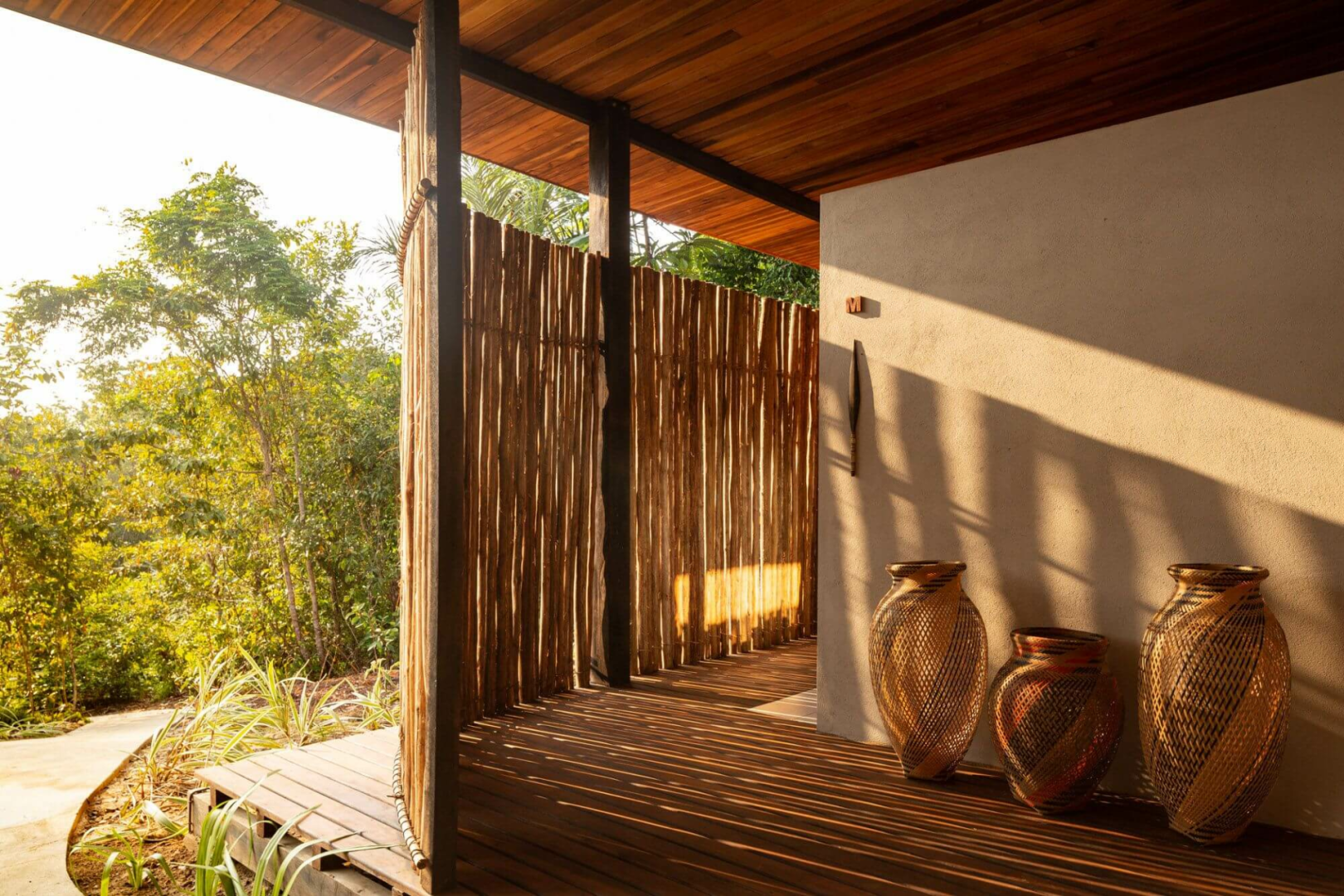Die vier Superior-Bungalows befinden sich auf einem kleinen Hügel und stehen auf Stelzen, so dass man das Gefühl hat, unter dem Blätterdach der Bäume zu sitzen, umgeben vom Grün des Waldes. Durch eine Schiebetür gelangt man auf eine Terrasse, die vor fliegenden Insekten geschützt und mit 2 Hängematten ausgestattet ist