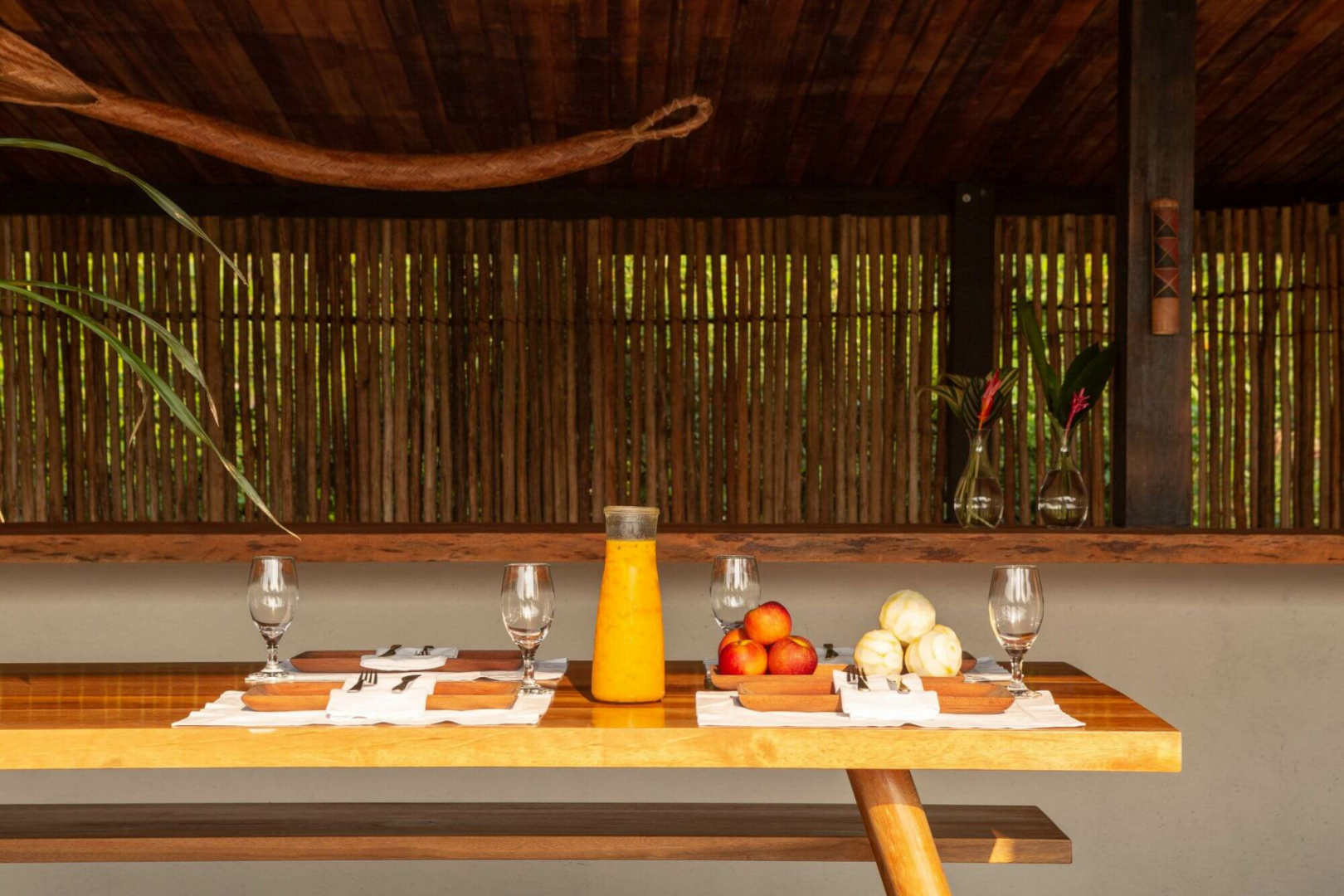 Das Restaurant ist ein weitläufiges Gebäude unter Stroh. Wie überall in der Anavilhanas Jungle Lodge wird auch hier besonderer Wert auf eine gute Qualität der Speisen gelegt. Das Abendessen wird in Form eines Buffets serviert, das stark von der traditionellen brasilianischen und amazonischen Küche inspiriert ist und lokale Fleisch- und Fischsorten sowie vegetarische Optionen bietet. Das Frühstück ist ebenso reichhaltig und bietet reichlich frisches Obst und Smoothies aus der Region sowie schmackhafte Brote und Maniokpfannkuchen. Ihr werdet während des Aufenthaltes in Anavilhanas bestimmt zunehmen!
