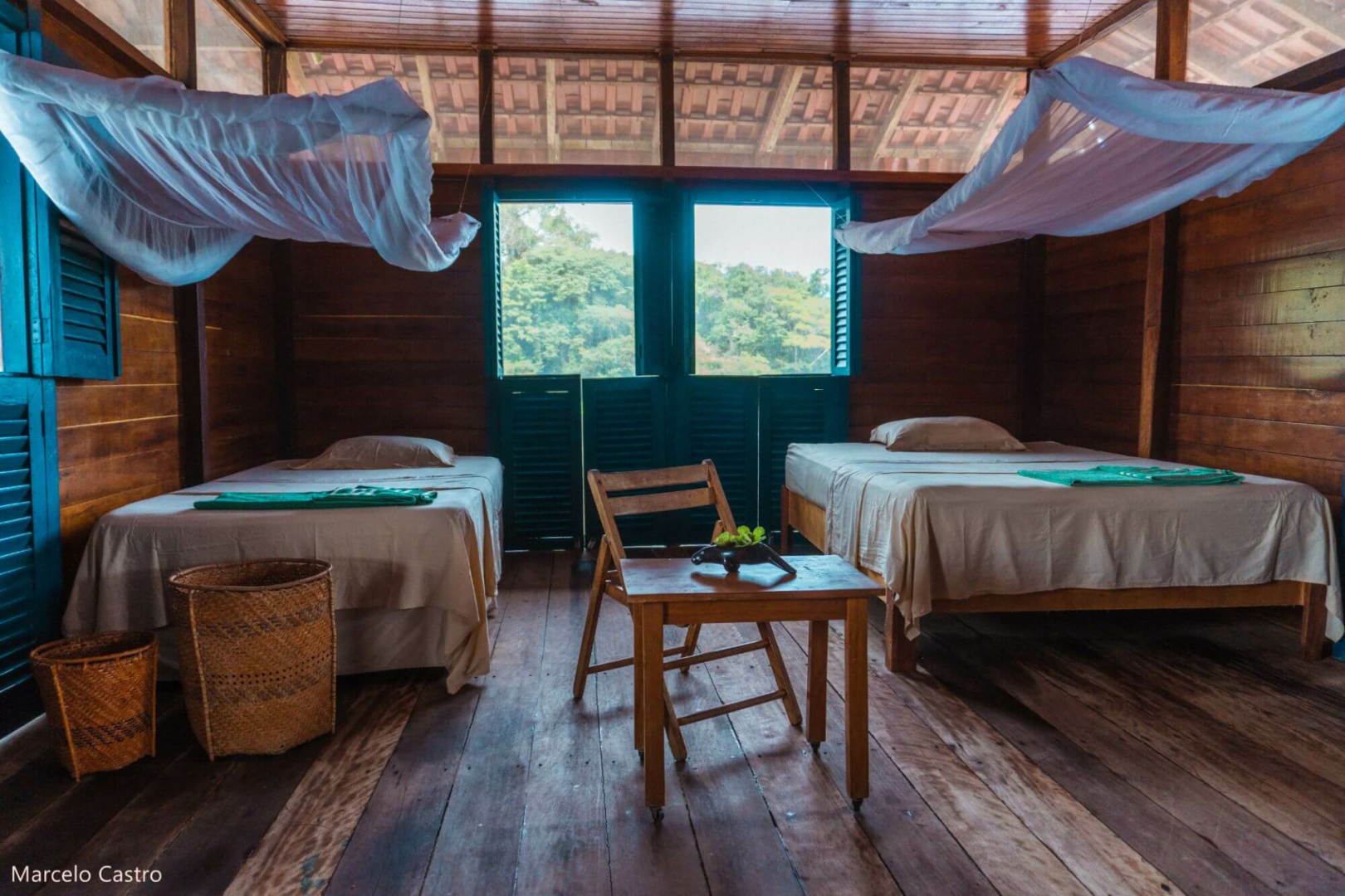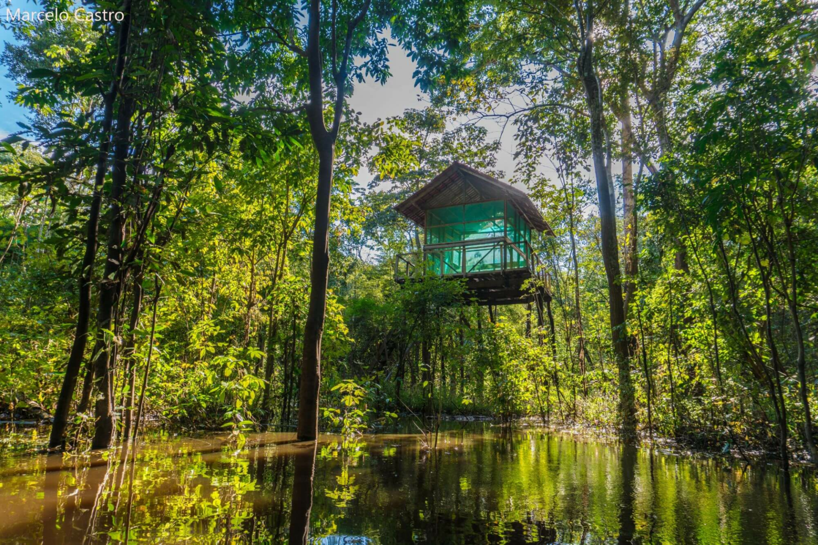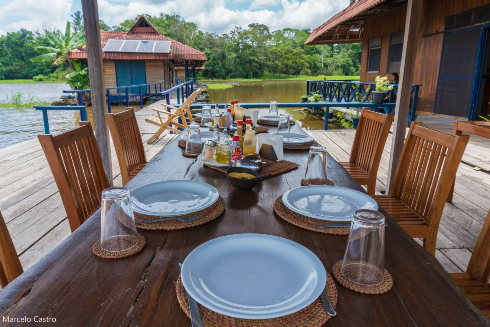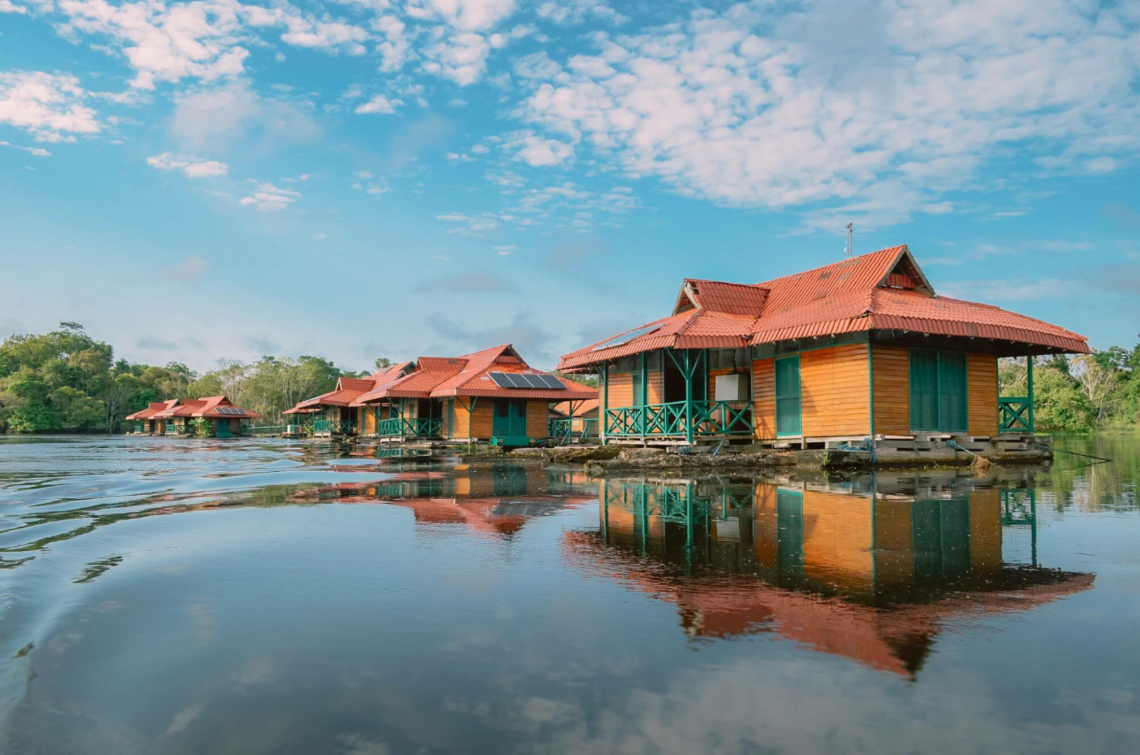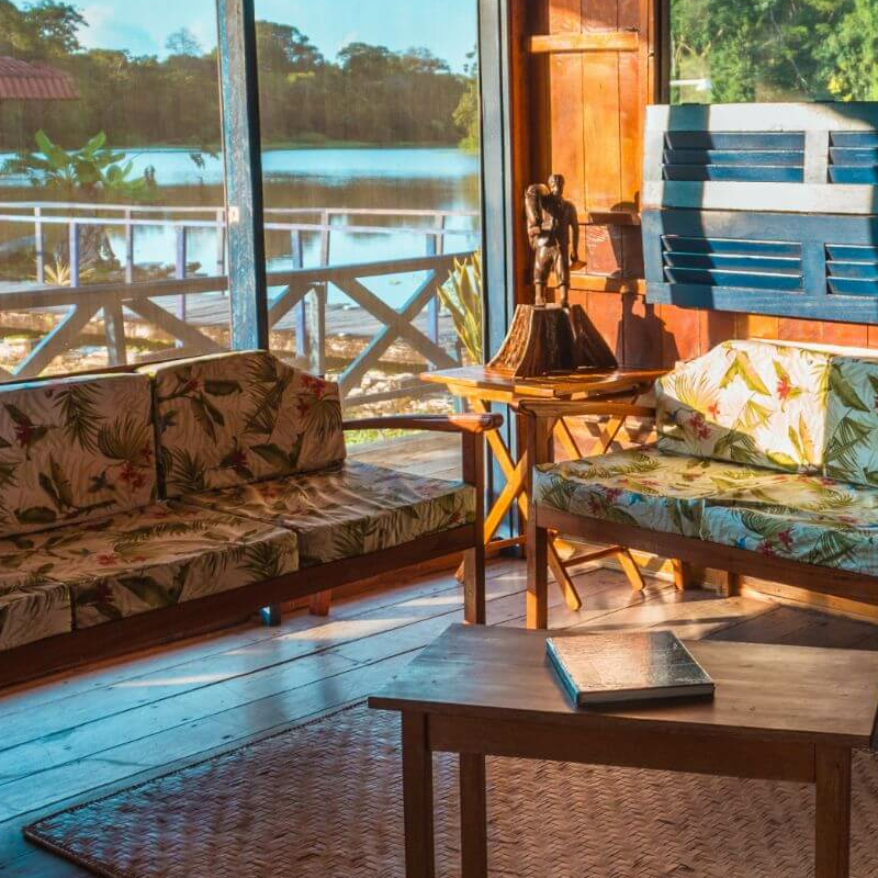 Die Unterbringung erfolgt in einfach eingerichteten, über dem Wasser schwebenden Bungalows, welche über eine Holzbrücke zu erreichen sind. Hier wird den Gästen das Gefühl vermittelt, selbst Forscher zu sein. Die Unterkunft, die keineswegs luxuriös ist, bietet allerdings weit mehr Bequemlichkeiten, als was man in dieser vom Wasser umgebene Region, fernab der Zivilisation, erwarten könnte. Zusammenfassend ist es eher ein als Forschungscamp zu bezeichnendes Wasserhotel inmitten einer unberührten Amazonas-Landschaft.