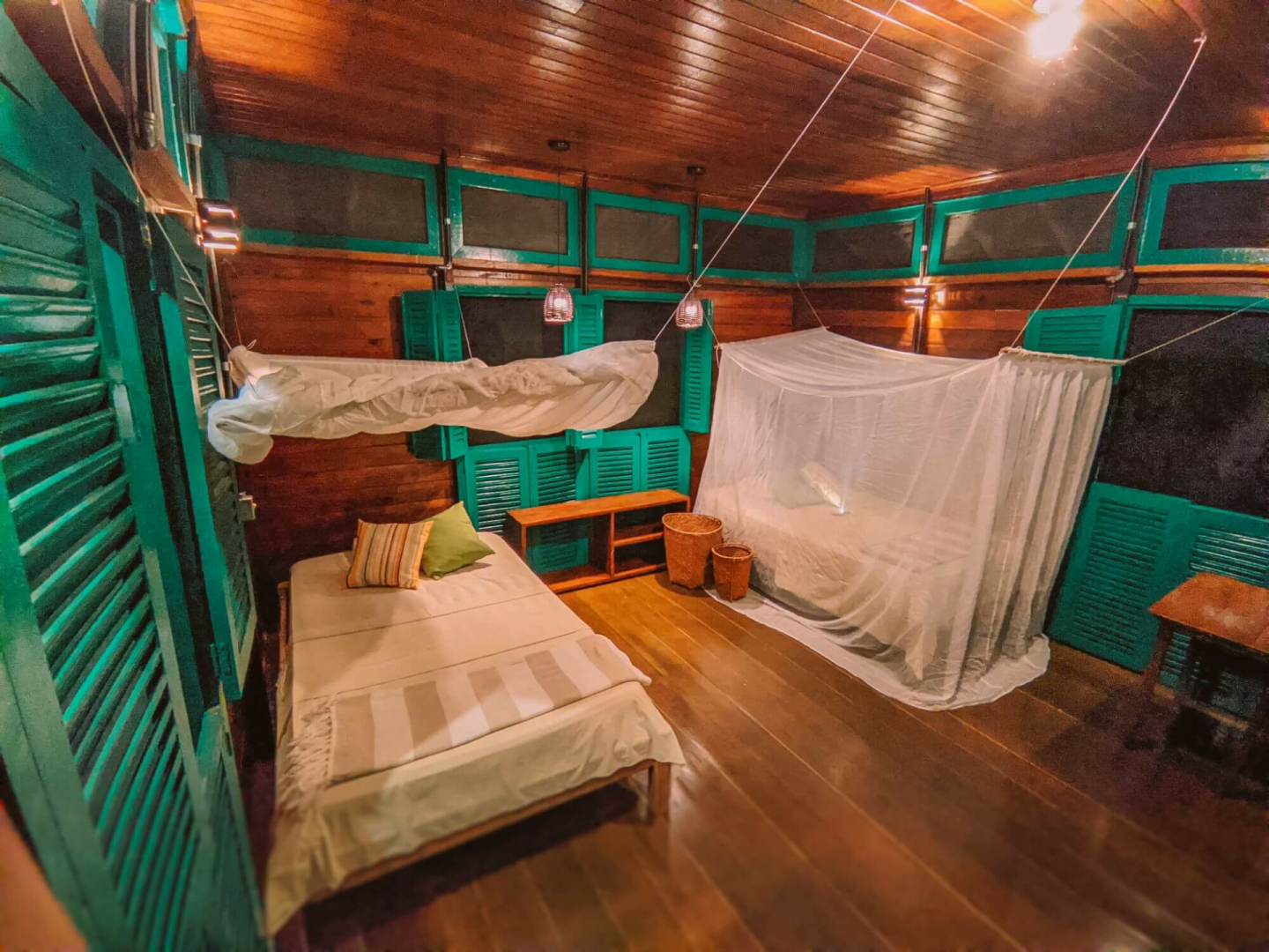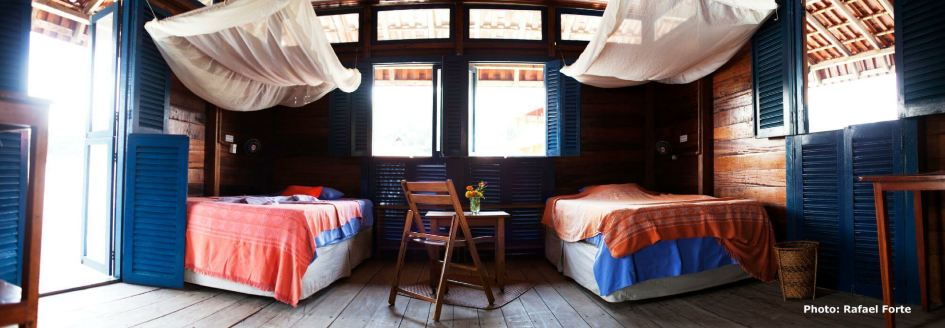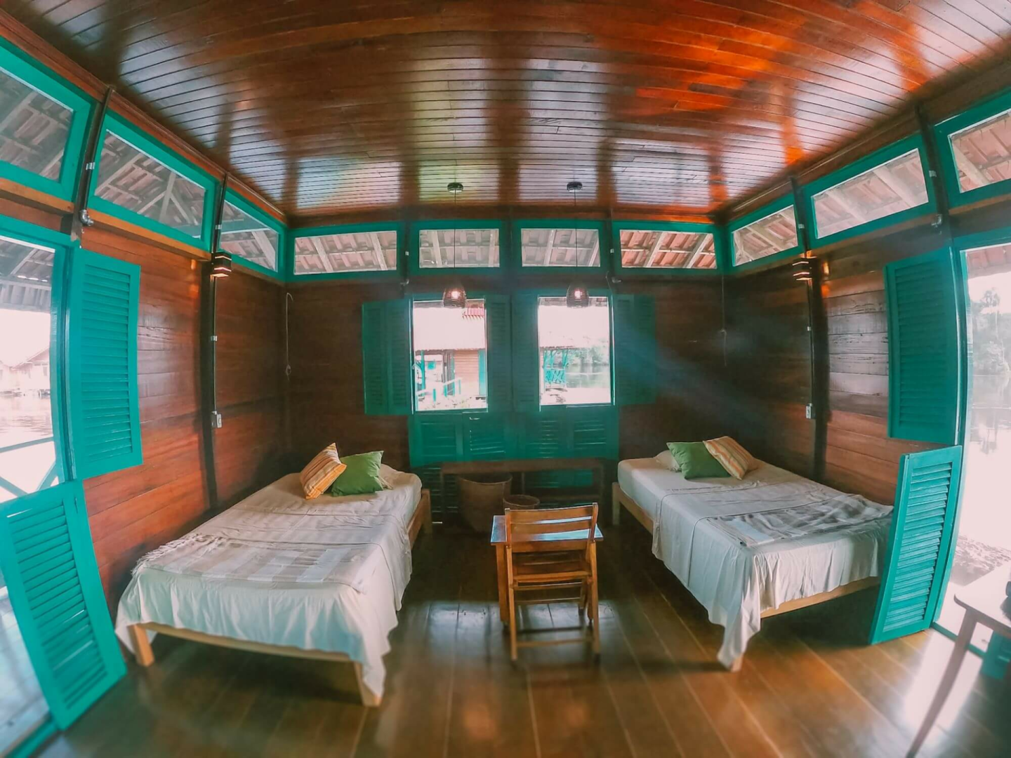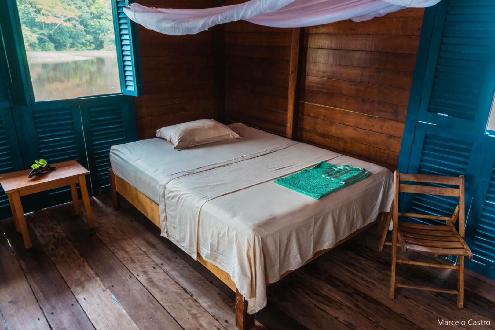 Die Unterbringung erfolgt in einfach eingerichteten, über dem Wasser schwebenden Bungalows, welche über eine Holzbrücke zu erreichen sind. Hier wird den Gästen das Gefühl vermittelt, selbst Forscher zu sein. Die Unterkunft, die keineswegs luxuriös ist, bietet allerdings weit mehr Bequemlichkeiten, als was man in dieser vom Wasser umgebene Region, fernab der Zivilisation, erwarten könnte. Zusammenfassend ist es eher ein als Forschungscamp zu bezeichnendes Wasserhotel inmitten einer unberührten Amazonas-Landschaft.