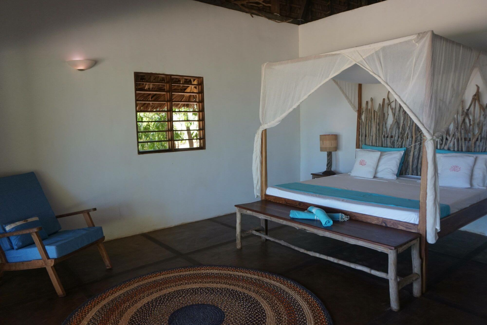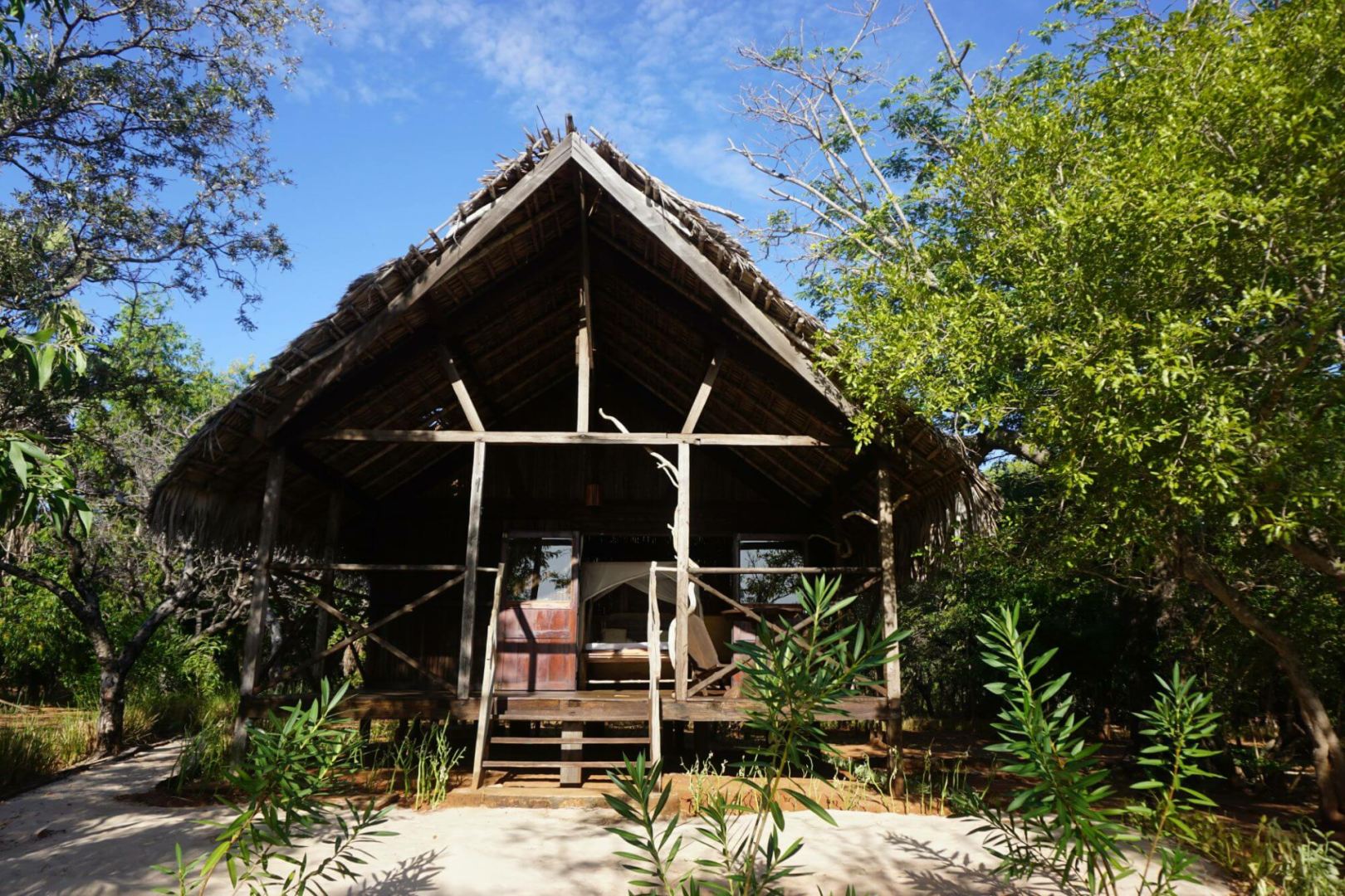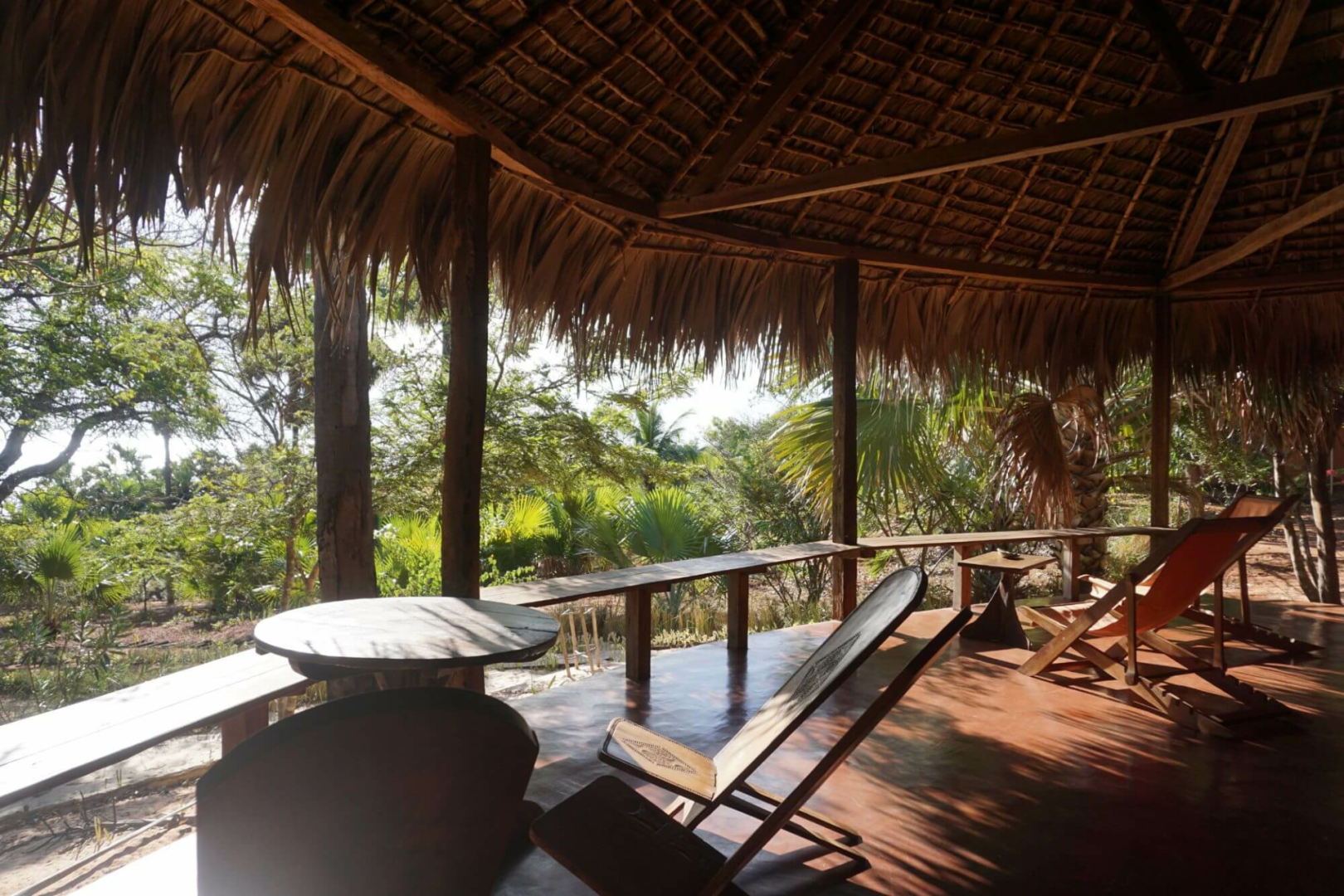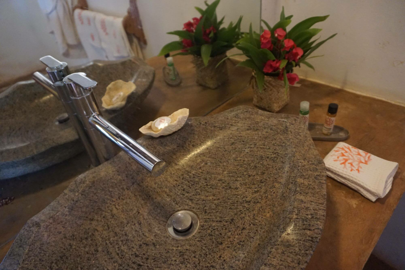 Die nur acht Bungalows sind perfekt in die Natur integriert, umgeben von dichter, tropischer Vegetation. Sie sind wunderschön mit Treibholz, Muscheln und vielem Kunsthandwerk dekoriert. Man hat dort alles, was man braucht: privates Badezimmer und eine riesige Terrasse mit Meerblick, mit Hängematte.