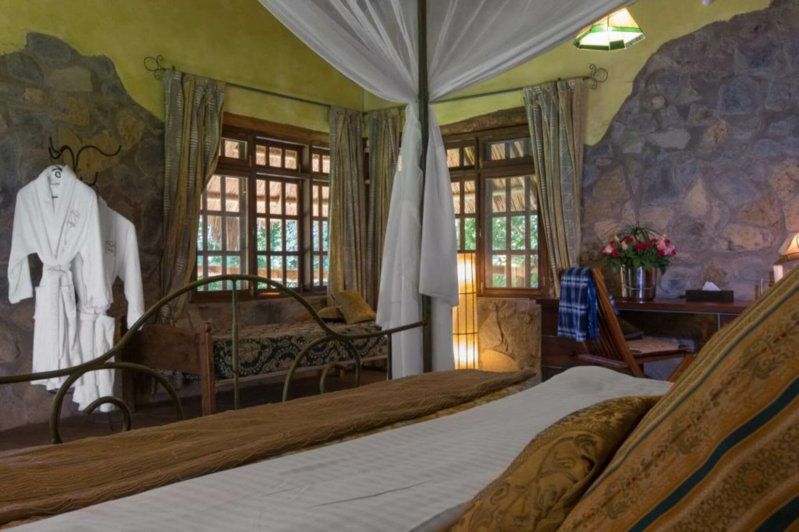 Angenehme Mittelklasselodge am Ufer des Flusses Usa, auf halbem Weg zwischen der Stadt Arusha und dem internationalen Kilimanjaro-Flughafen gelegen. Kernstück des auf einem zehn Hektar großen Gelände mit üppigen tropischen Gärten gelegenen Anwesens ist ein ehemaliges Farmhaus, welches liebevoll mit Antiquitäten und mit alten gerahmten Fotos dekoriert ist. Der Speisesaal und die Bar befinden sich in einem separaten reetgedeckten Gebäude, das zur Seite hin völlig offen ist und einen Blick auf die Gärten bietet.