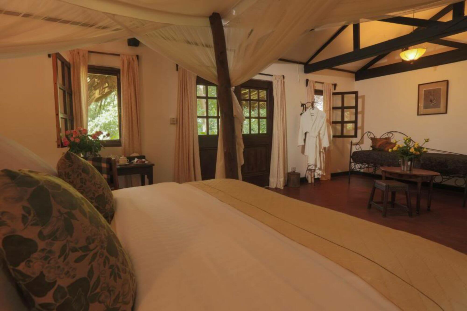 Rivertrees verfügt über 38 Zimmer in Cottages, welche auf dem großen Grundstück verteilt sind. Die meisten davon sind Standardzimmer, zwei pro Cottage, alle mit eigenem Bad, Ventilatoren und Moskitonetzen ausgestattet.