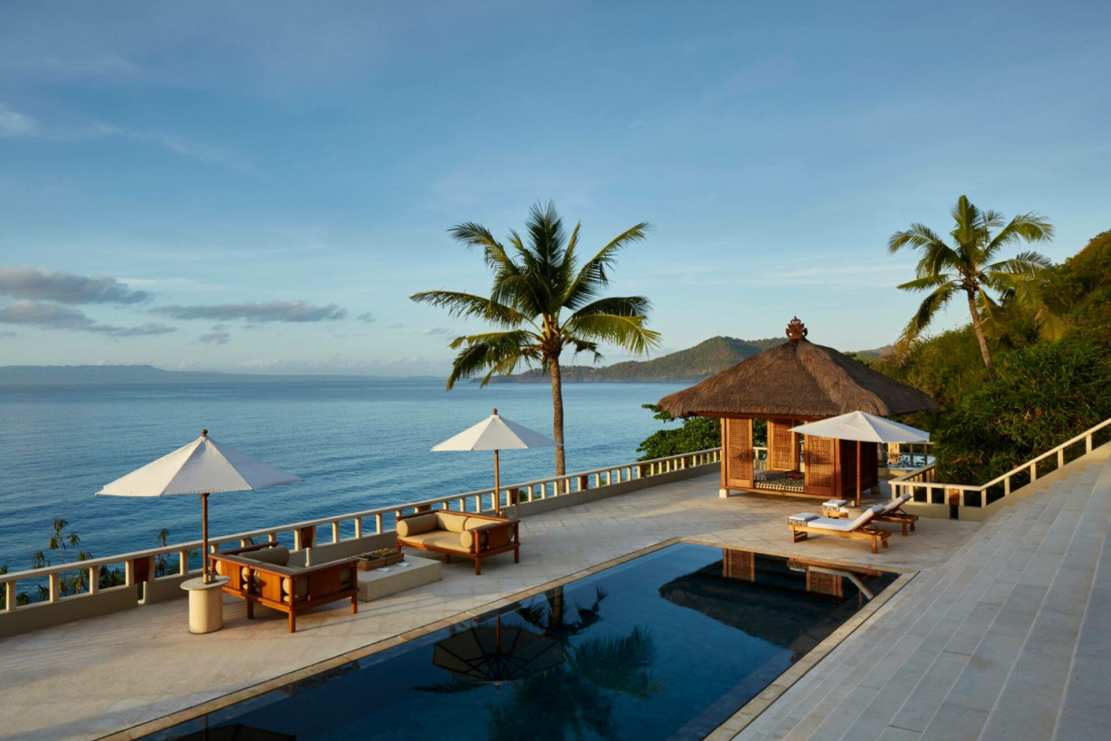 Aber das Unglaublichste am Amankila ist der Swimmingpool mit drei Bahnen mit dem unglaublichsten Blick auf das Meer, den man sich vorstellen kann.