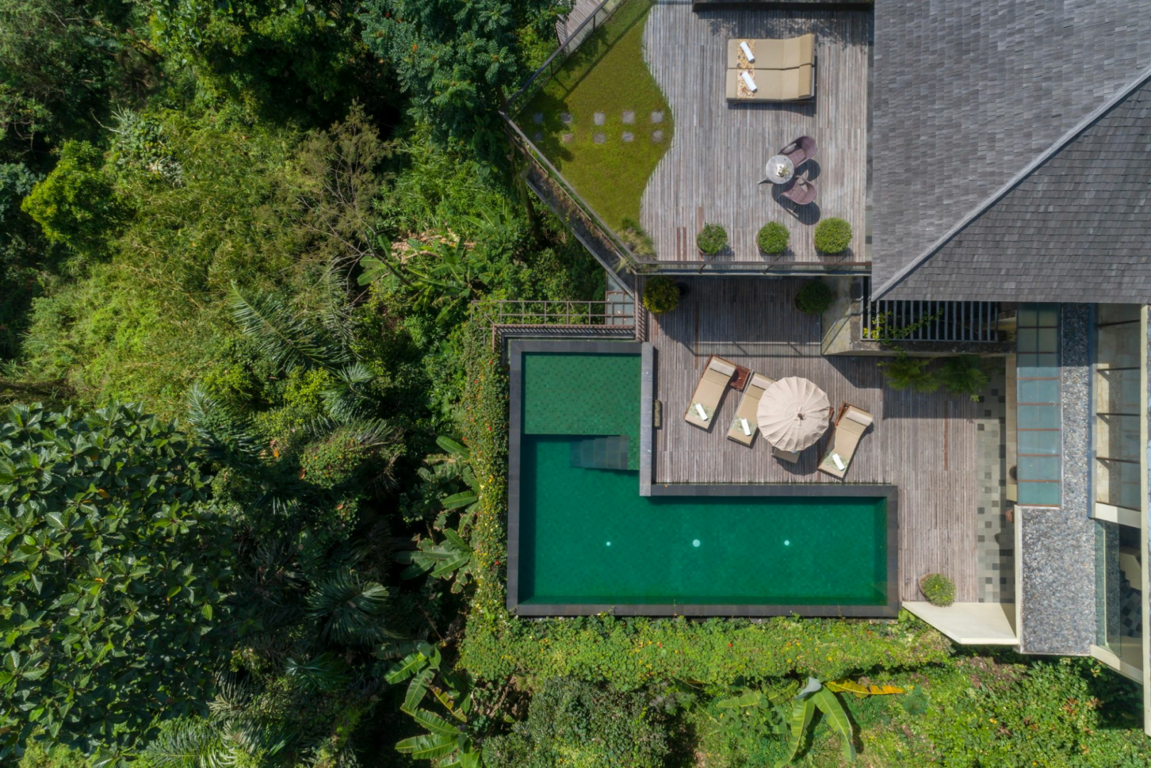 Das Nonplusultra für Romantiker sind jedoch die Villen im Tal, die einen atemberaubenden Blick auf das Dschungeltal bieten. Sie sind sehr privat und verfügen über einen schönen privaten Poolbereich.