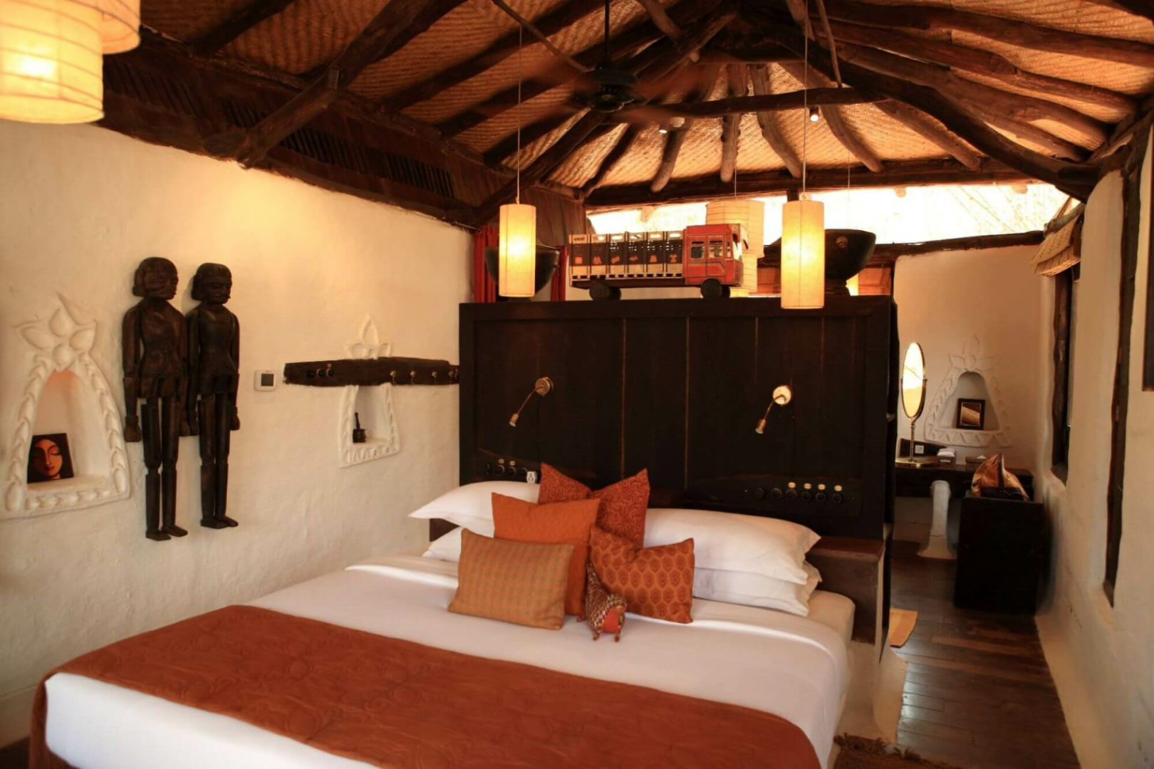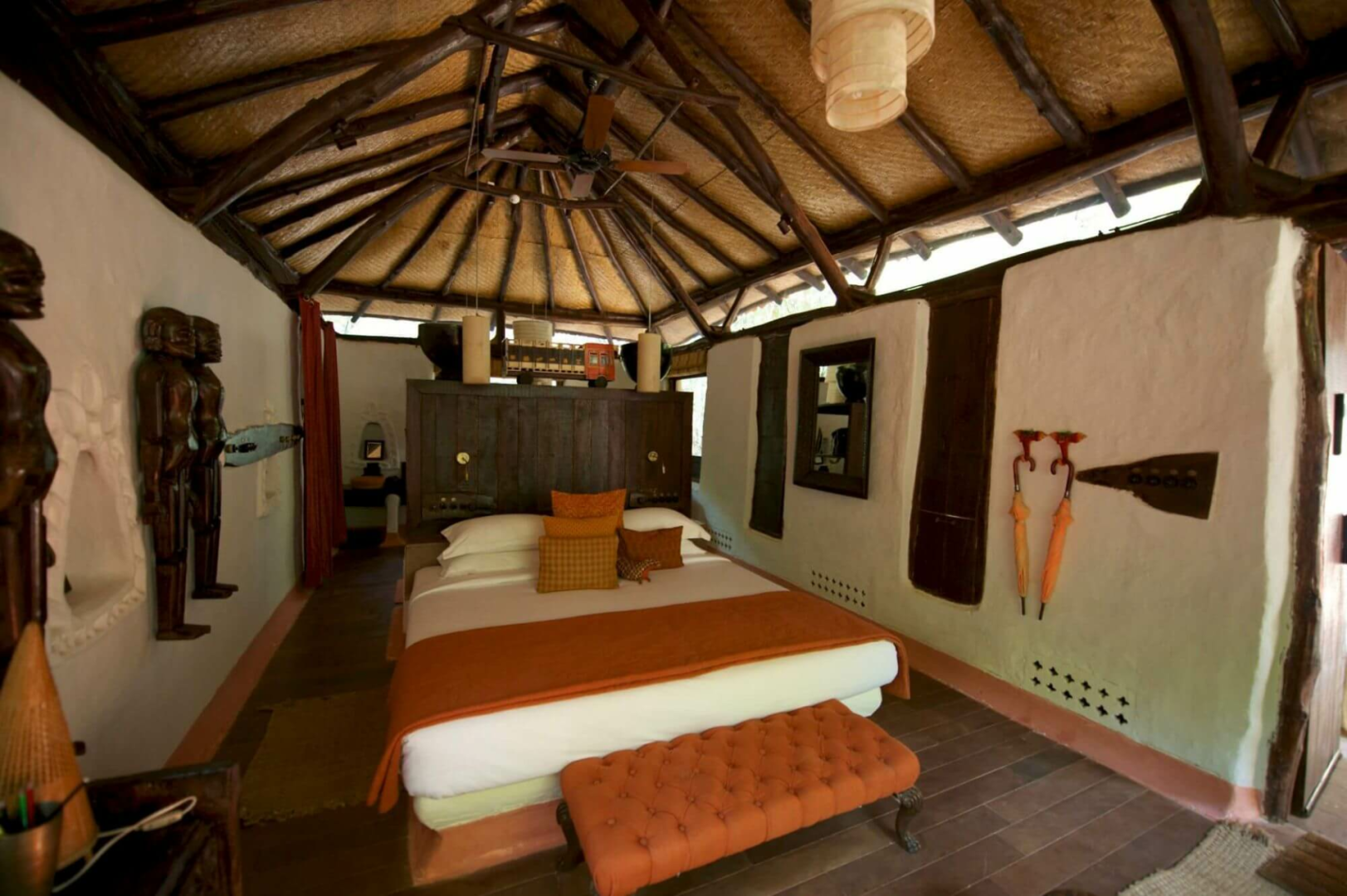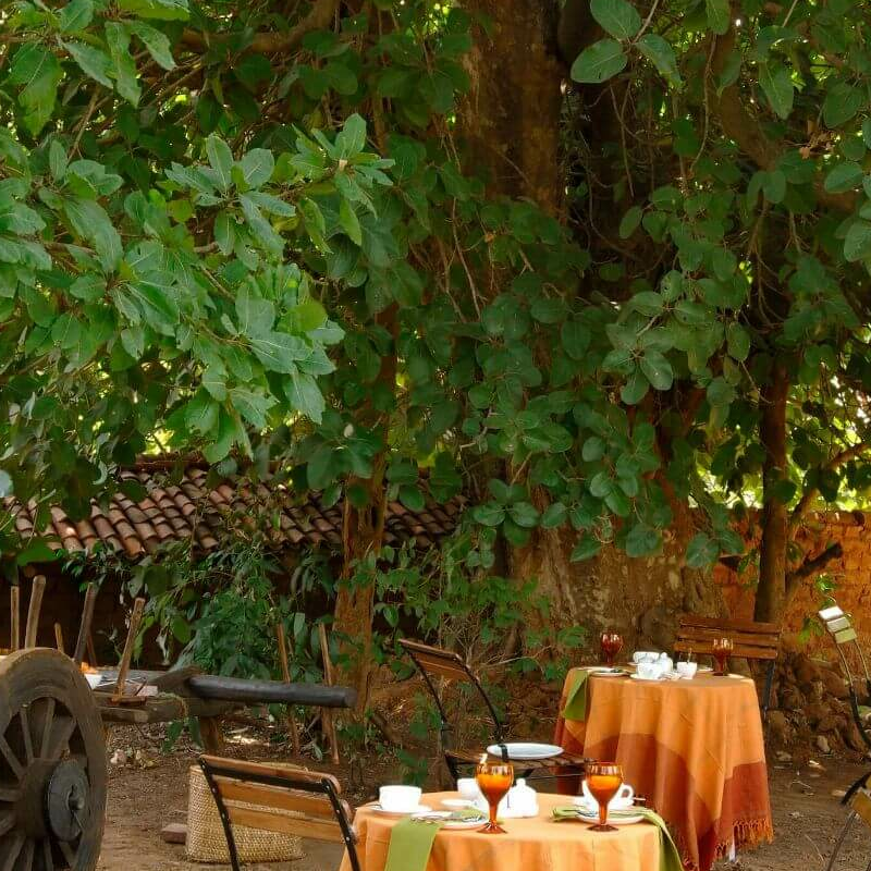 Es ist die Markenlodge der Taj Hotelgruppe mit Lehmcottages inkl. ethnischer Ausstattung und romantischen Bädern mit Dusche und Badewanne. Auf der gemütlichen, privaten Terrasse kann man den Tag wunderbar ausklingen lassen. Service wird hier ganz großgeschrieben.