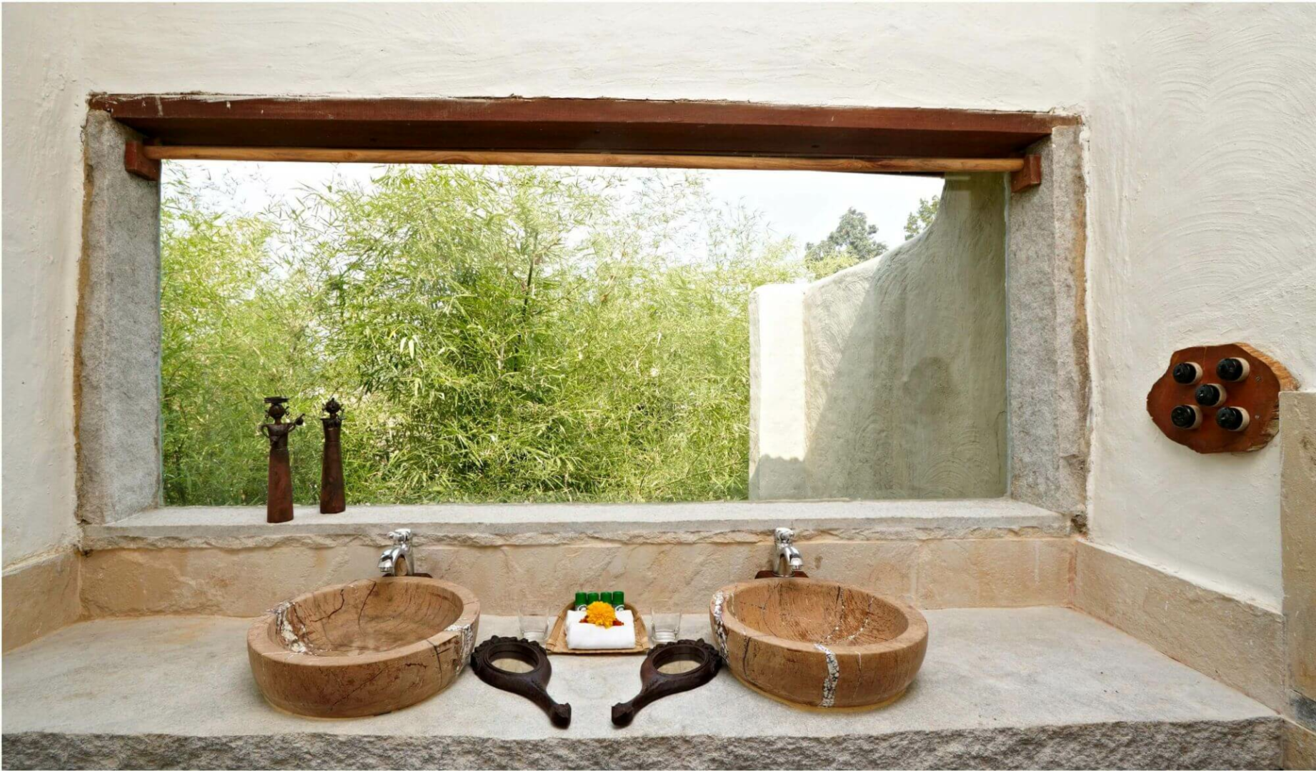 Beim Bau wurden viele Naturmaterialien integriert. Holz ist überall sehr präsent: von den Dekorelementen bei der Inneneinrichtung der 18 Cottages, über die Badezimmer mit Dus...