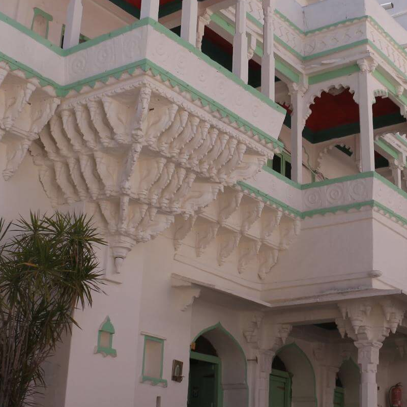 Die Anfahrt durch die staubigen Straßen des Dorfes scheint nicht viel zu versprechen. Doch sobald man das Eingangstor durchschritten hat, das von einem wunderschönen, makellosen weißen Tempel flankiert wird, scheint die Zeit ein Jahrhundert zurückgedreht zu sein.