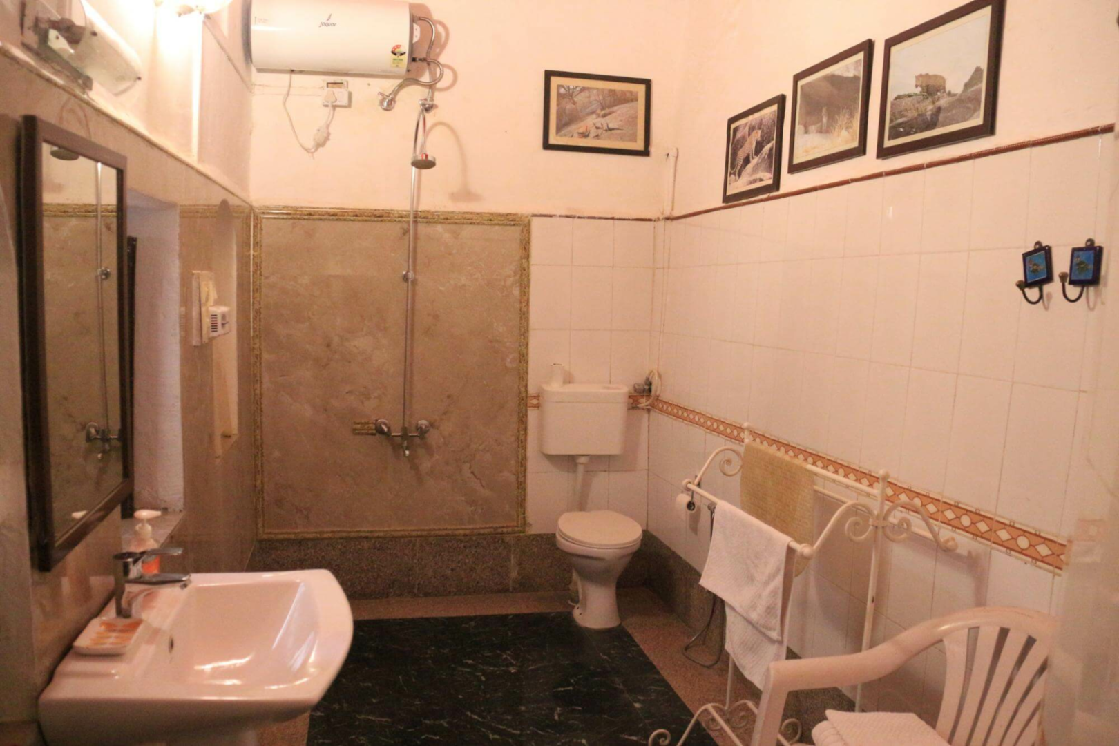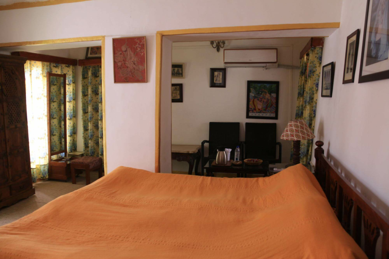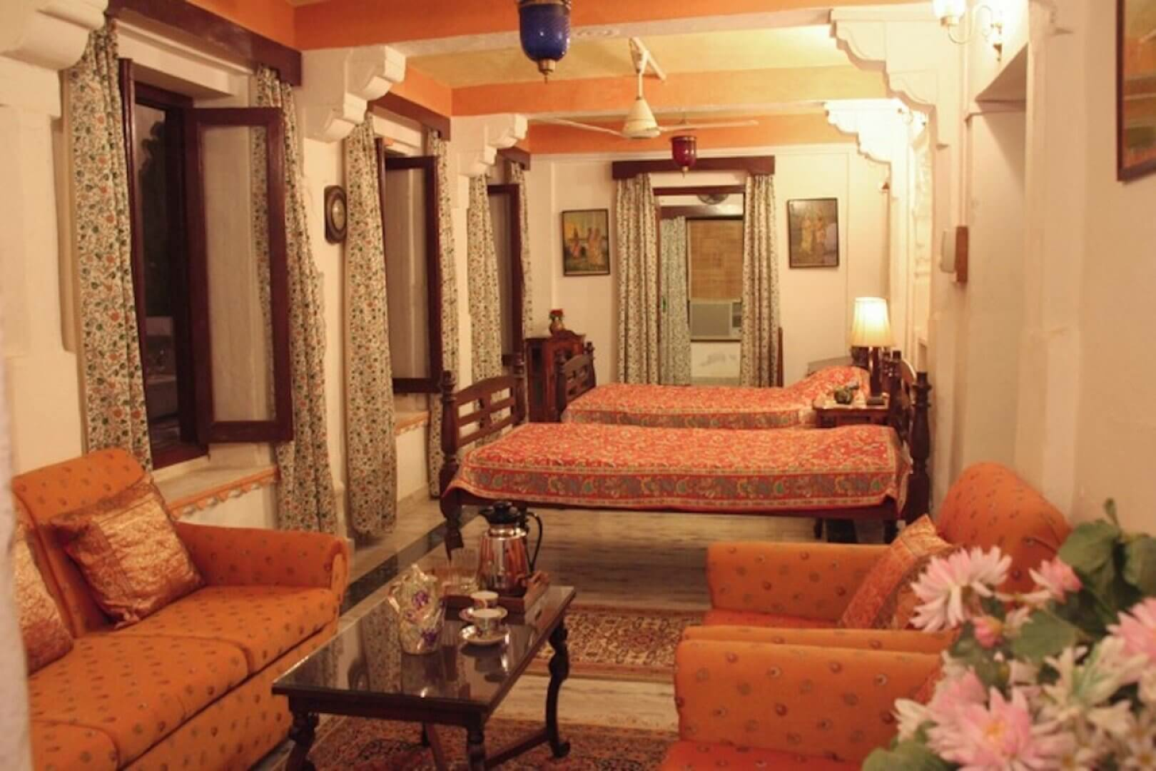 Herr Thakur vermietet nur fünf Zimmer im Palast als Gästezimmer auf verschiedenen Etagen und Flügeln, von denen einige echte Wohneinheiten mit separaten Wohn- und Kinderzimmern (mit eigenen Bädern) sind.