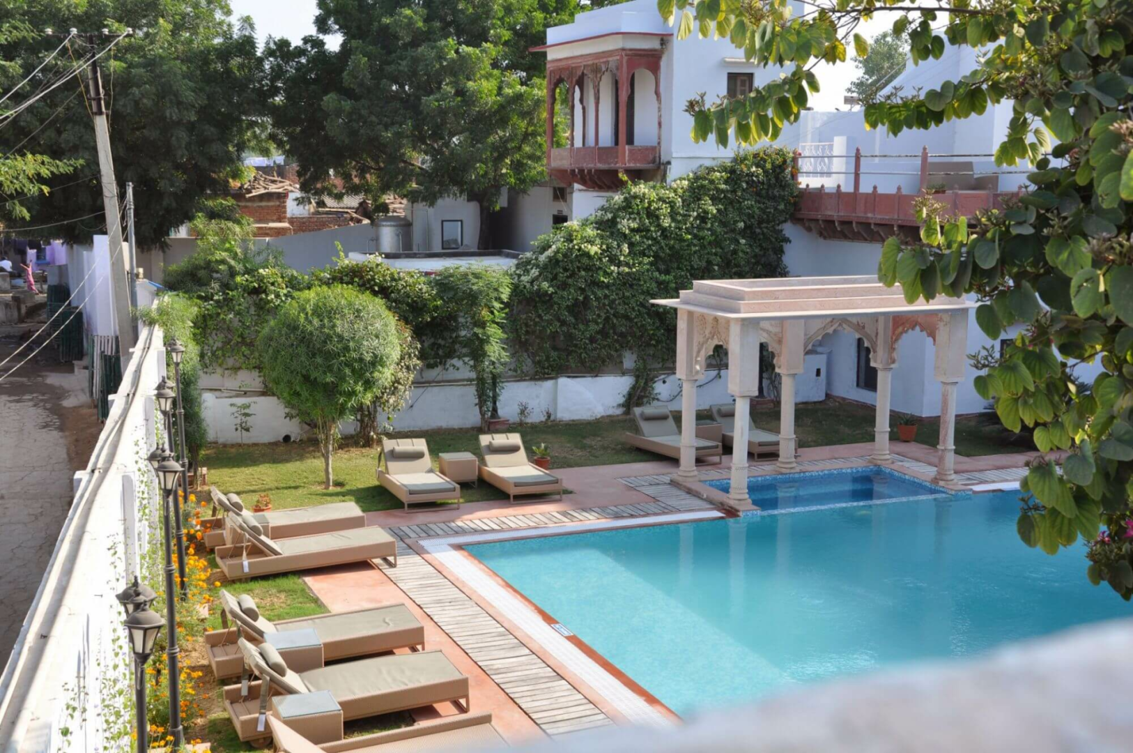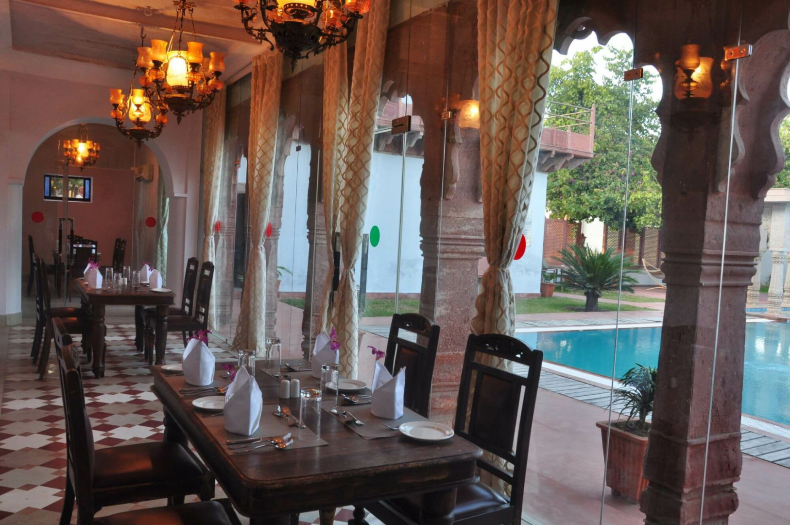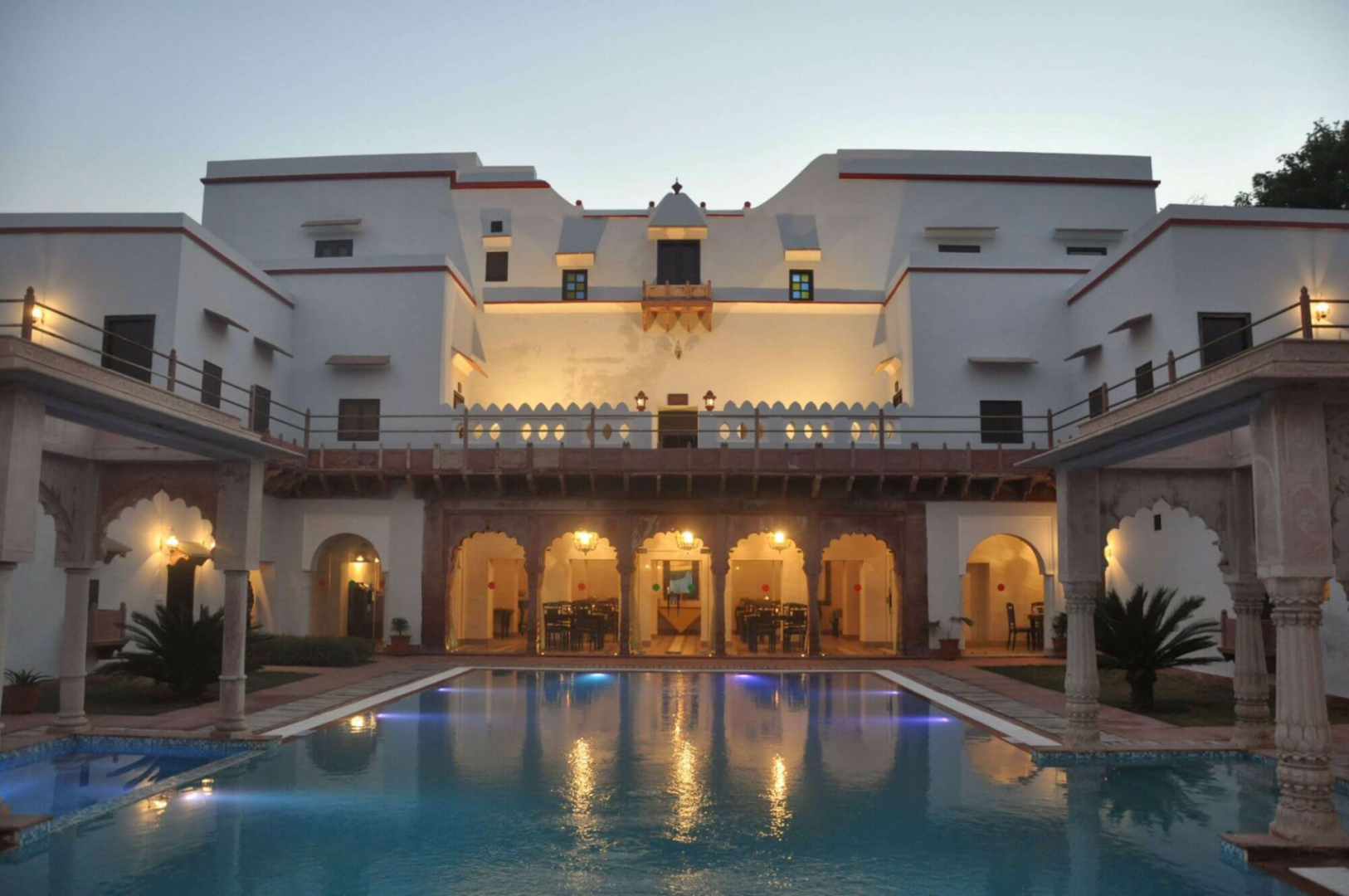 Chandra Mahal ist zweifellos ein gut funktionierendes Heritage-Hotel ohne böse Überraschungen. Nicht jeder wird sich allerdings durch die unmittelbare Lage mitten im armseligsten Dorf vor den unverhohlenen Blicken der Dorfbewohner wohlfühlen. Badende Damen in Badekleidung sollten damit rechnen, angestarrt zu werden.