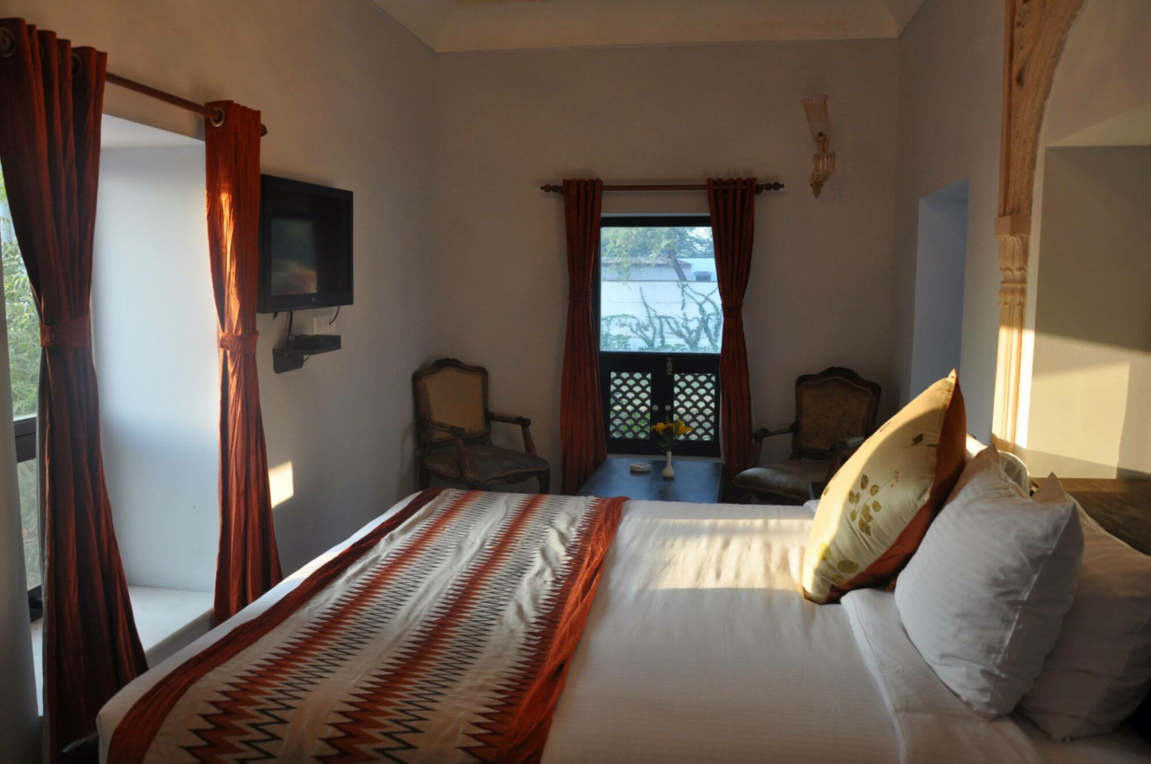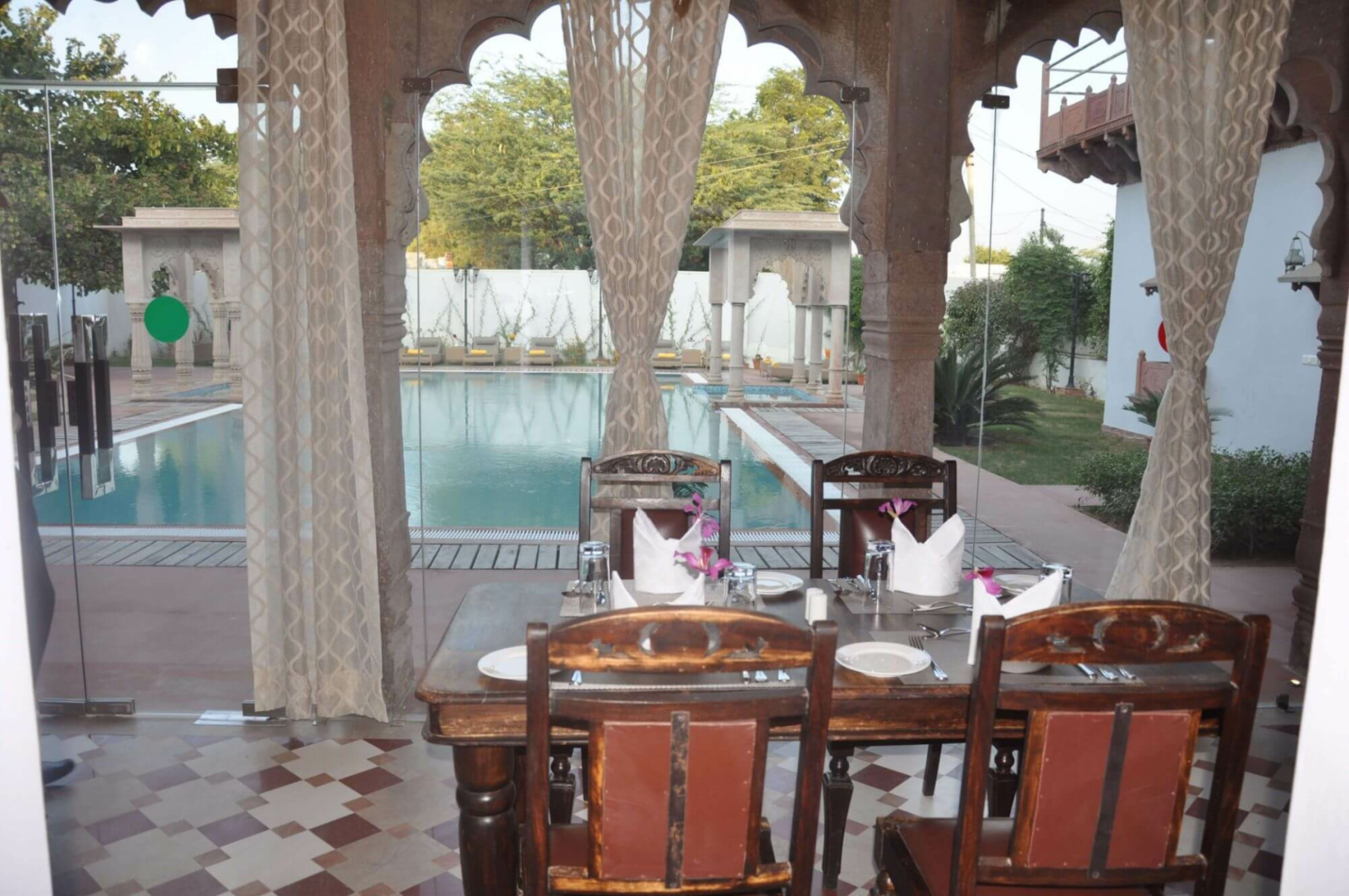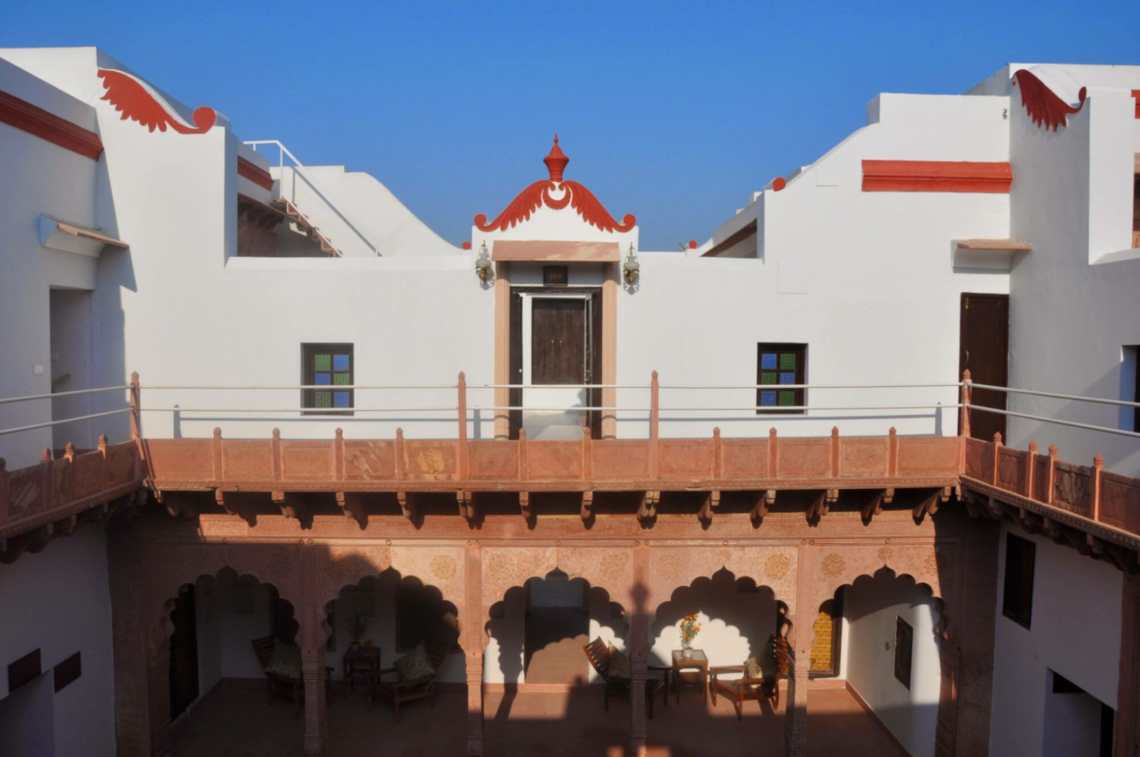 Chandra Mahal ist zweifellos ein gut funktionierendes Heritage-Hotel ohne böse Überraschungen. Nicht jeder wird sich allerdings durch die unmittelbare Lage mitten im armseligsten Dorf vor den unverhohlenen Blicken der Dorfbewohner wohlfühlen. Badende Damen in Badekleidung sollten damit rechnen, angestarrt zu werden.