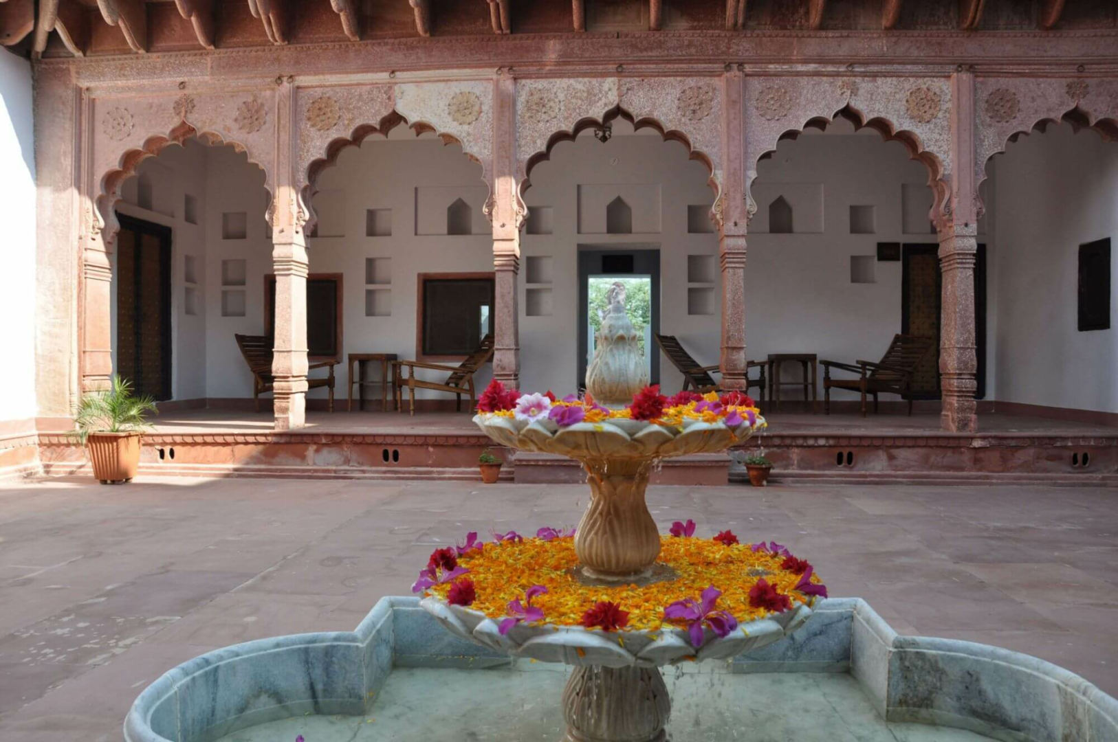 Chandra Mahal ist ein liebevoll restaurierter Palast inmitten eines kleinen Bauerndorfes ungefähr 30 Minuten Fahrzeit vom Bharatpur Bird Sanctuary entfernt.