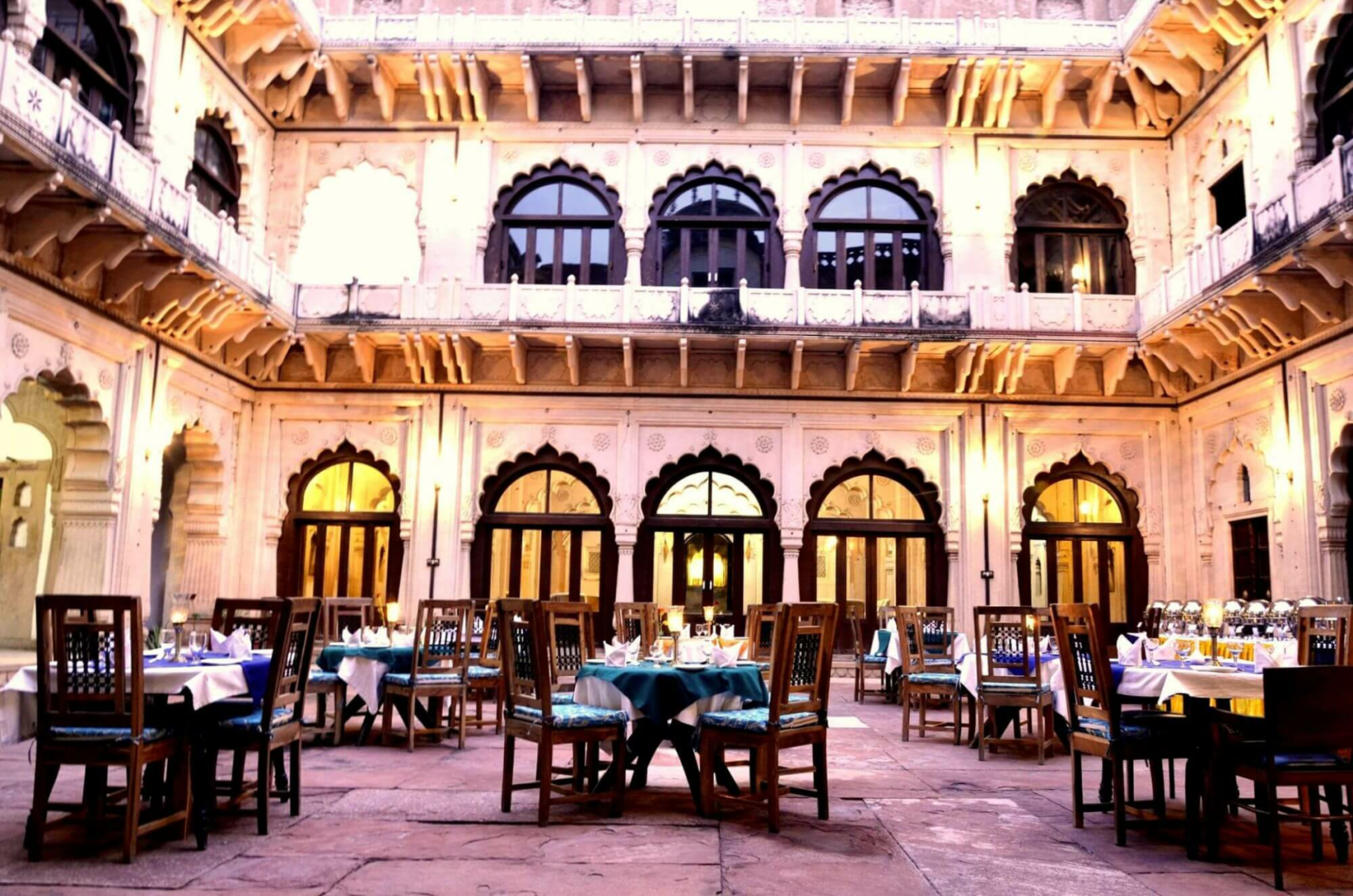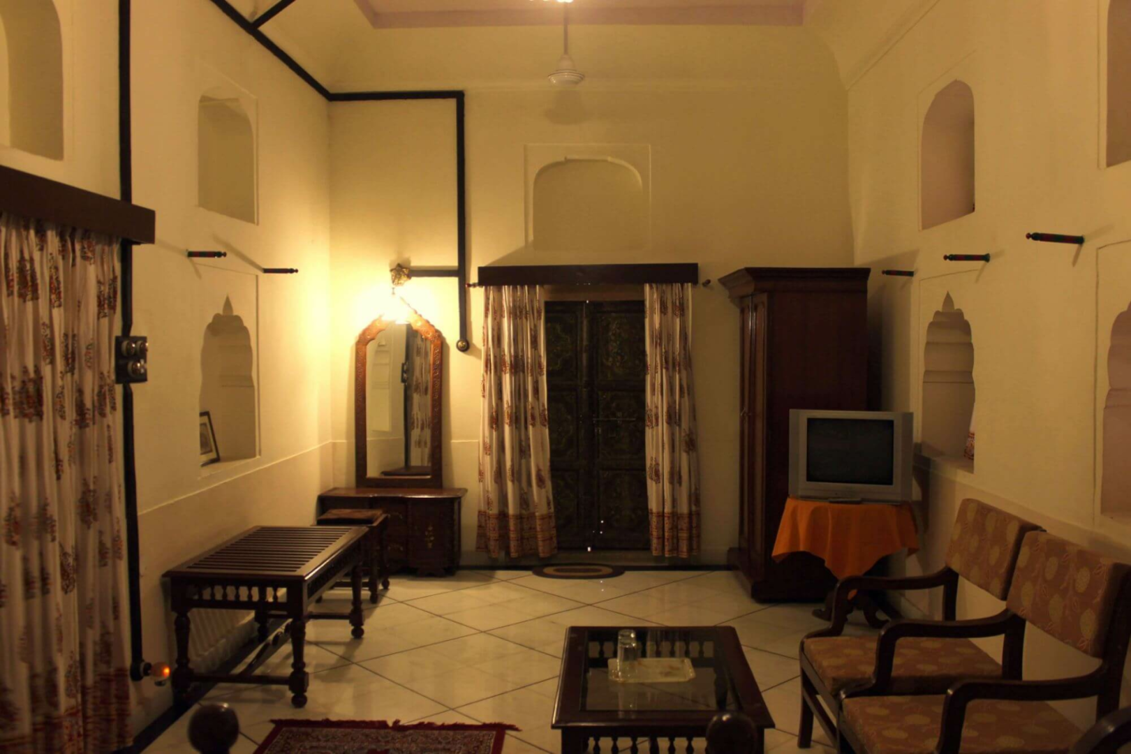 Die Besitzer dieses einmaligen Kulturerbes wohnen noch im Palast, einige wenige Zimmer wurden für Gäste saniert und zurecht gemacht. Überall sind alte Gemälde und originale Einrichtungselemente zu sehen. Am Meisten beeindruckt aber der großartige Innenhof. Mahal Khas ist alles andere als ein Luxushotel. Überall bröckelt es, die Stromversorgung ist immer ungewiss, der Service extrem langsam, aber immer mit einem Lächeln auf den Lippen, das Essen überteuert. Was soll es? Man ist hier, um sich vom Zauber eines geschichtsträchtigen Ortes inspirieren zu lassen und sich in die Zeiten der Mogul-Herrschaft über Indien versetzen zu lassen. Alle geschichtsinteressierte Menschen, die die Vergangenheit Indiens so faszinierend finden wie wir selbst gesagt, werden den Aufenthalt genießen.