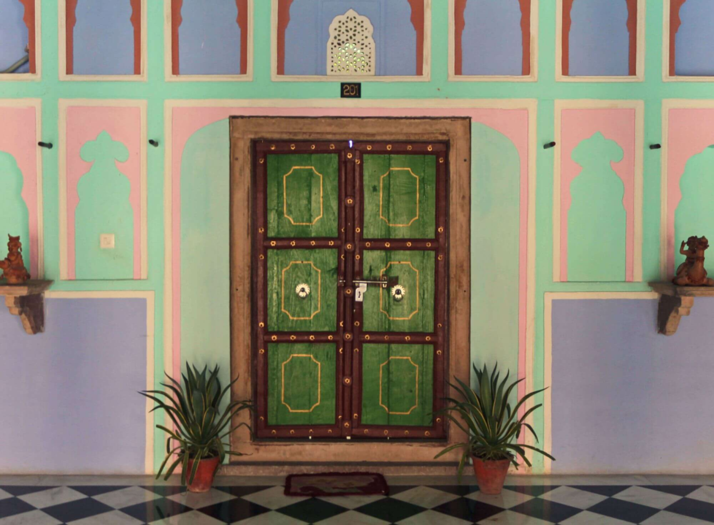 ...Chandra Mahal ist ein liebevoll restaurierter Palast inmitten eines kleinen Bauerndorfes ungefähr 30 Minuten Fahrzeit vom Bharatpur Bird Sanctuary entfernt.