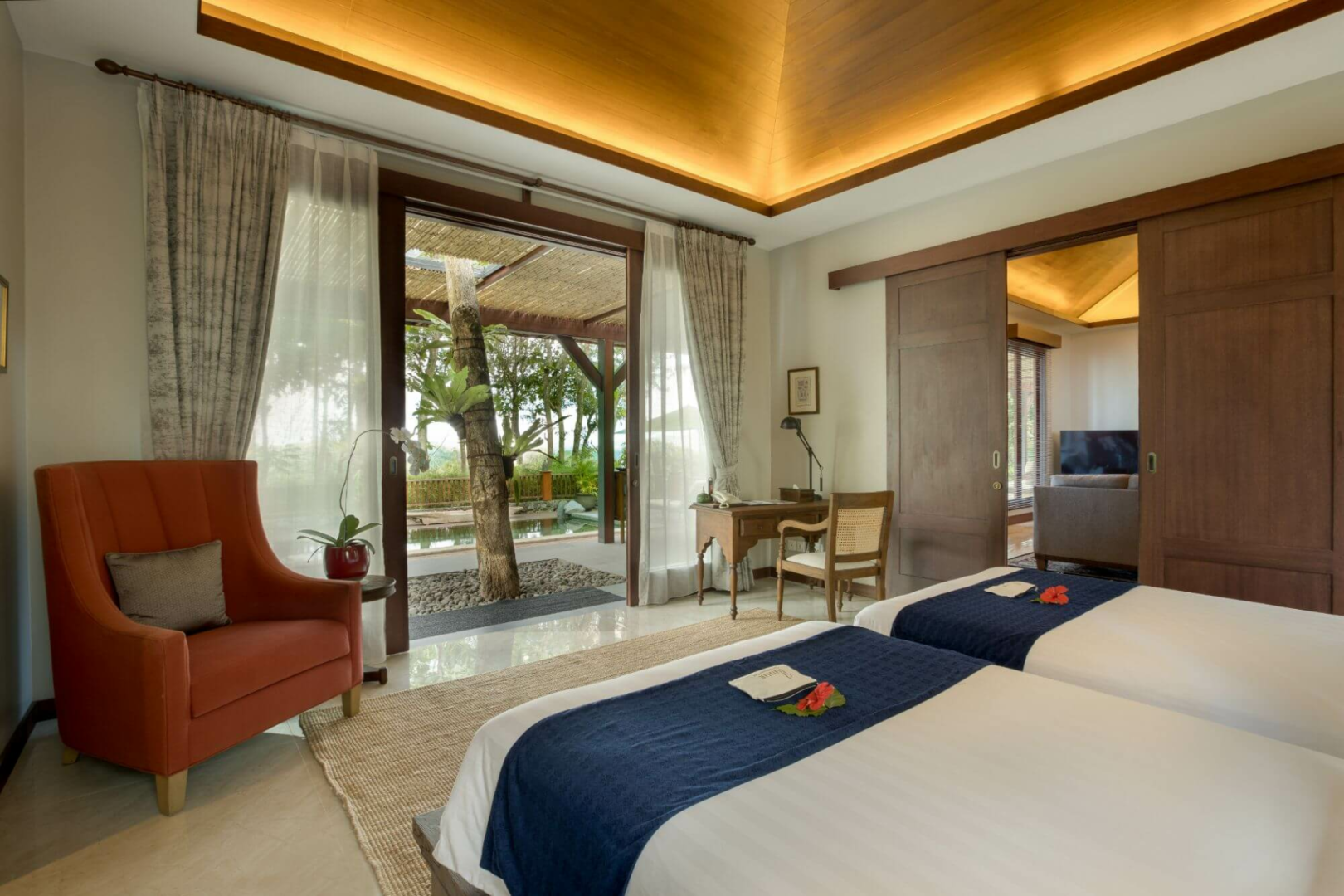 Das Plataran Borobudur Resort ist die perfekte Wahl für diejenigen, die eine kleine, gemütliche Atmosphäre mit allem Komfort von zu Hause suchen. Die Lage mit Blick auf den Borobudur-Tempel, eingebettet in eine üppige grüne Landschaft ist unvergleichlich. Alle 21 Villen im Kolonialstil befinden sich an einem steilen Hang, umgeben von Pflanzen und Bäumen. Das Erste, was Euch auffallen wird, ist die nahtlose Verbindung von traditioneller javanischer Architektur mit modernem Komfort. Die Villen sind geräumig und großzügig und verfügen über einen privaten Pool. Wenn man möchtet, kann auch in der Villa speisen. Der Höhepunkt des Erlebnisses ist zweifellos der engagierte, private Butler, der sich persönlich um Euren Aufenthalt kümmert, um sicherzustellen, dass er perfekt ist.