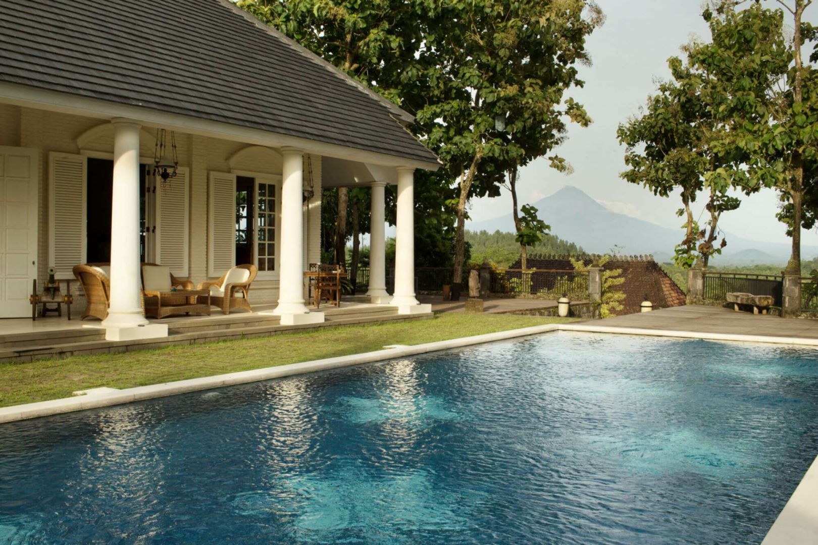Es erwartet Dich eine ganz private Villa mit Blick auf die Vulkane von Yogyakarta, den Borobudur-Tempel...