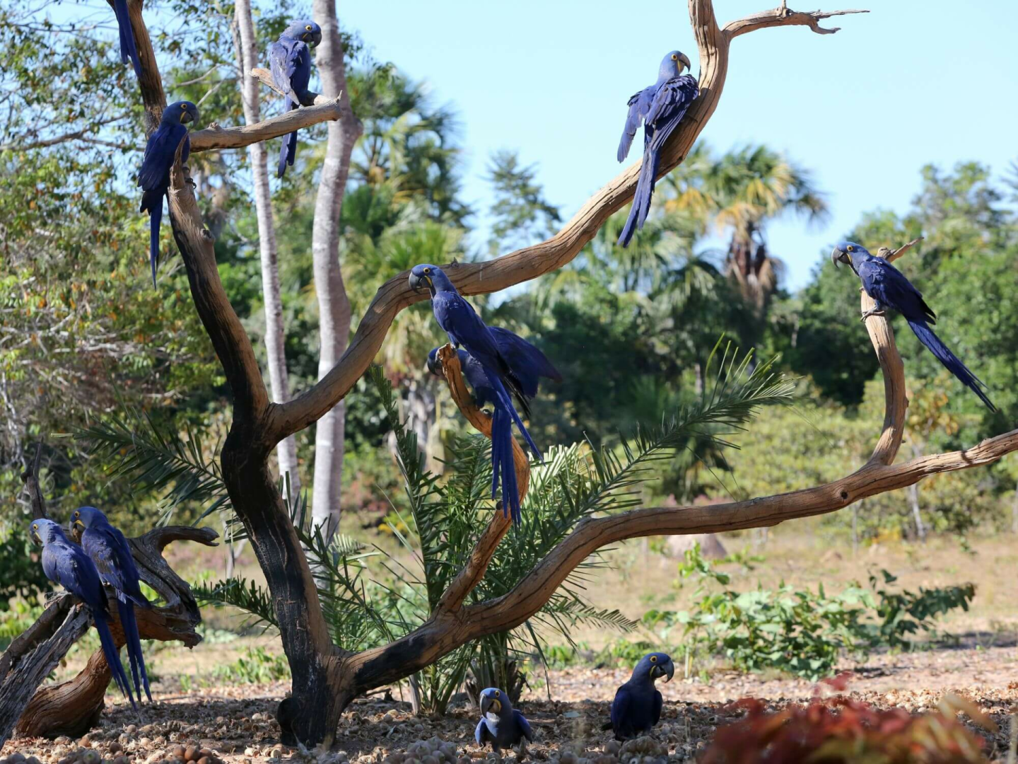 Im Wolf Valley Camp gibt es ein Versteck für die Beobachtung einen Palmenhain, wo Hyazinth-Aras regelmäßig antreffen.