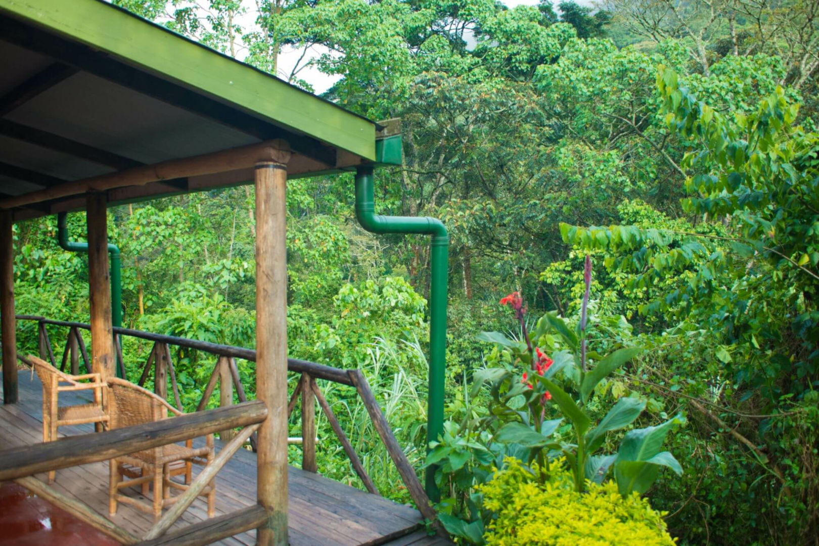 Die Unterbringung der Gäste erfolgt in großzügigen Chalets mit traumhaftem Blick auf den Regenwald.