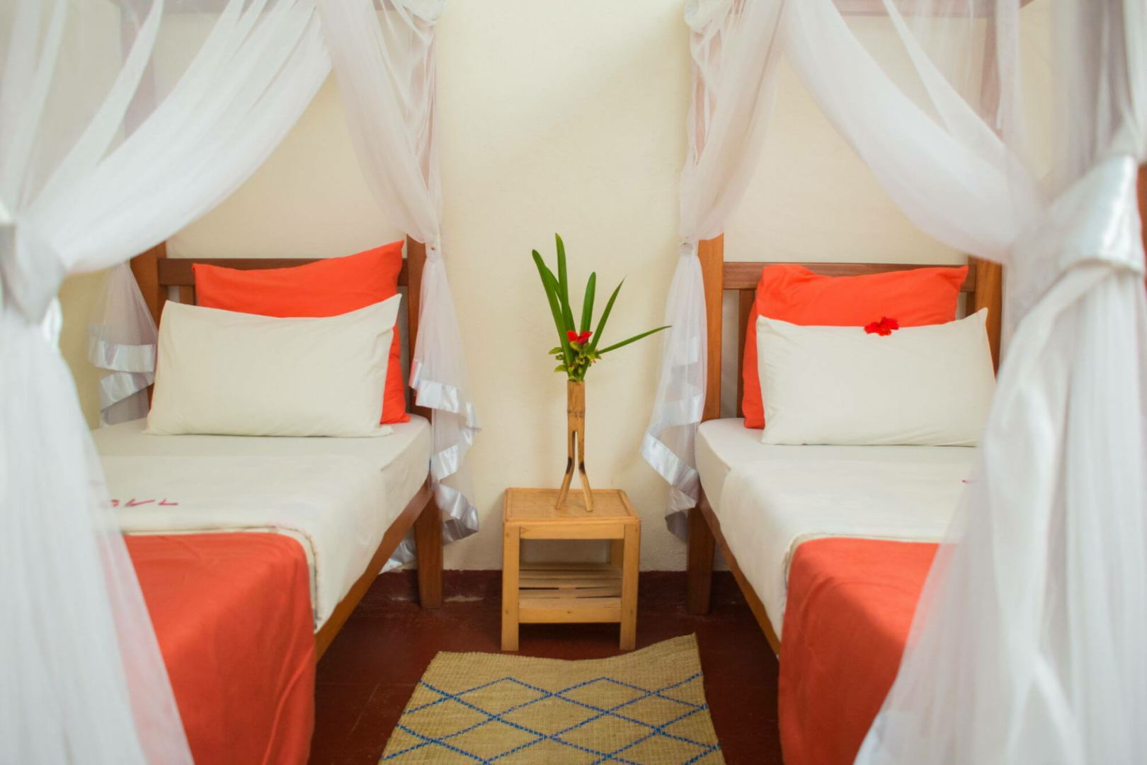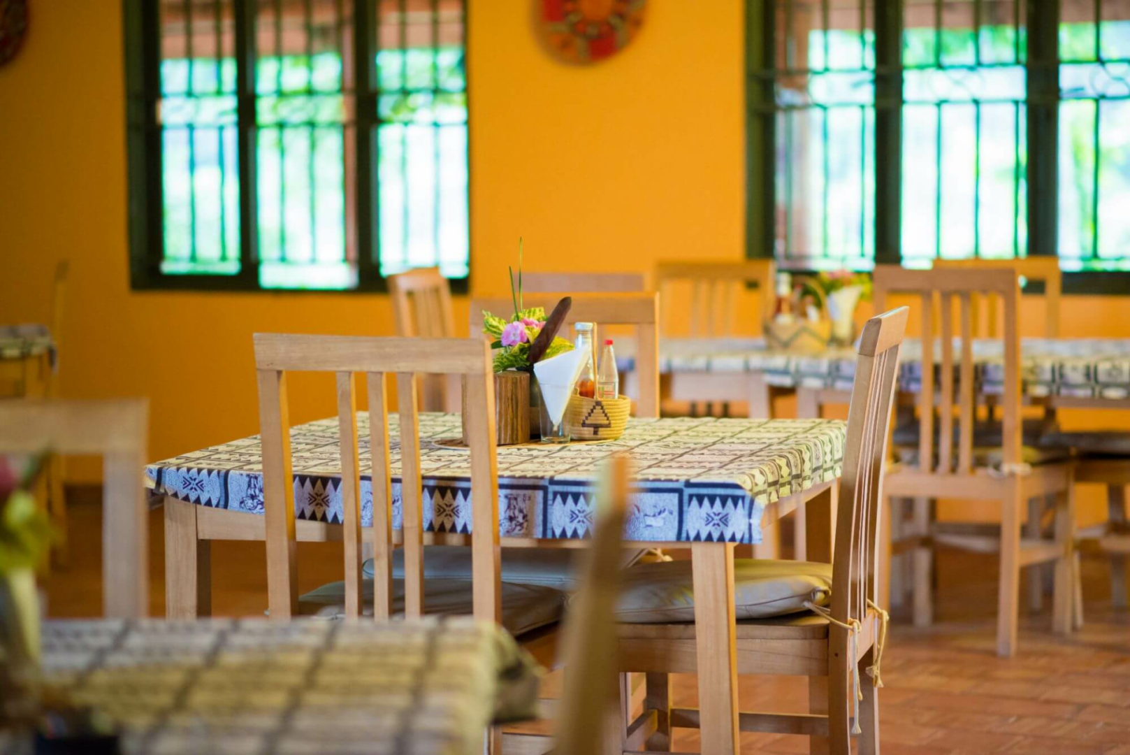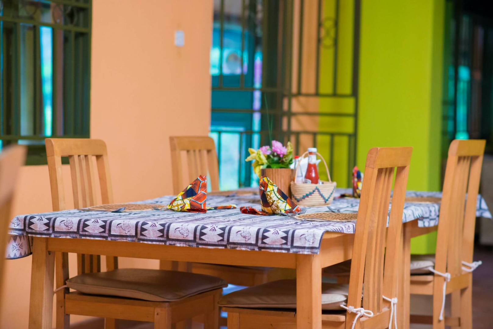 Die Lodge an sich ist relativ einfach, mit wenigen, zweckmäßig eingerichteten Zimmern, welche in oker gestrichenen Doppelbungalows mit Veranda untergebracht sind.