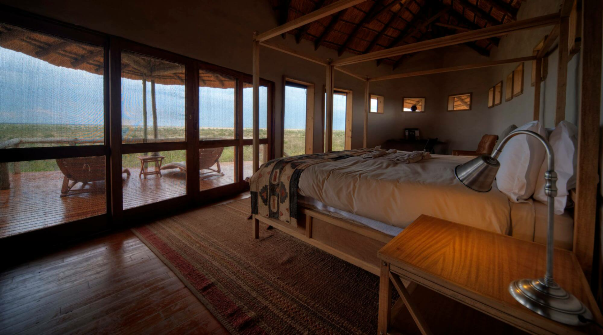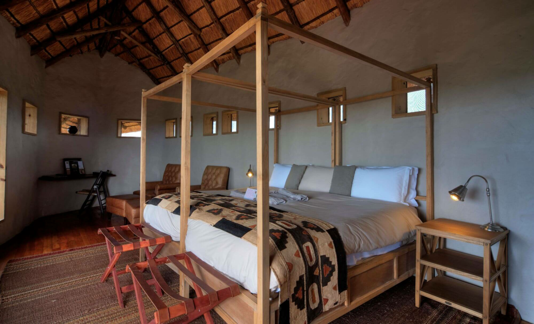 Von den beiden im Kalahari Game Reserve bestehende Camps ist das Tau Pan, 2009 gebaut, das vielleicht komfortabelste. Dabei handelt es sich um eher eine Lodge als ein Camp, mit großzügigen elegant dekorierten öffentlichen Bereichen, einen Pool und neun auf dem Boden errichteten Chalets mit Innen- und Außendusche und einer weitläufigen Veranda mit Sitzmöglichkeiten und Superblick auf die Umgebung.
