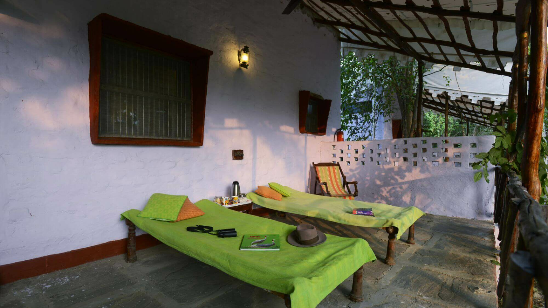 Die Lodge befindet sich in einer 35 Hektar großen Plantage mit vielen alten Bäumen, umgeben von ausgedehntem Ackerland. Chambal ist eine umweltfreundliche, ökologisch geführte Lodge, die gleichzeitig authentisch für die Region ist. Sie bietet 14 ansprechende Cottages an. Möbel und Einrichtungsgegenstände wurden so weit wie möglich vor Ort beschafft.