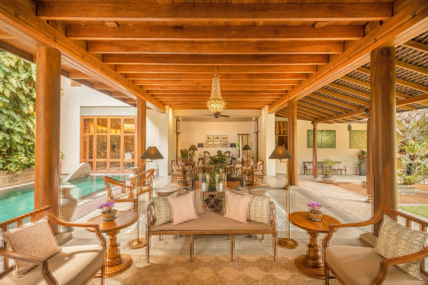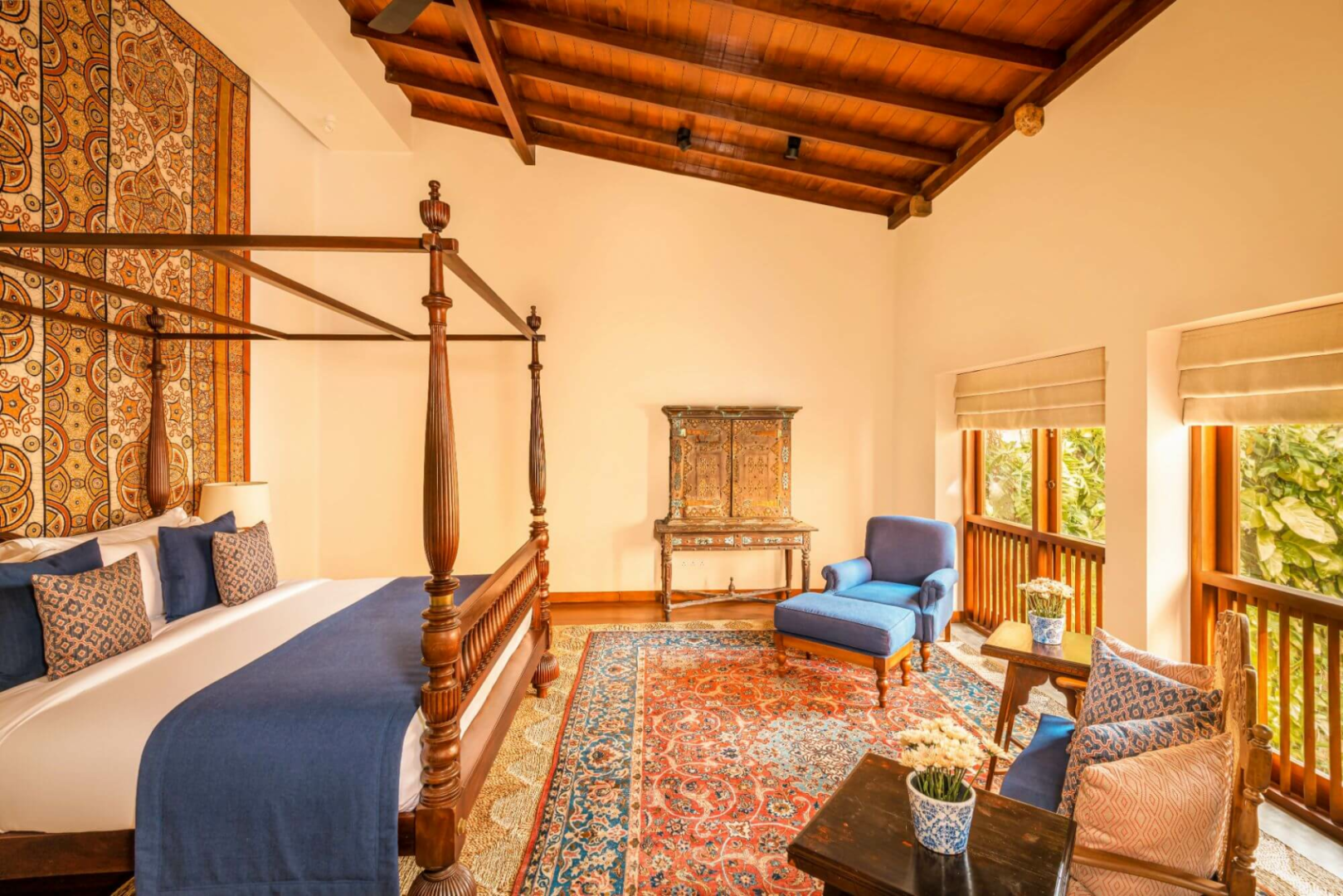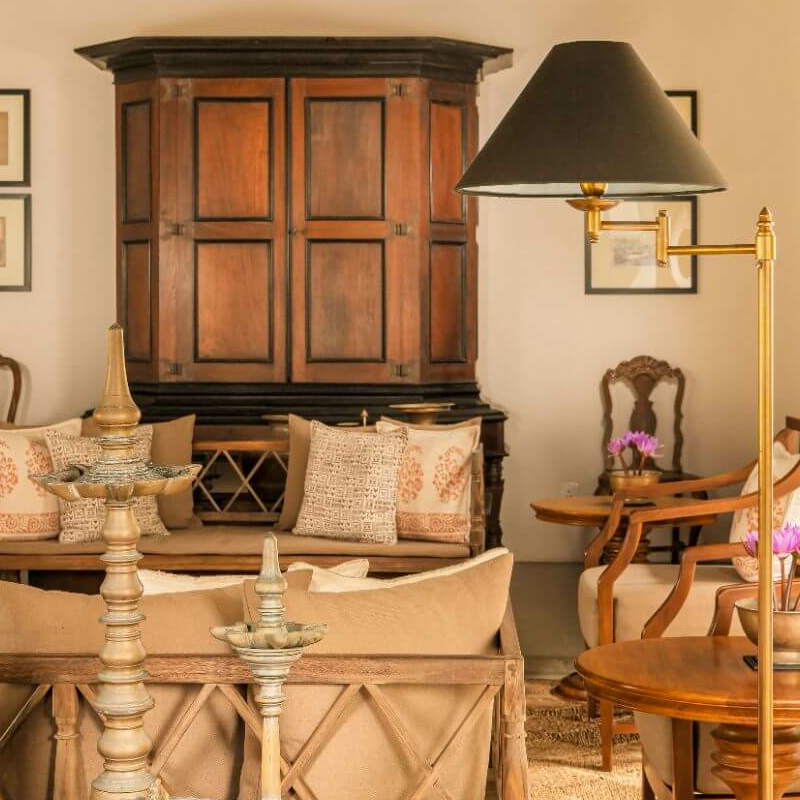Das ganze Haus ist voll von Sitzgelegenheiten mit eleganten, sammelwürdigen Sofas, die zum Ausruhen und Ausruhen mit einem Buch einladen, und Ihr werdet nicht müde, die schönen Ceylon-Ebenholz-Antiquitäten zu bewundern, die überall verteilt sind.
