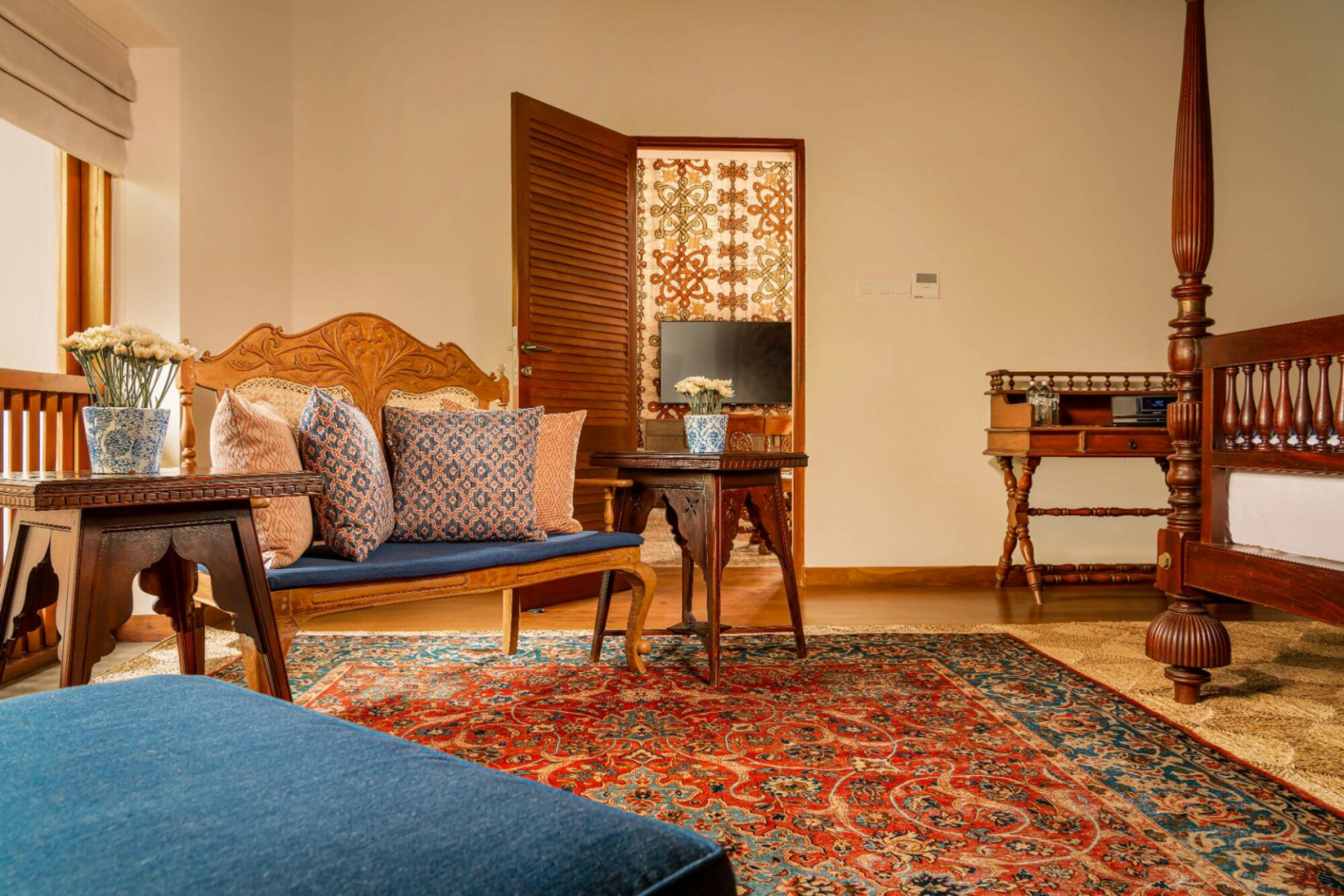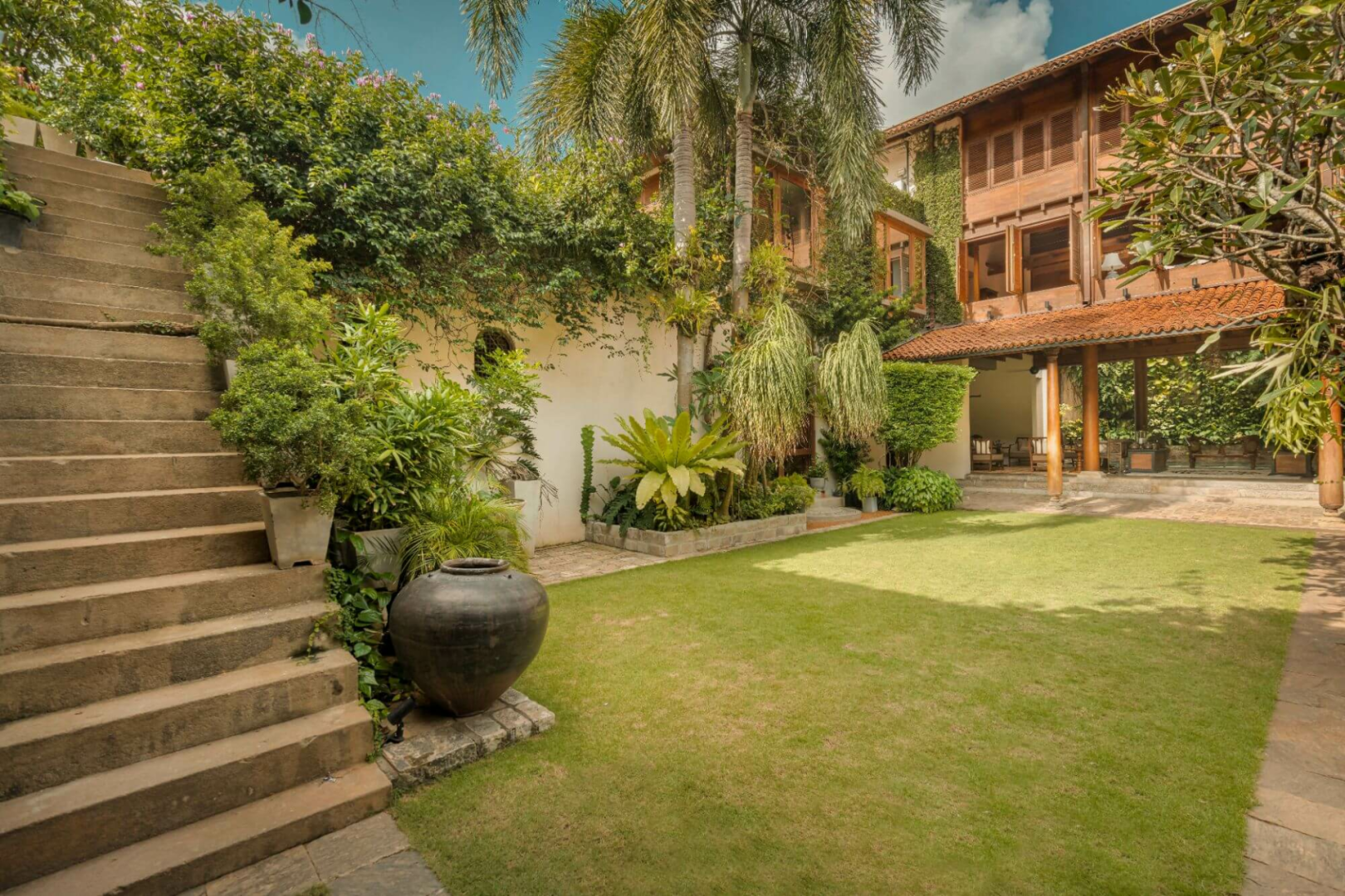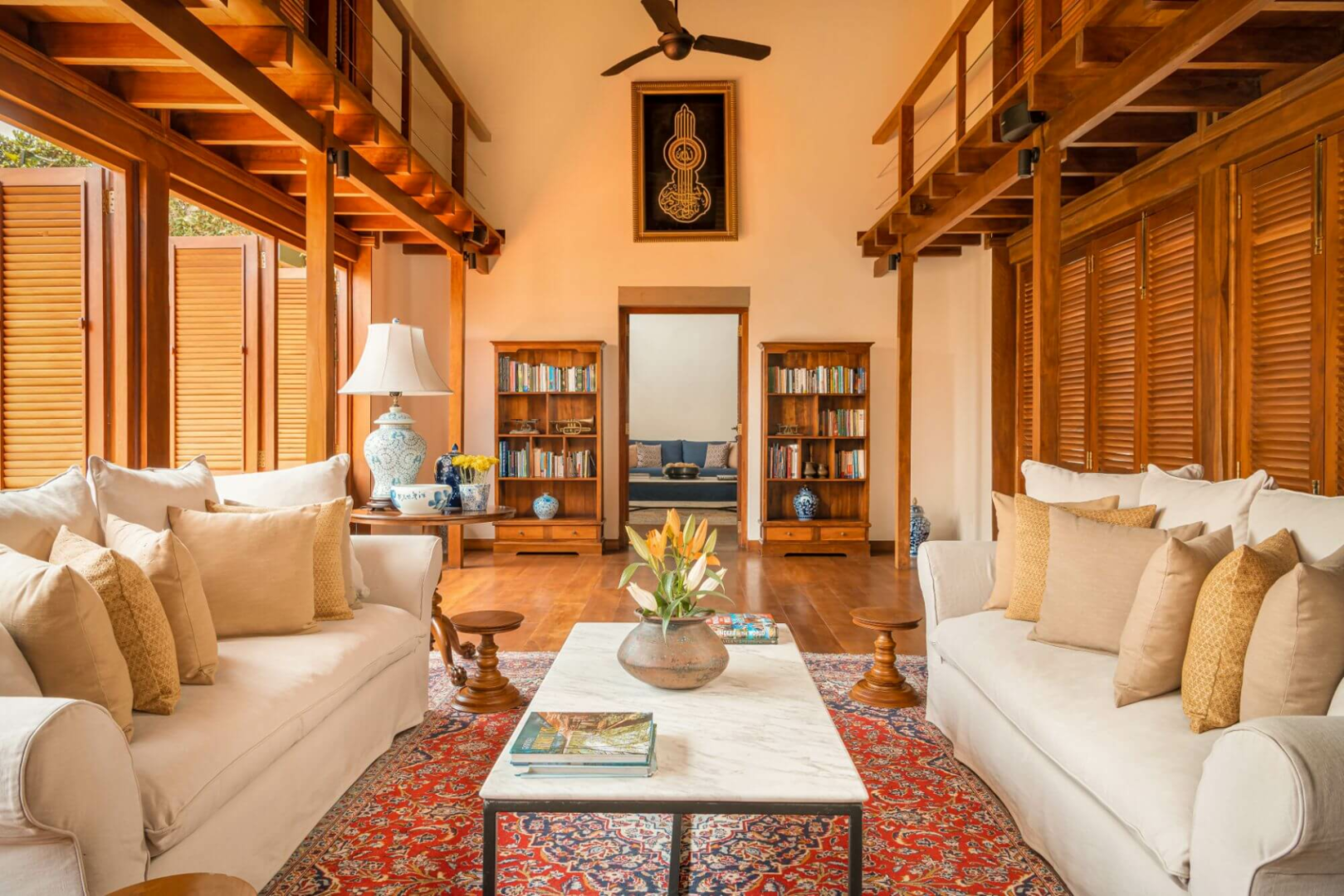 Das ganze Haus ist voll von Sitzgelegenheiten mit eleganten, sammelwürdigen Sofas, die zum Ausruhen und Ausruhen mit einem Buch einladen, und Ihr werdet nicht müde, die schönen Ceylon-Ebenholz-Antiquitäten zu bewundern, die überall verteilt sind.