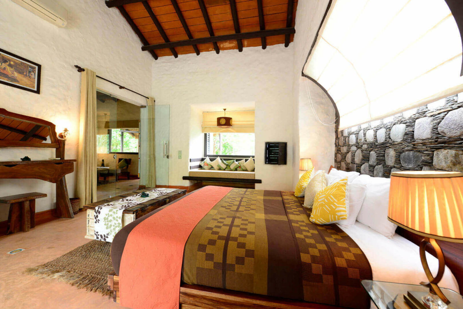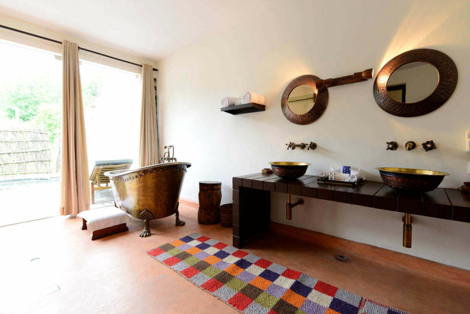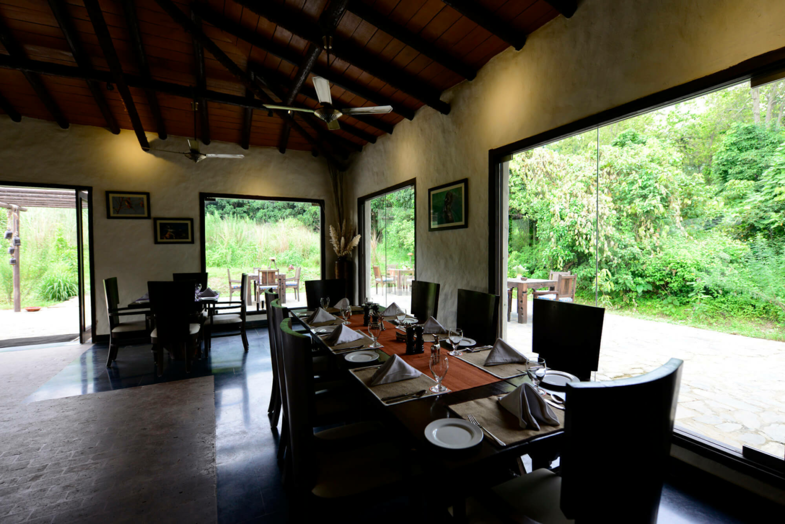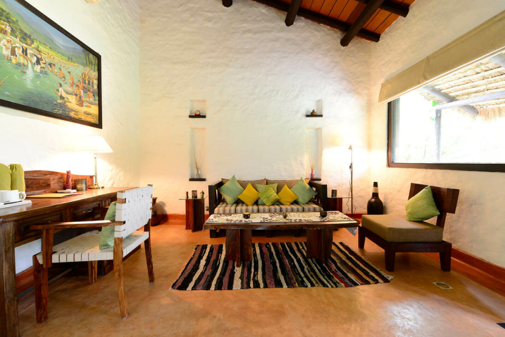 Diese entzückende kleine Patlidun Safari Lodge im Mohan-Abschnitt des Corbett-Nationalparks ist seit ihrer Fertigstellung 2015 unsere erste Wahl für Safaris der gehobenen Preisklasse in Corbett. Uns überzeugt der gelungene, dezenten Einsatz traditioneller Architektur und antiker Möbeleinrichtung der zwölf überdimensionalen Lehm-Cottages von über 500 m² Größe mit Wohn- und Schlafraum, einem sehr luxuriösen Badezimmer, einer Außendusche und privaten Patio mit Pool. Zu den gemeinsamen Einrichtungen gehören ein sehr schöner, mit vielen Ethno-Elementen dekorierter Speiseraum, eine Lounge, ein Beobachtungsdeck und eine Lagerfeuerstelle mit Sitzmöglichkeiten.