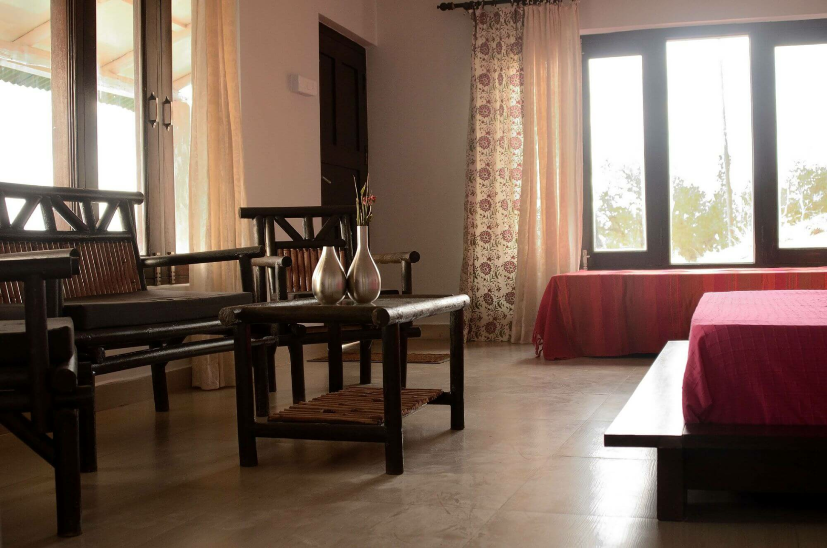 Tanhau liegt oberhalb einer Anhöhe unweit von Mohan und bietet einen grandiosen Ausblick auf die schneebedeckten Berge in der Entfernung. Die Unterbringung erfolgt in nur drei sehr liebevoll eingerichteten, komfortablen Cottages aus Stein, die sich perfekt in die Natur einfügen.