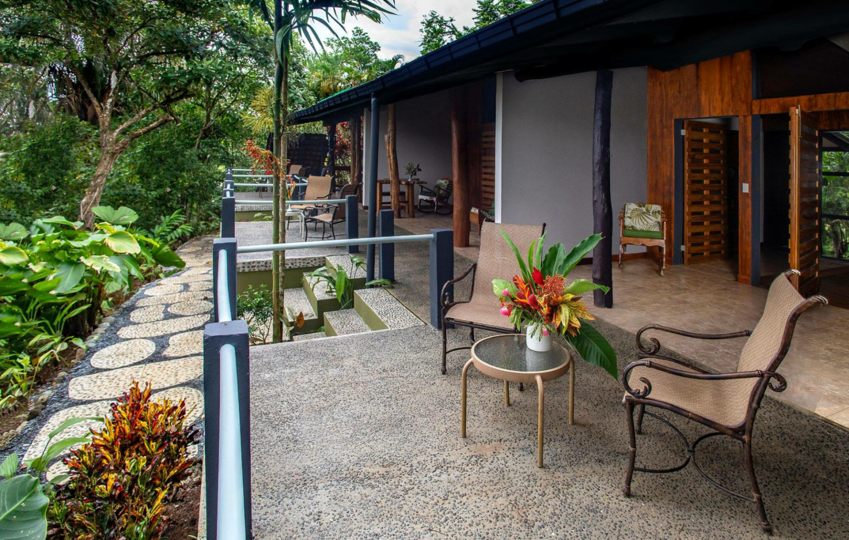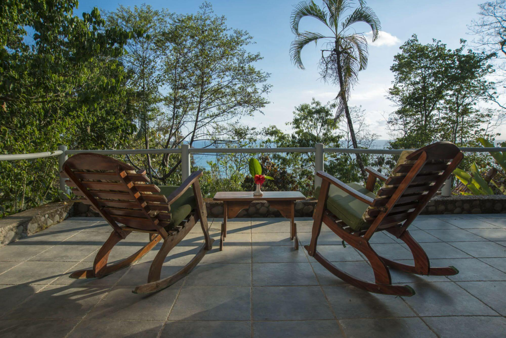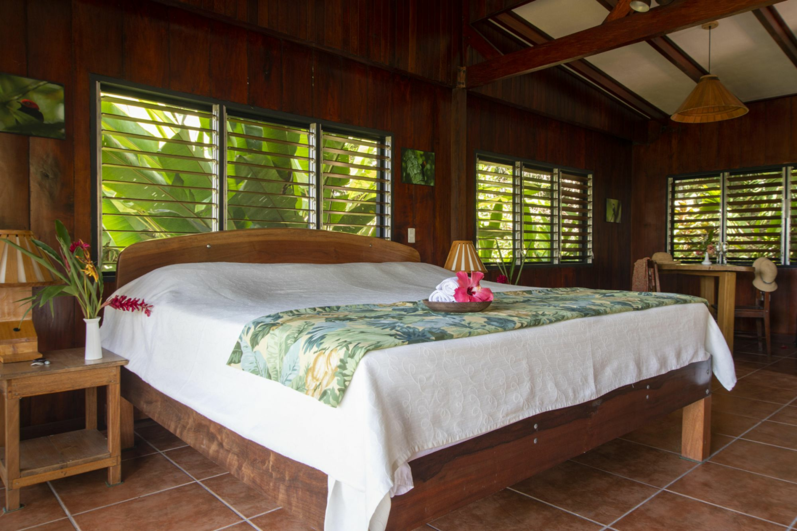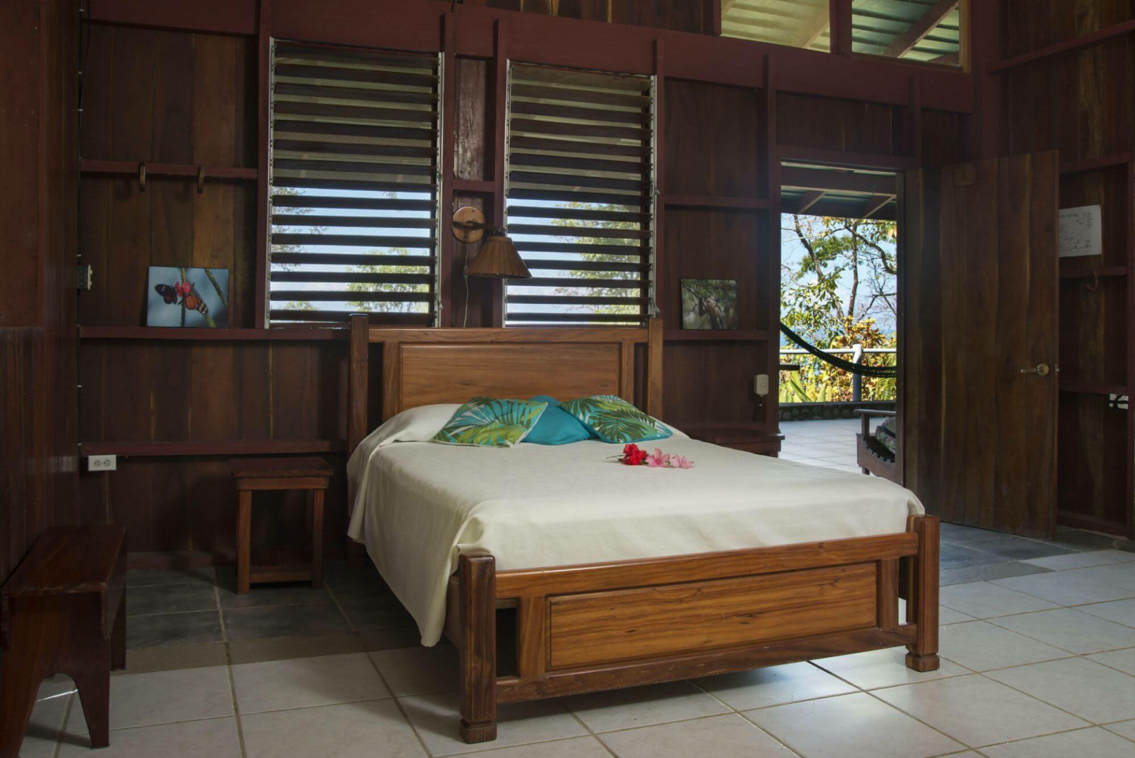 Die Zimmer sind geräumig (für eine Naturlodge), wurden erst kürzlich renoviert, haben ein eigenes, sehr modernes Bad und einen tollen Balkon, von dem aus wir Scharlacharas, Fregattvögel und viele verschiedene tropische Schmetterlinge beobachten und den Blick auf den Sonnenuntergang über dem Meer genießen konnten.