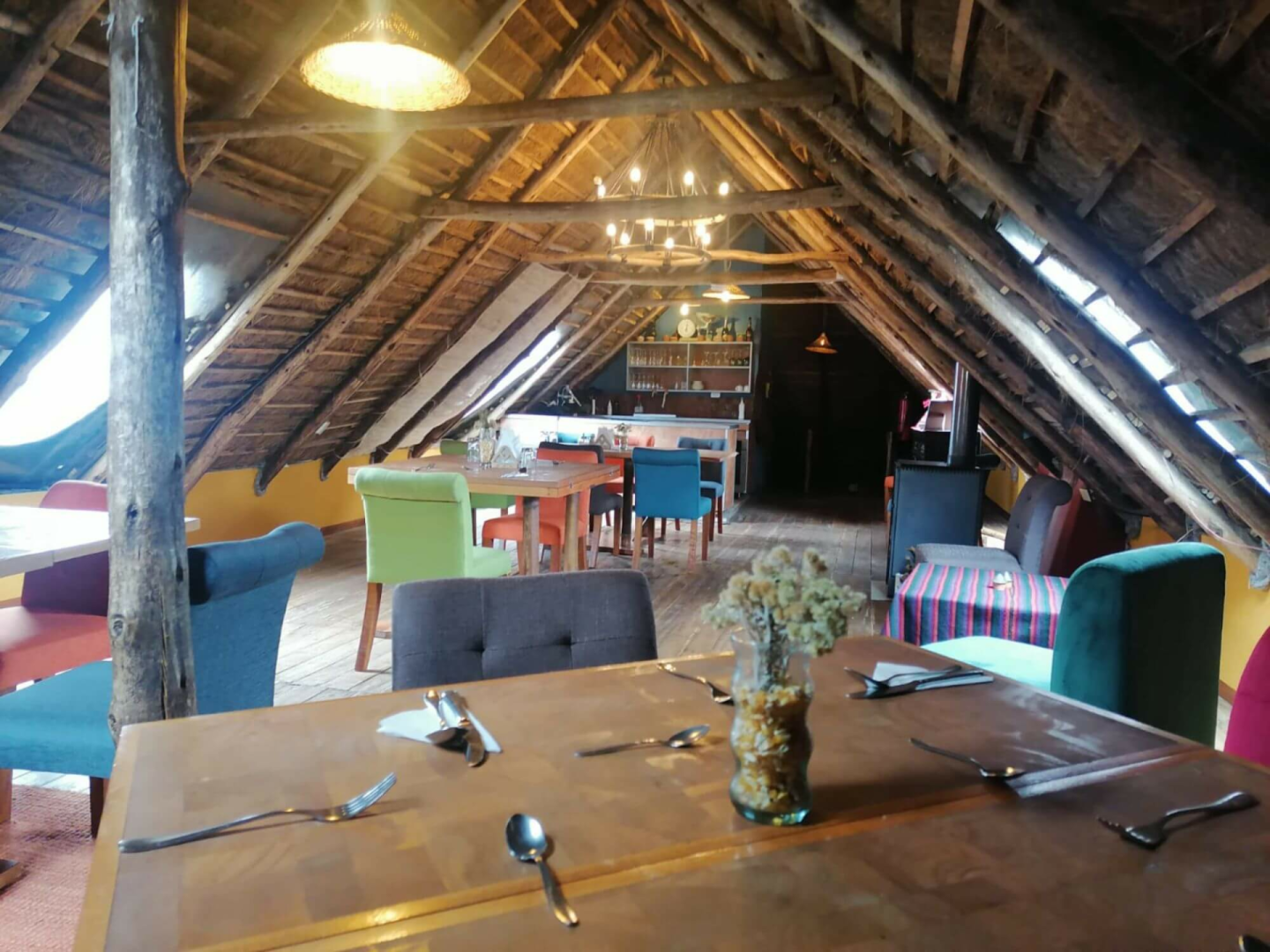 Das Anwesen ist in mehrere Gebäude unterteilt. Im Hauptgebäude befinden sich die Rezeption, die öffentlichen Toiletten, der Speisesaal, in dem die Mahlzeiten serviert werden (farbenfroh und irgendwie sehr volkstümlich) und mehrere Aufenthaltsräume, teilweise mit Kamin, die zum Entspannen und Lesen einladen.