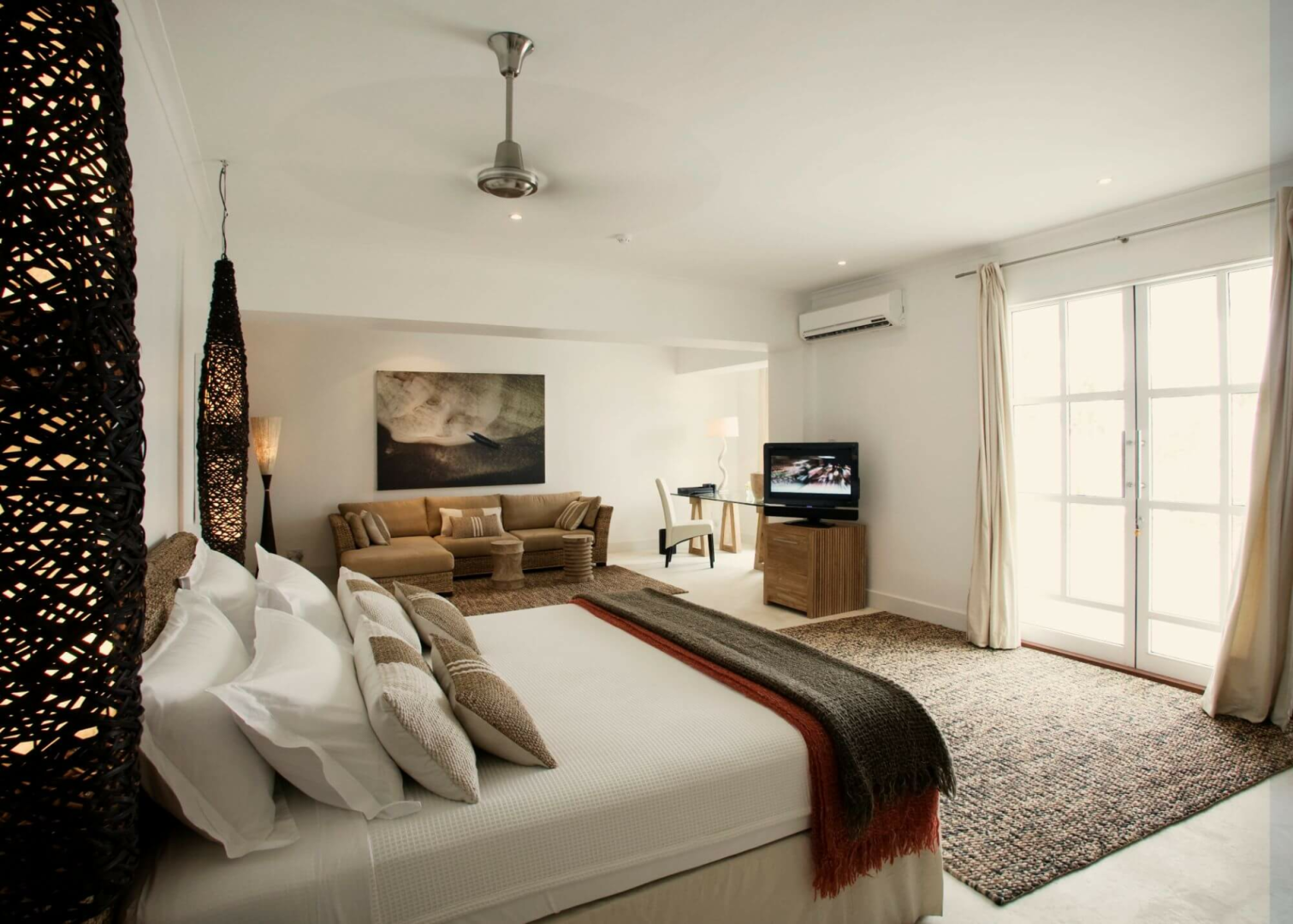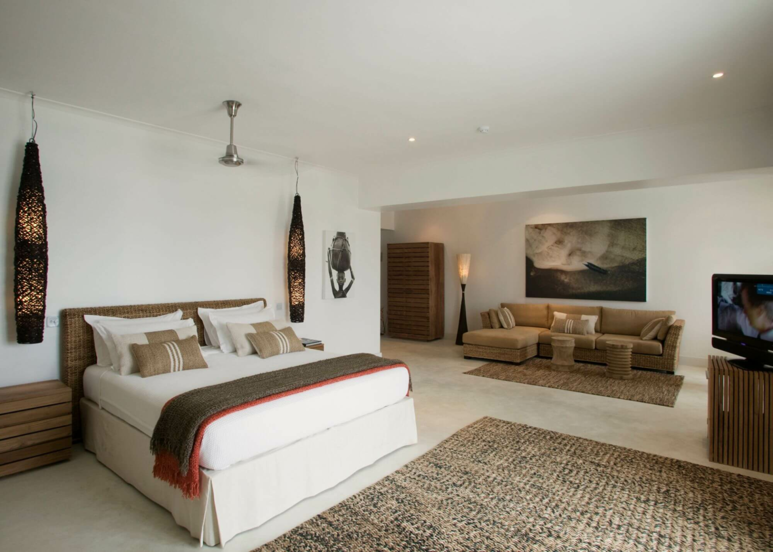 Die zwölf elegante Suites sind in einem minimalistischen Stil gestaltet –weitflächige geflochtene Ratanteppiche, stilvolle Korbsofas, Leinbilder auf den weißen Wänden, Kunsthandwerken aus Holz und schöne Ratanlampen verleihen den Räumen allerdings eine schöne Wohlfühlatmosphäre. Alle Zimmer haben einen Balkon und ein großes Badezimmer mit frei stehender Badewanne und einer stilvollen, begehbaren Dusche.