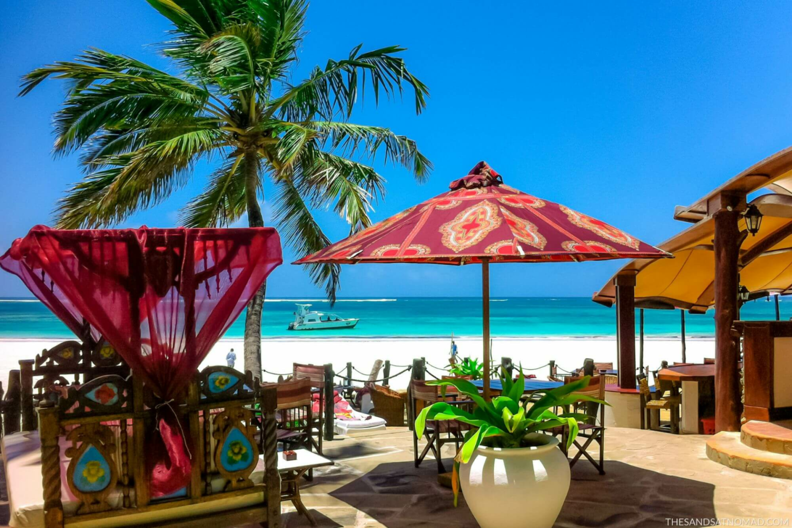 The Sands at Nomad liegt in einem ruhigen, 26 Hektar großen Küstenwald am Diani Beach. Es ist ein anständiges, lange bestehendes Hotel im mittleren Preissegment mit 37 Gästezimmern im Suaheli-Stil.