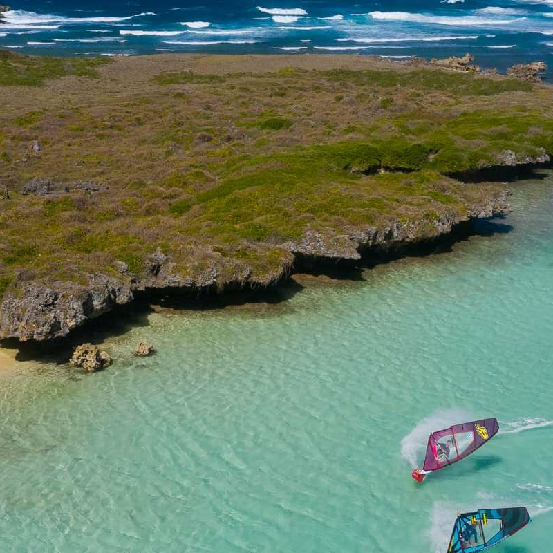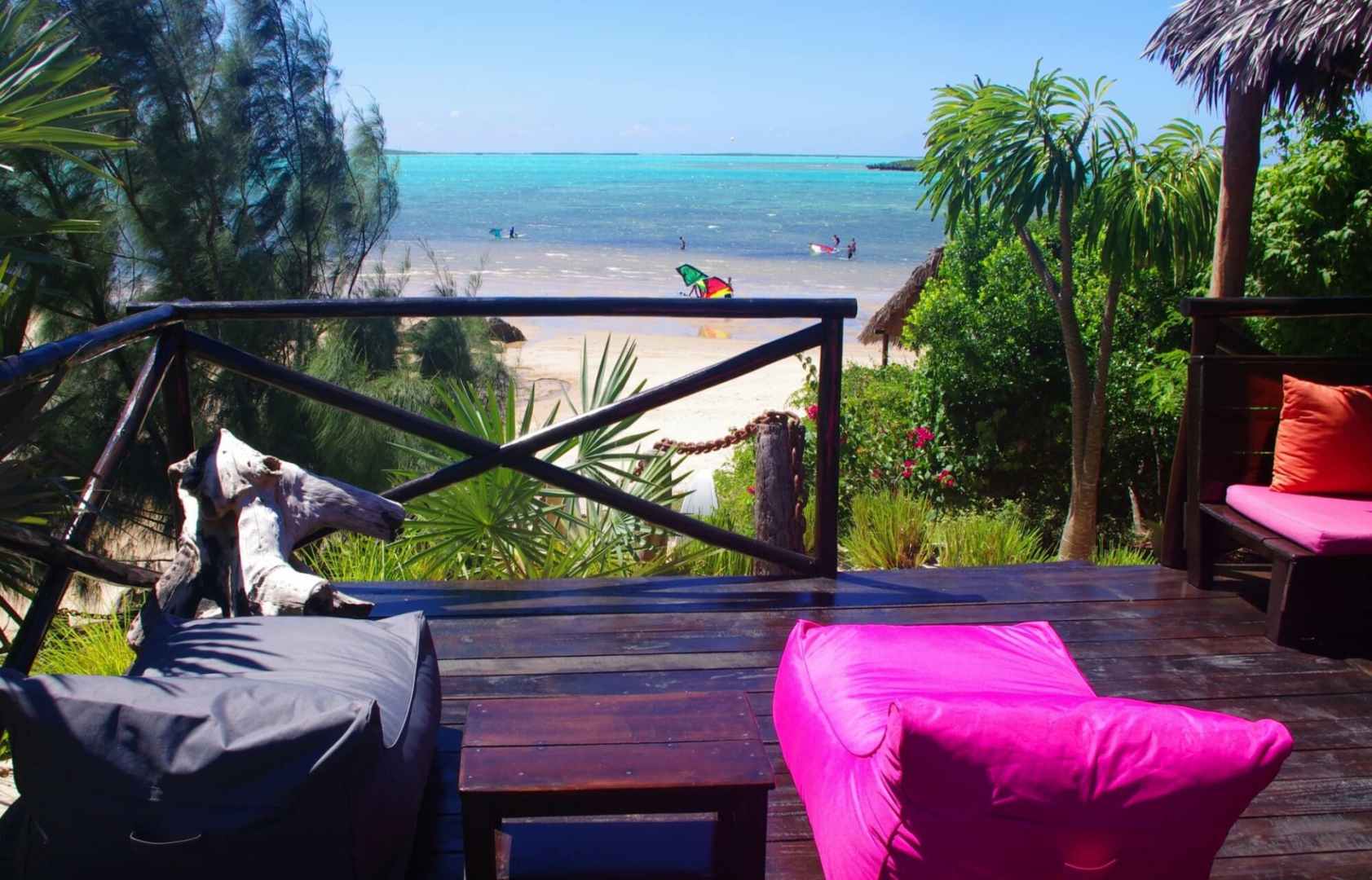 Kitesurfer feilen an ihre Fähigkeiten von früh bis abends. Man kann aber auch im fantastischen Garten spazieren und die Tiere beobachten.