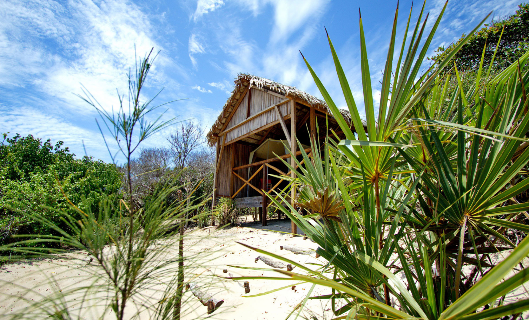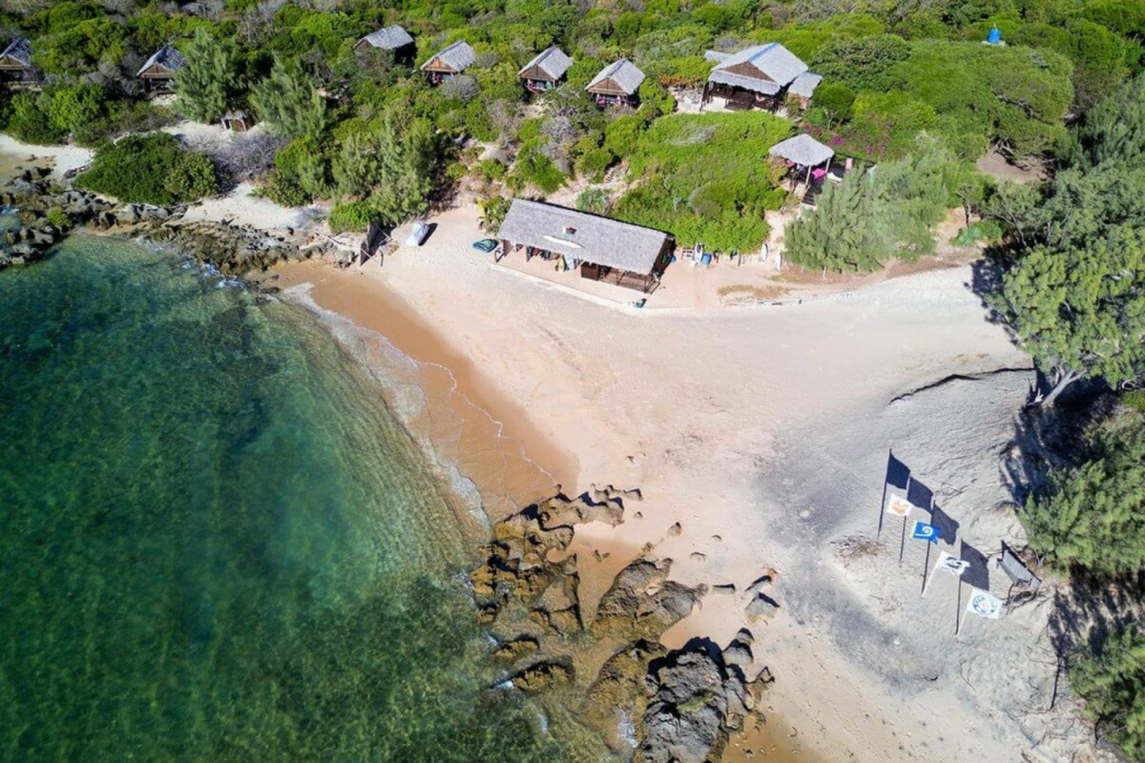 Babaomby liegt auf einer kleinen Insel in der Bucht. Der Weg zur Insel ist schon ein Abenteuer für sich. Gäste werden in sehr komfortablen Safarizelten unter Reetdach untergebracht. Die Zelte stehen auf Stelzen aus Holz, mit einem Dach aus traditionellen Blättern zum Schutz vor der Hitze. Jeder Bungalow verfügt außerdem über eine kleine Terrasse mit Blick auf die Lagune, die mit Liegestühlen ausgestattet ist.