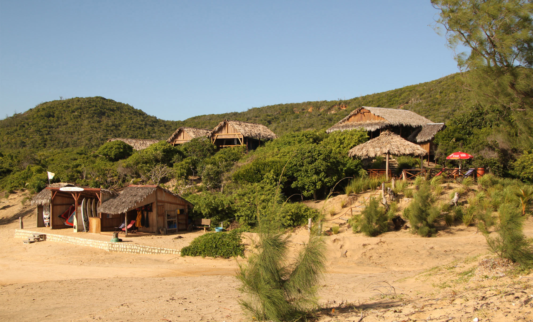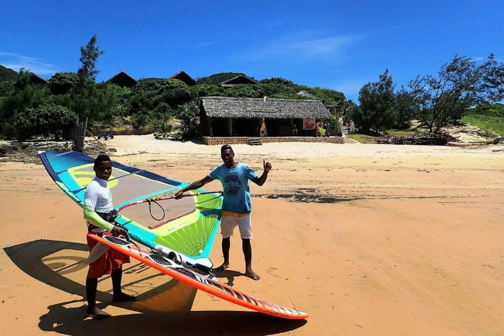 Das Restaurant befindet sich direkt oberhalb des Kite-/Windsurfzentrums, auf einer kleinen Anhöhe und genießt einen atemberaubenden Blick auf die Lagune! Mahlzeiten werden am gemeinsamen Tisch serviert.