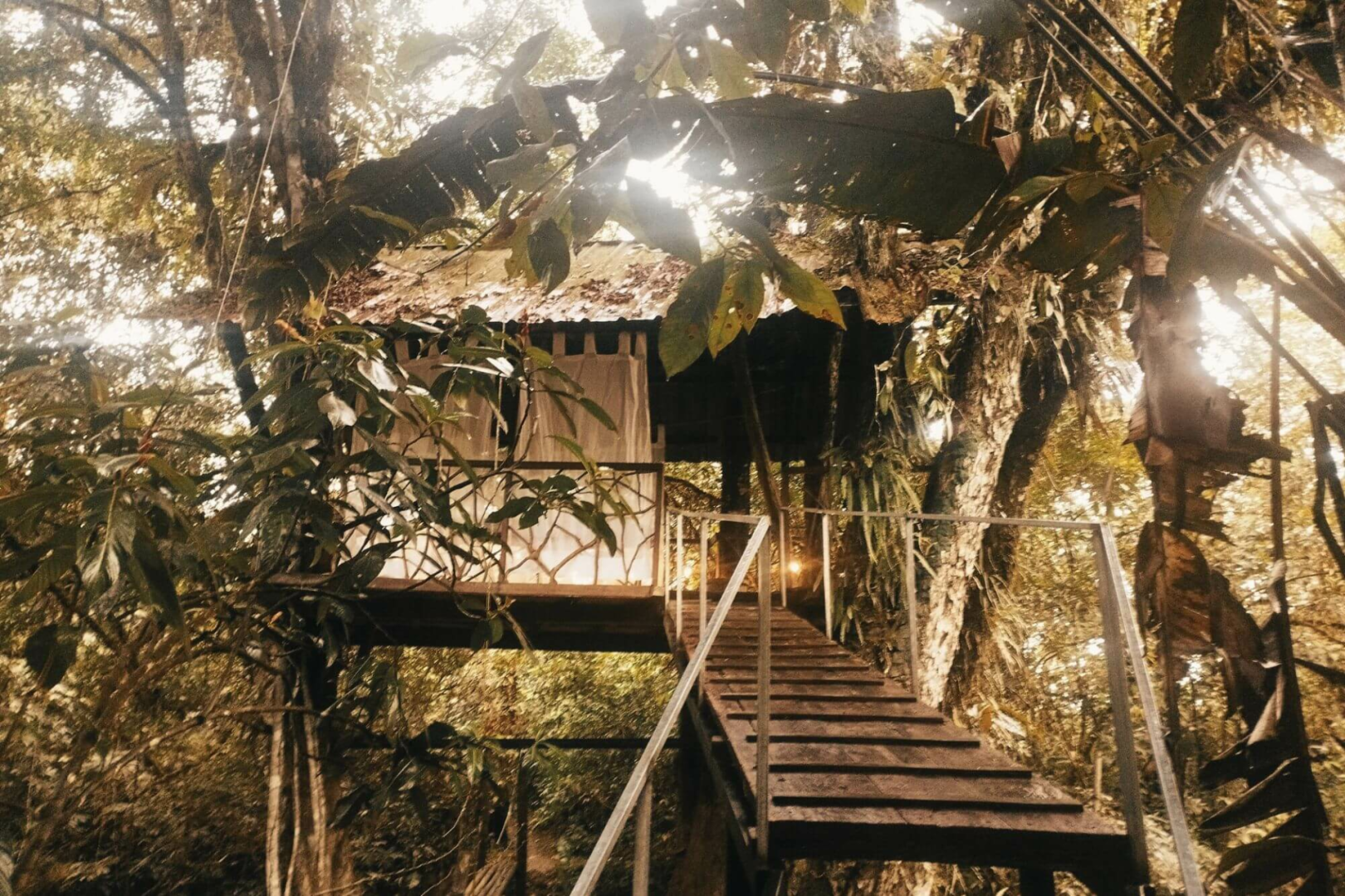 Die Bamboo Eco Lodge befindet sich im Cuyabeno-Reservat, in einem tropischen Waldgebiet mit saisonalen Lagunen und Wasserkanälen. Die Lodge ist aus lokalem Holz und Palmendächern gebaut und steht auf Stelzen.