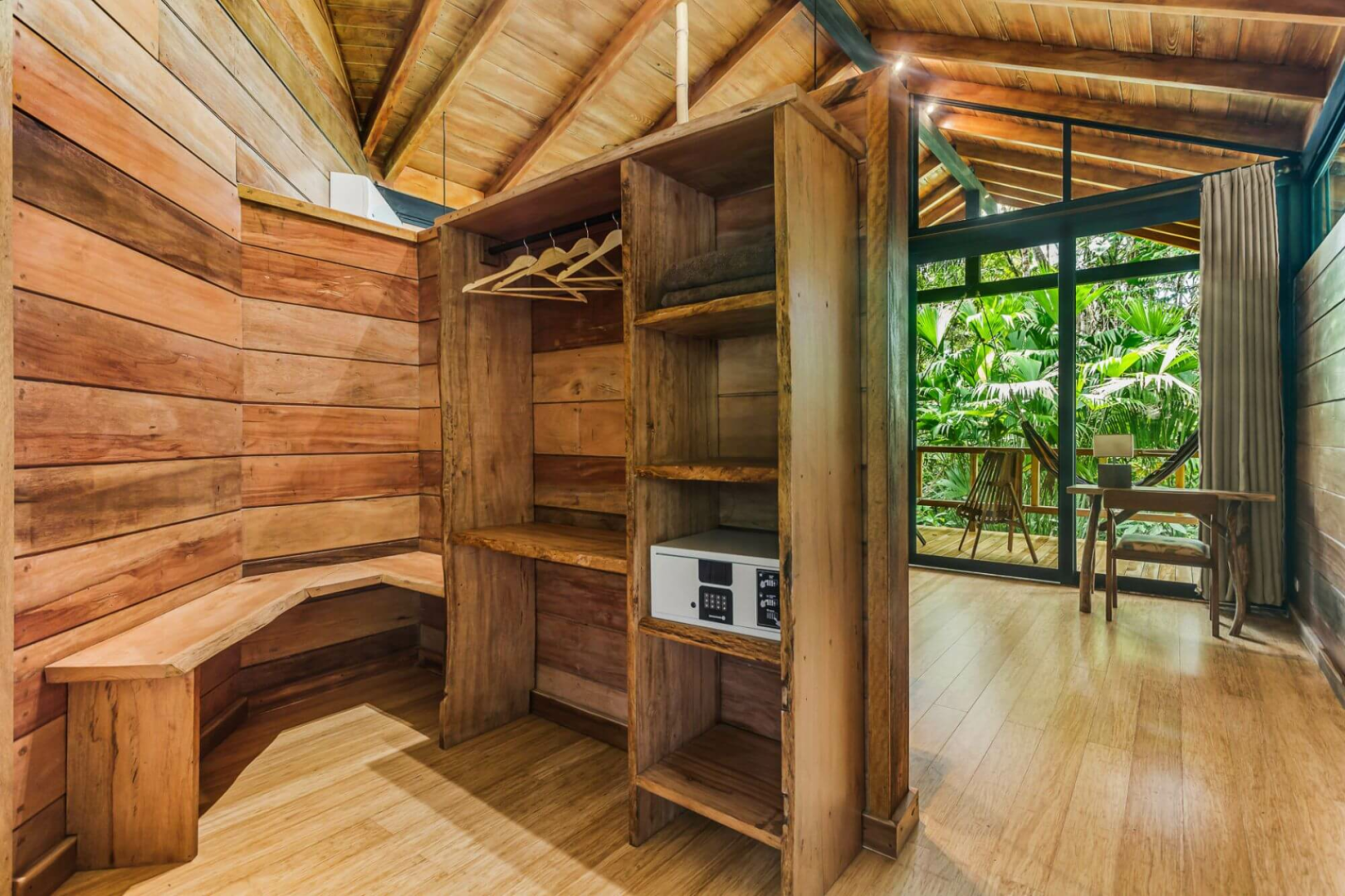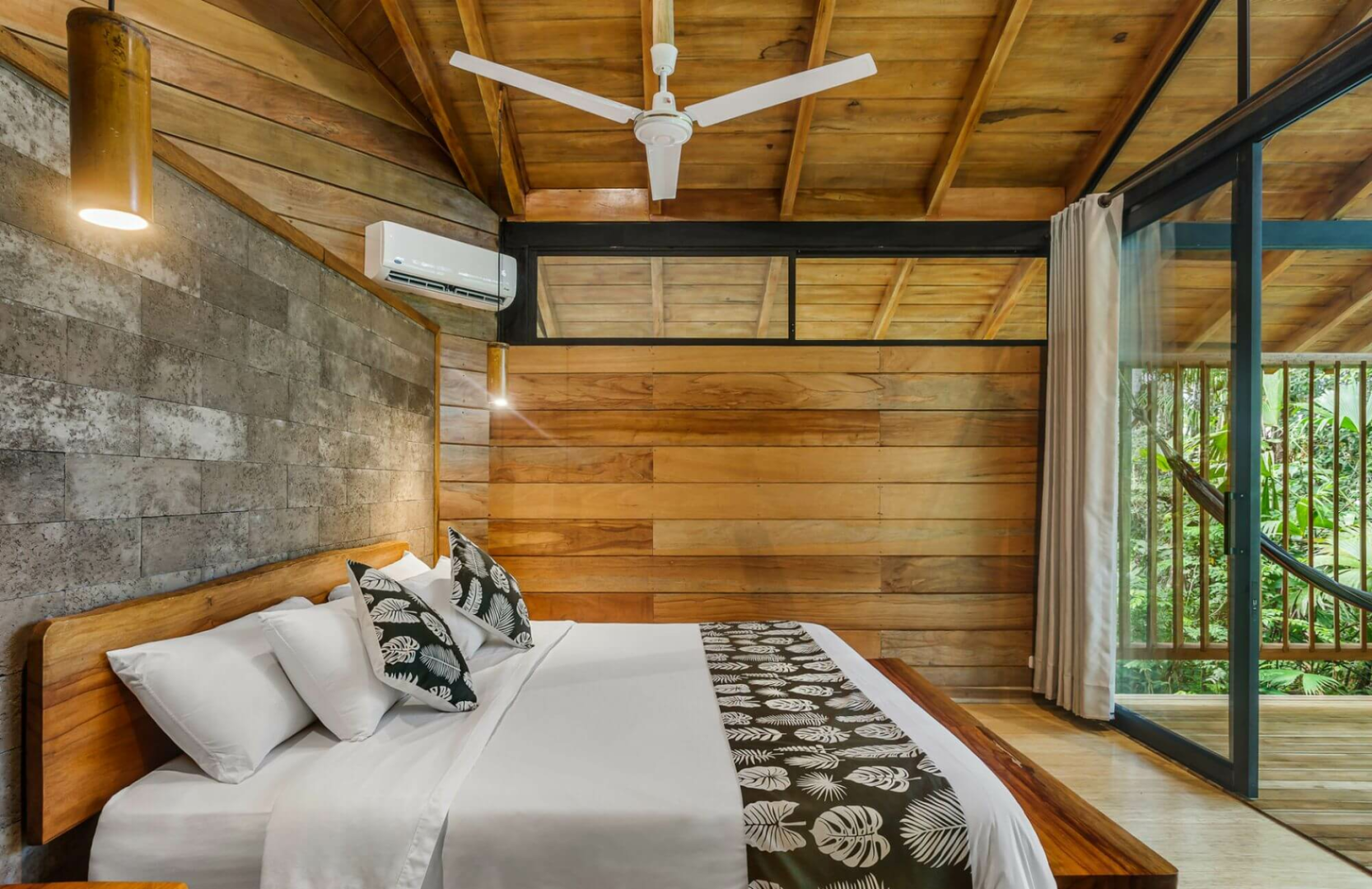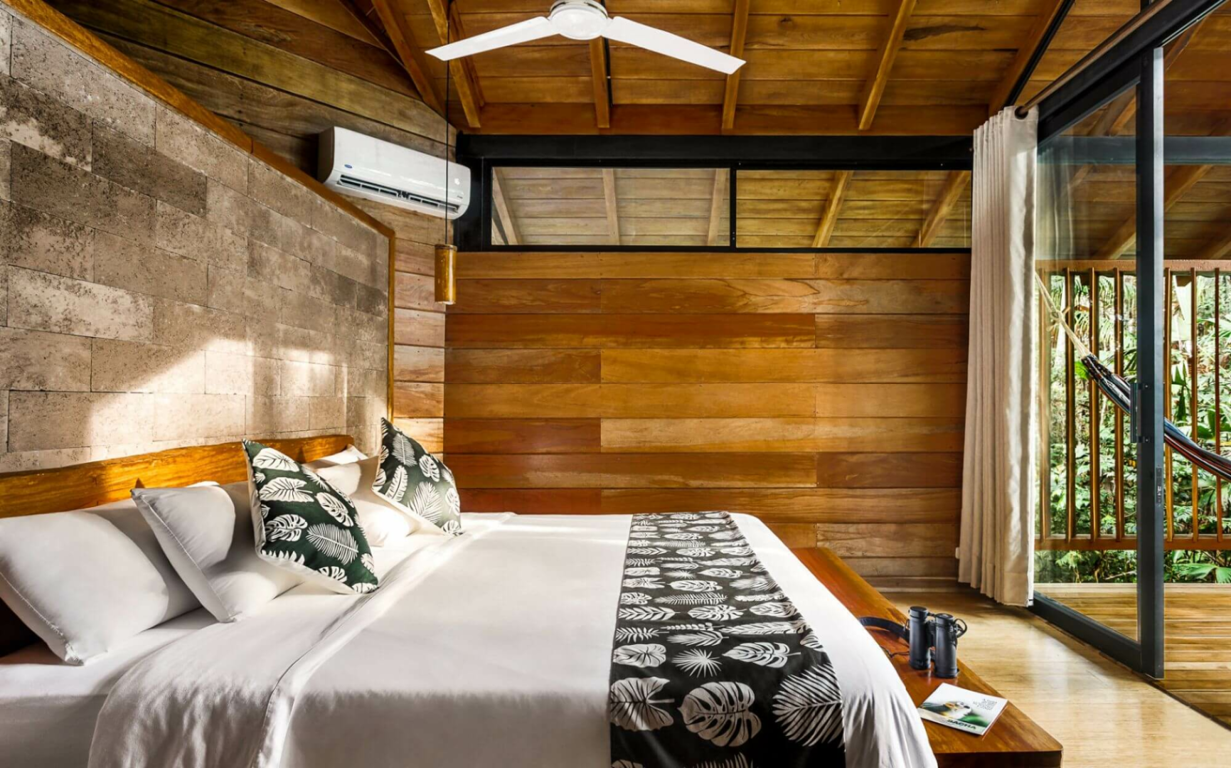 Terrasse. Für deinen Komfort sind Deckenventilatoren über den Doppelbetten angebracht und alle Cabanas sind mit einem Insektenschutz ausgestattet. Die Einrichtung ist einfach, aber die Cabanas fügen sich harmonisch in die Umgebung des Regenwaldes ein und schaffen ein Dschungel-Ambiente. Alle Bungalows verfügen über ein eigenes Bad mit Spültoilette und Warmwasserdusche. Hängematten stehen ebenfalls zur Verfügung und bieten die perfekte Möglichkeit, die natürliche Umgebung zu genießen und nach wilden Tieren Ausschau zu halten!