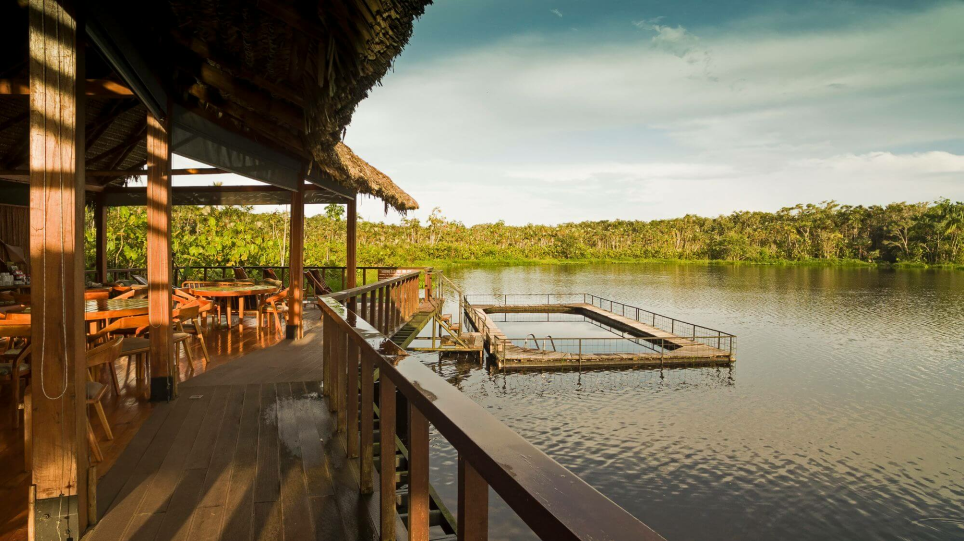 Die Lodge verfügt über eine Hauptbar und eine Lounge, in der die Gäste Getränke kaufen können und in der dreimal täglich ein Buffet serviert wird. Oberhalb dieses Bereichs befindet sich ein erhöhter Aussichtspunkt, von dem aus man einen schönen Blick auf den Pilchicocha-See hat.