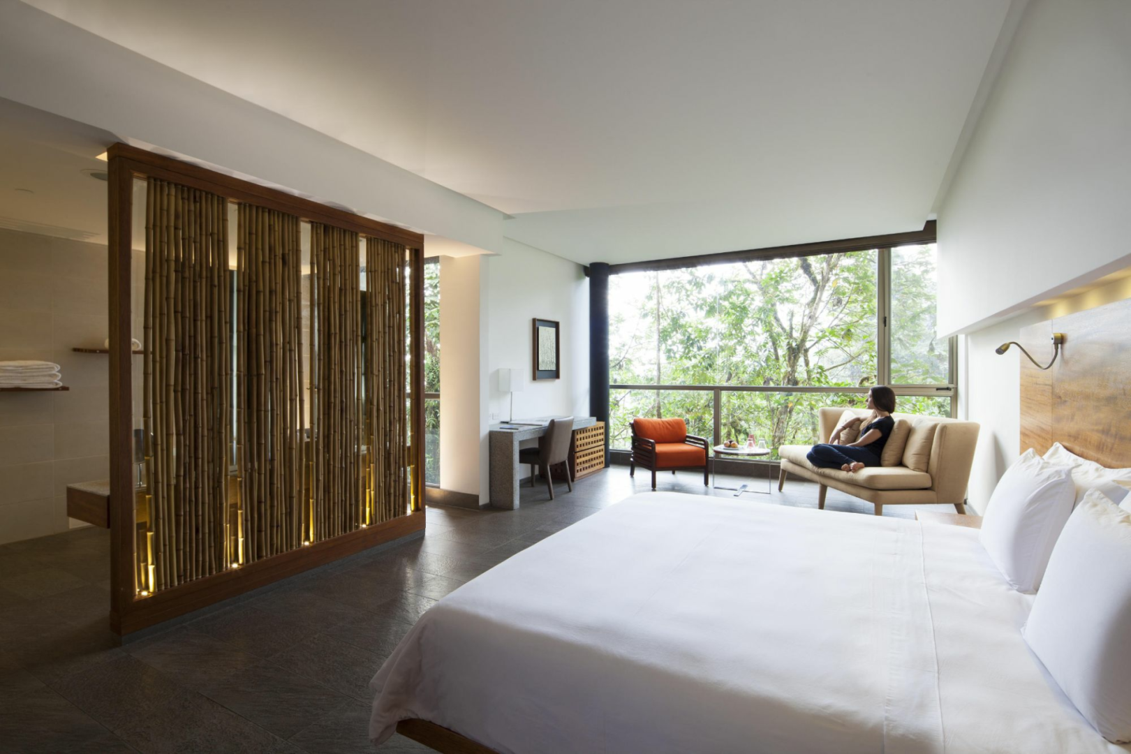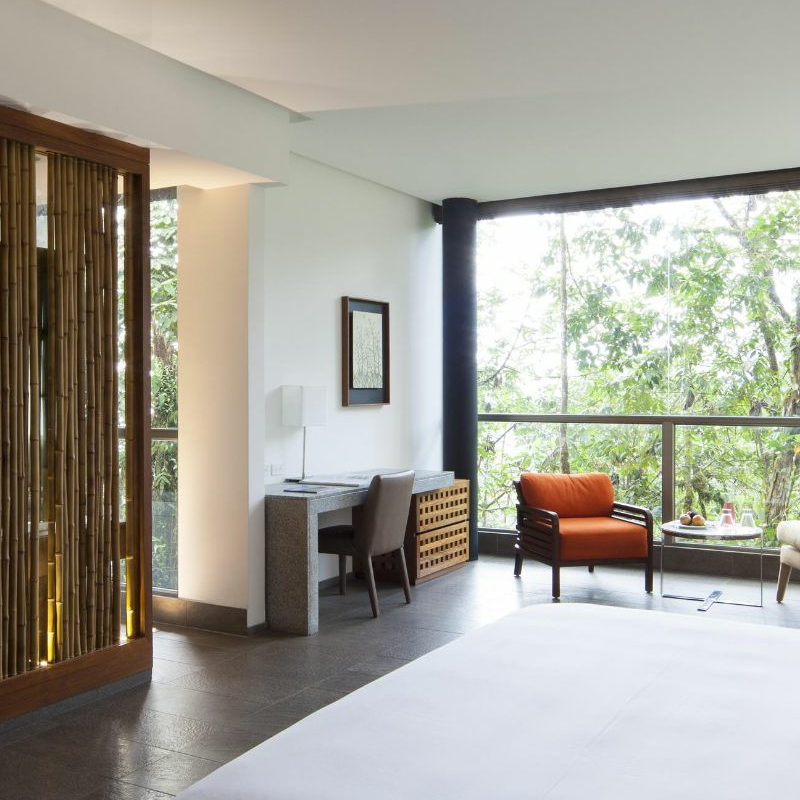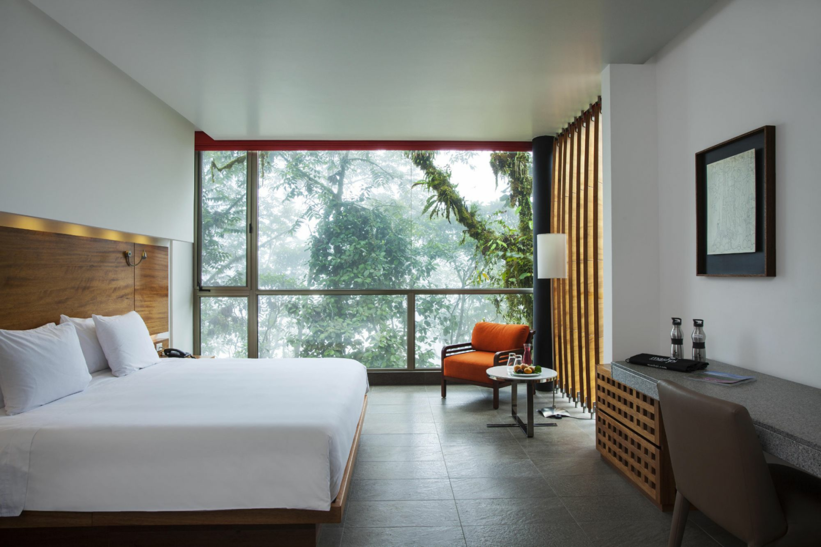 Die 21 überdimensionalen Zimmer haben unglaubliche Panoramafenster, die jeden Quadratzentimeter der atemberaubenden Aussicht optimal nutzen. Jedes Zimmer verfügt über ein eigenes Bad, eine moderne Einrichtung und bodentiefe Fenster, die dafür sorgen, dass man jeden Morgen mit einem atemberaubenden Blick auf den Wald aufwacht. Die Zimmer verfügen über alle Annehmlichkeiten außer einem Fernseher, die Betten sind super groß und bequem und es gibt einen kostenlosen Wäschetrocknungsservice, was bei der Luftfeuchtigkeit unerlässlich ist.