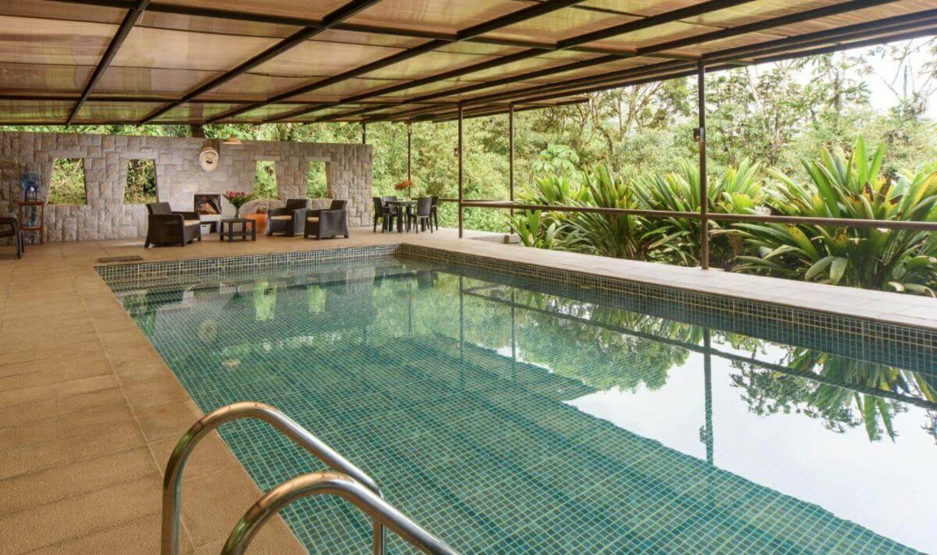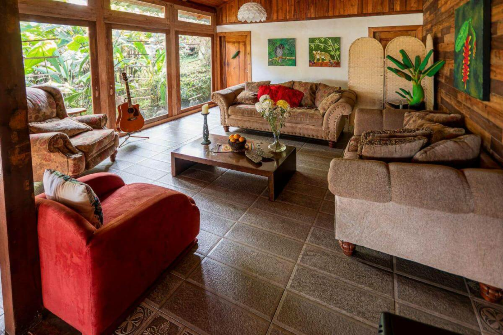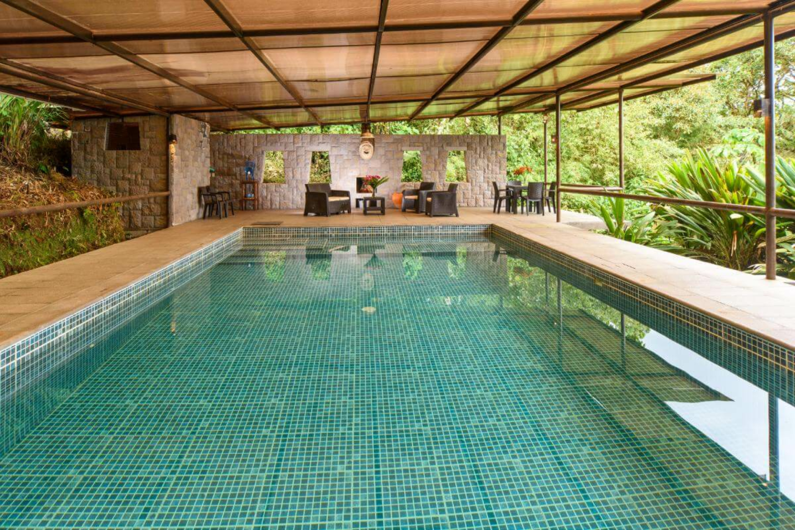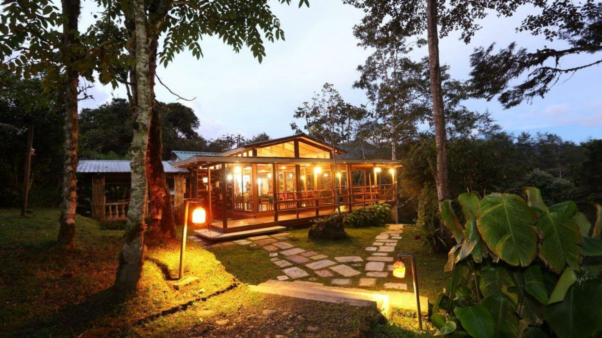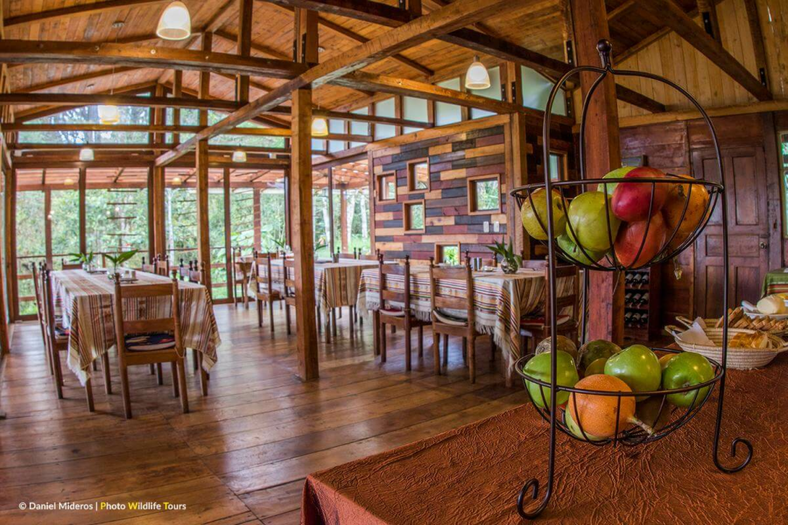 Die Lodge besteht aus mehreren Holzgebäuden, die durch Wege und Stege miteinander verbunden sind. Zu den Gemeinschaftsbereichen gehören ein geräumiger Speisesaal mit Blick auf das Tal und eine Plattform zur Vogelbeobachtung.