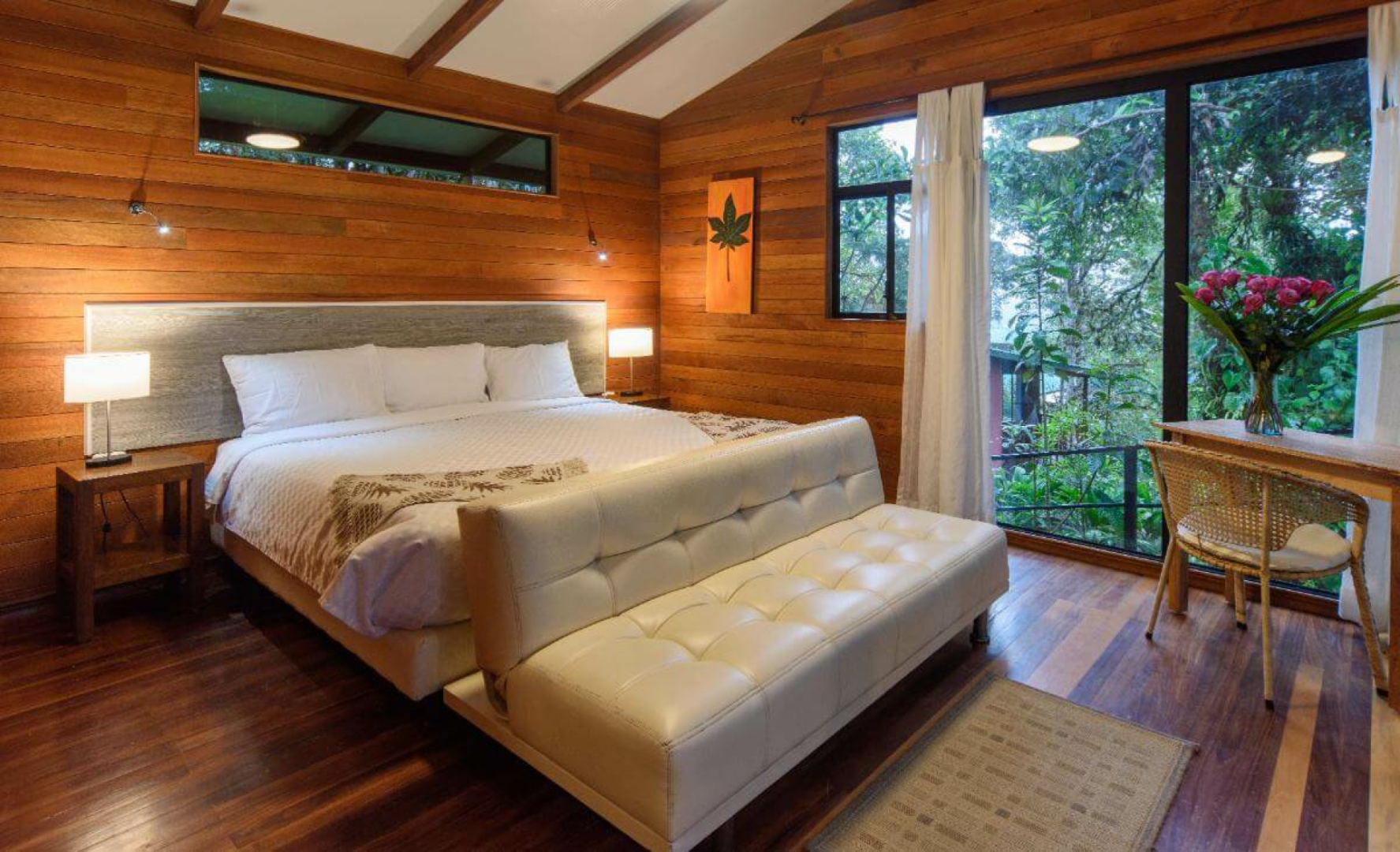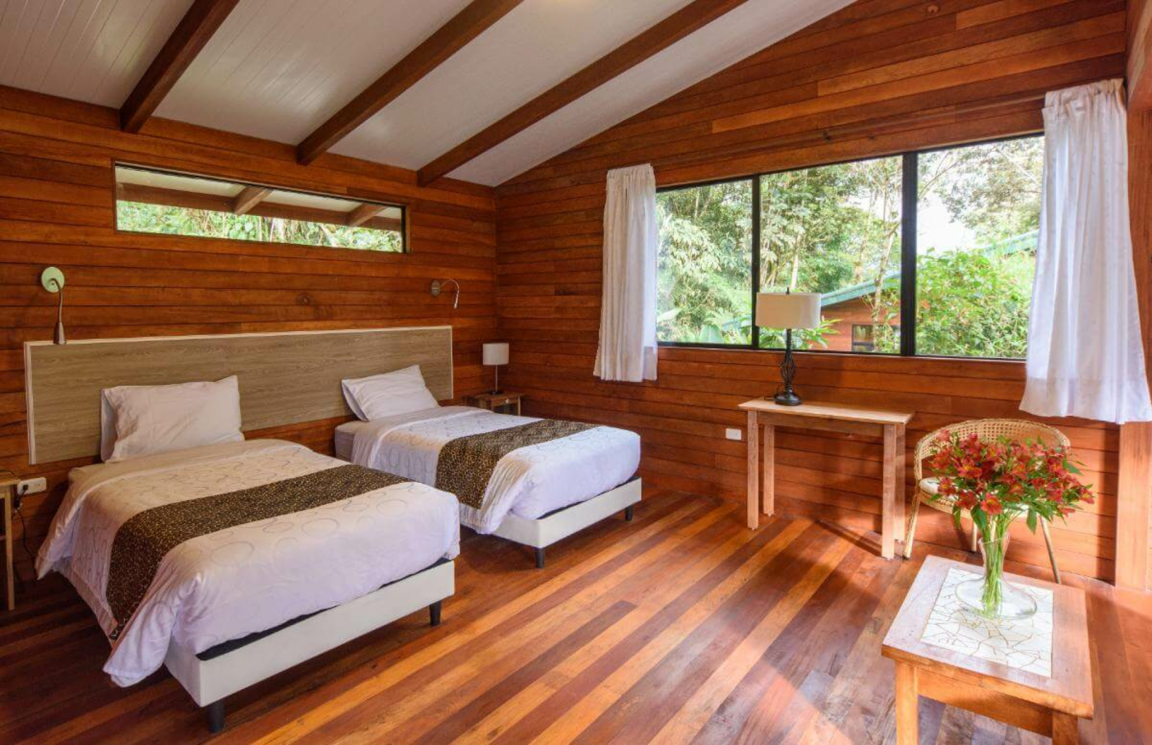 Die Zimmer befinden sich in separaten oder angebauten Hütten, die vollständig aus Holz gebaut sind. Jedes Zimmer verfügt über ein eigenes Bad. Die Gestaltung der Zimmer sorgt dafür, dass die Temperatur angenehm kühl bleibt, ohne dass eine Klimaanlage erforderlich ist.
