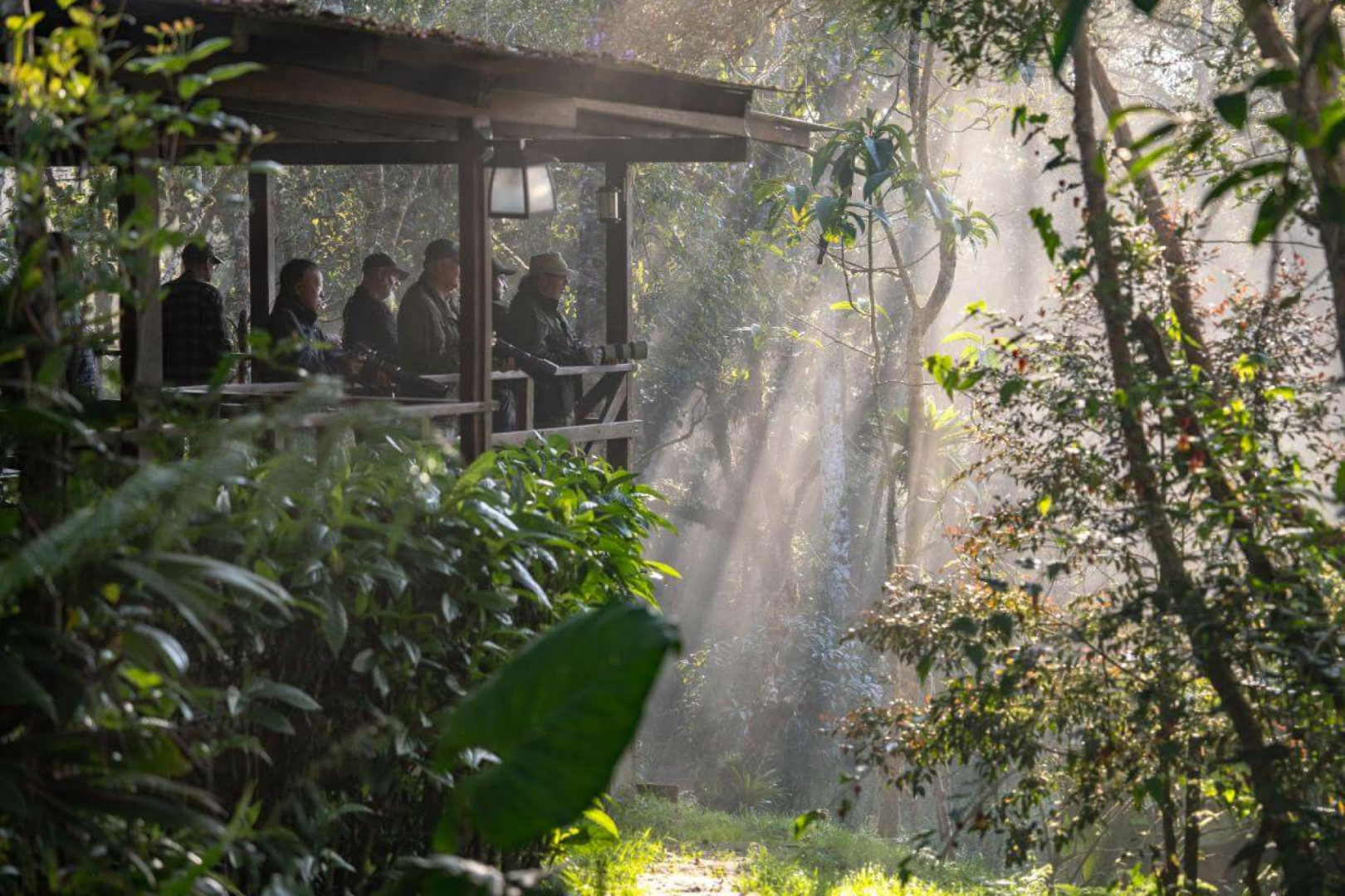 Von erhöhten Plattformen aus lassen sich Bergraubvögel wie der Zweifarbige Falke oder der Weißbürzel-Falke beobachten, die sich zwischen Lichtungen und bewaldeten Hängen bewegen.