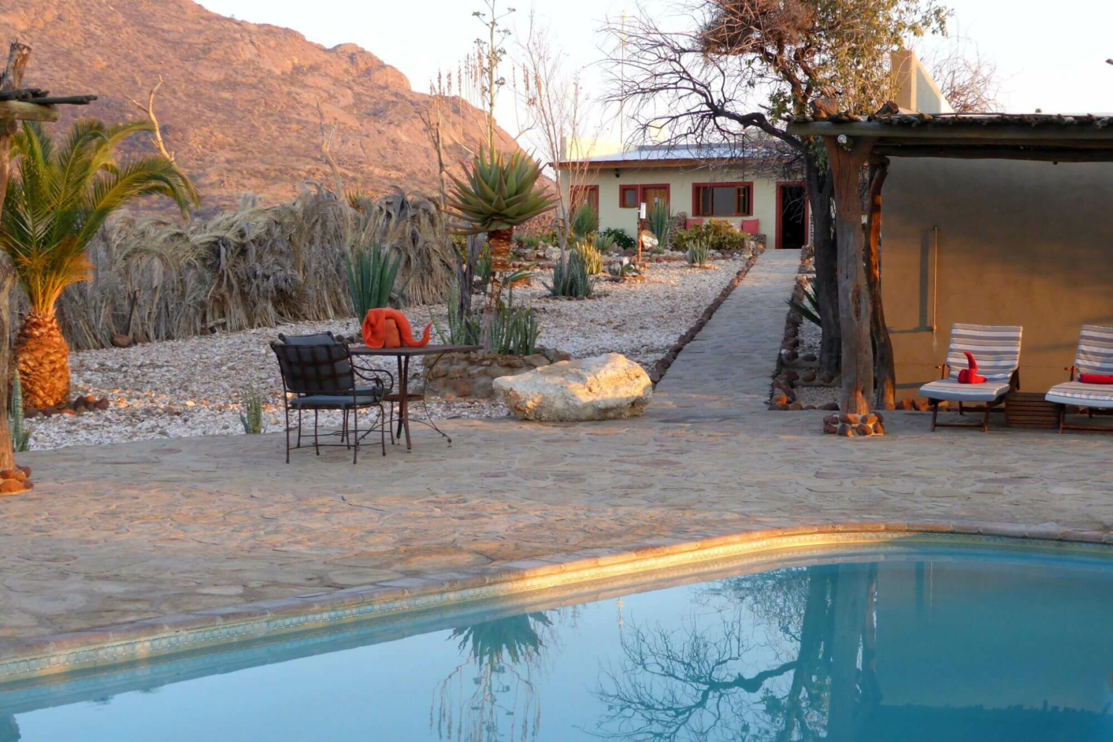 Nur 25 km nördlich der kleinen Stadt Usakos, am Fuße des Erongo-Gebirges im Südwesten des Erongo-Gebietes im Westen Namibias ist die Hohenstein Lodge ist ein einfacher, altmodischer Ort, gut um Tagesausflüge zur Spitzkoppe und zum Brandberggebirg zu unternehmen.